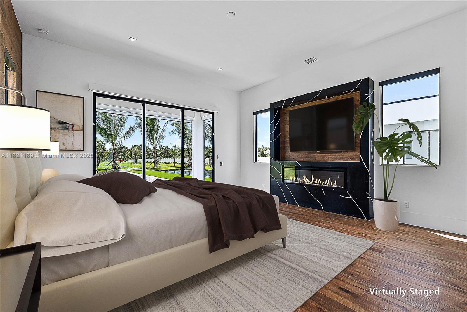Built in 2022 on over 4 acres, this exceptional property is a dream for car collectors and boaters alike, offering 8 garages (with room for lifts) and direct Intracoastal access. Sleek lines and floor-to-ceiling windows showcase the estate's expansive grounds and resort-style pool. The main house features, eye catching design, a media room/theater, office/exercise room, and other amenities making it perfect for hosting or working from home. The detached guest house offers a full bath, kitchen, and laundry. The vacant lot is potentially available for purchase upon inquiry. The luxurious owner's retreat includes wood floors, a cozy fireplace, a marble bath with dual sinks and water closets, and a walk-in boutique-style closet. The state-of-the-art kitchen is equipped with dual wall ovens, a