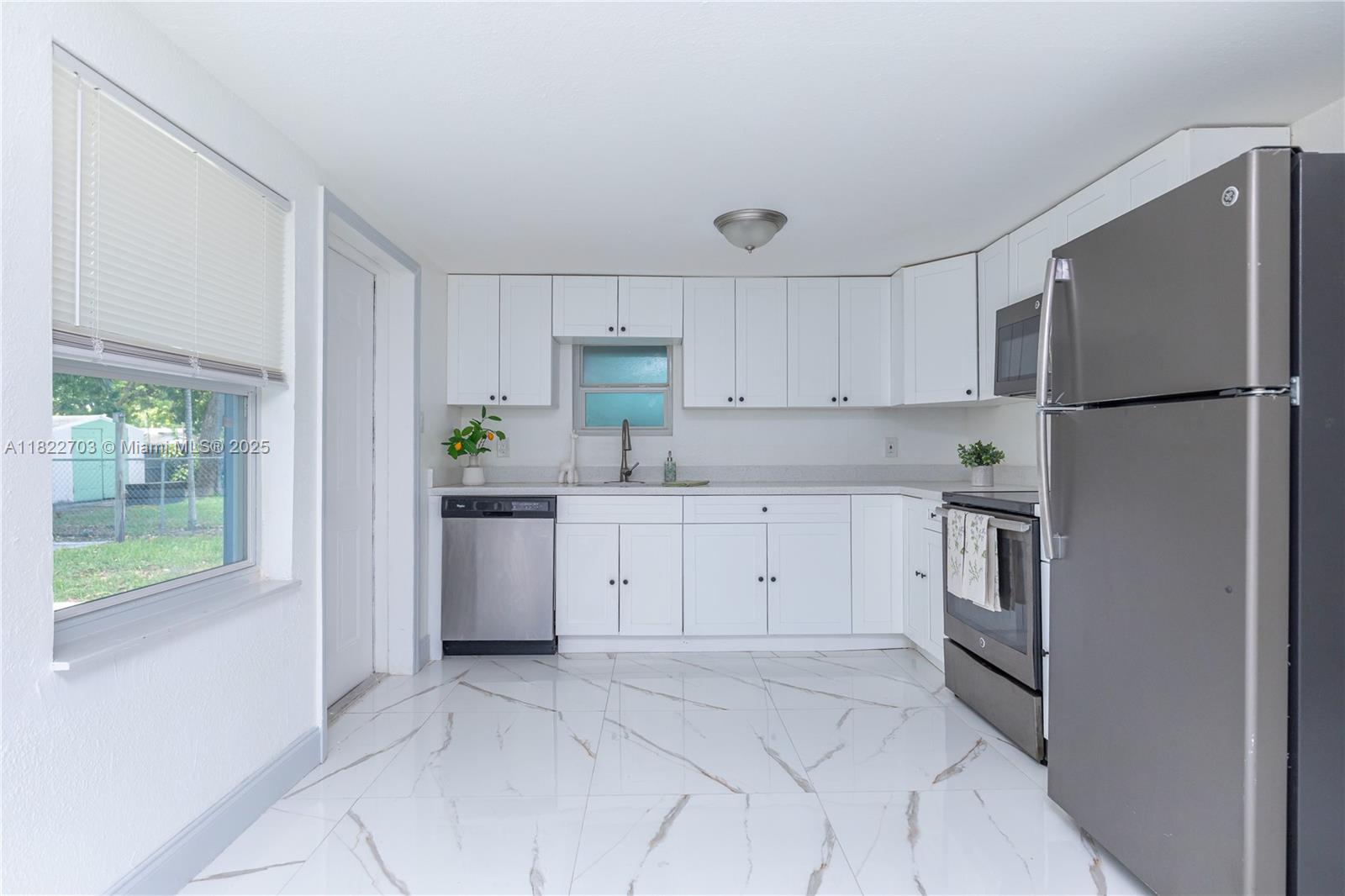 Fully renovated 2bed/2baths single family home with 1200 plus Sqft of cozy living space, spacious dining space and kitchen with stainless steel appliances, central AC installed in 2023, beautiful windows overlooking large backyard and covered patio ready for family barbecue, and outdoor breeze, plenty fruit trees, long driveway for up to 4 vehicles, boat or RV, great neighborhood & location close to shops and minutes from the highway, stadium, Aventura Mall, Gulftstream Park Casino. Request your showing today,