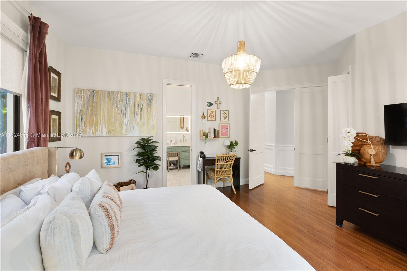 This is your chance to own and live in a Coral Gables legacy home. Nestled on almost half an acre with majestic mature oak trees, this fully renovated home features high ceilings and hardwood floors throughout. The kitchen offers high-end stainless steel appliances, a 6-burner gas stove, and natural stone tops and backsplash. The 4-bedroom/3-bath + den main house is complemented by a 1-bedroom/1-bath in-law quarters with private entrance and walkway access to parking. The primary bedroom opens to a second private patio and garden. Enjoy a heated Diamond Brite pool, hot tub, covered terrace, new AstroTurf, and Sonos outdoor speakers. All plumbing, electrical, roof, impact windows, and doors are new. Two-car garage and plenty of parking. Don’t miss this rare opportunity!