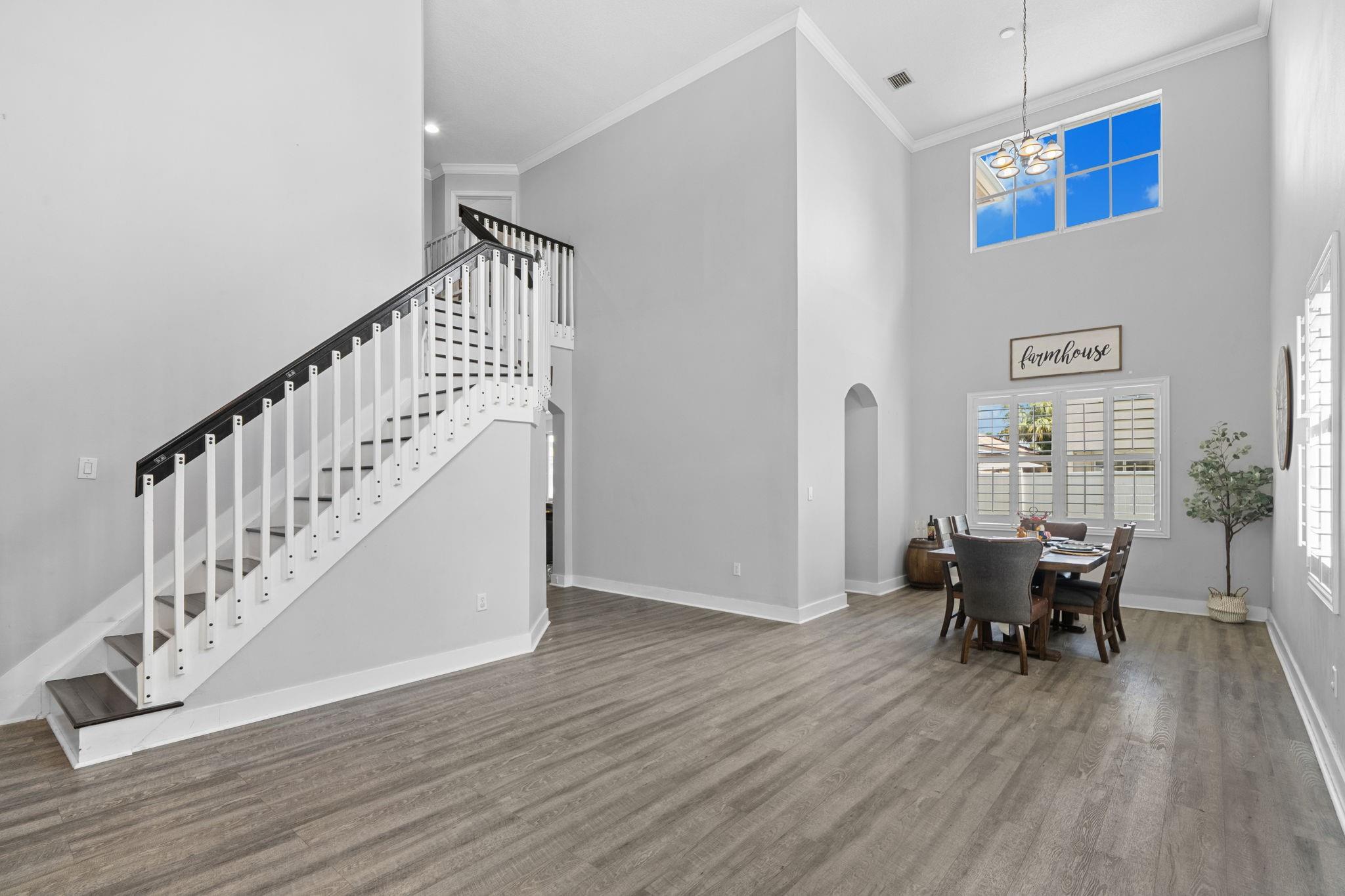 Beautifully updated 4-bed, 3-bath two-story home on one of the largest corner lots in Monarch Lakes. Features waterproof flooring, spacious family and dining areas, large kitchen with granite countertops, breakfast bar, stainless steel appliances, and eat-in nook. First-floor bedroom and full bath ideal for guests. Upstairs includes a primary suite with marble bath, custom closet, plus 2 more bedrooms and full bath. Newer AC (4 years), gutters (1.5 years), a deep-cleaned interior, and fully fenced yard. The property also has a laundry room, newer washer and dryer, and a gym on the main floor (can convert back to a garage if requested). Gated resort-style community with 24/7 security, pool, clubhouse, tennis courts, trails and parks. Prime location near I-75, schools, shopping, and dining.