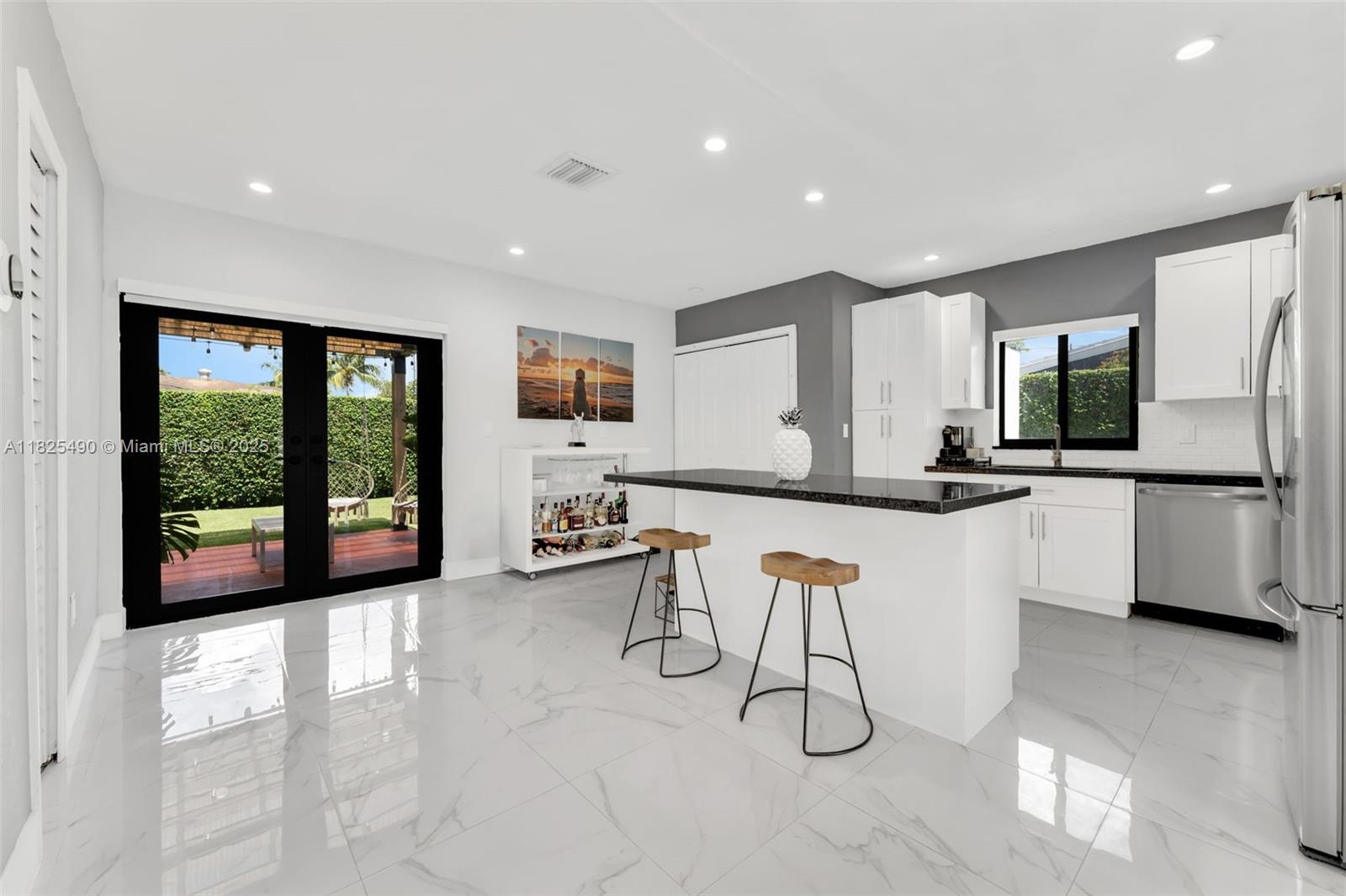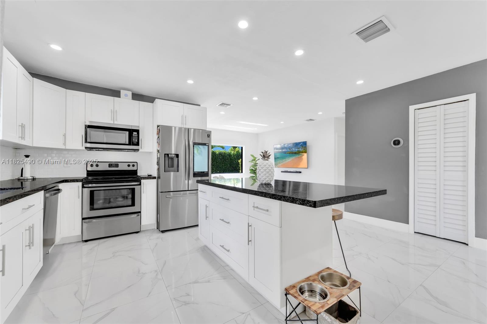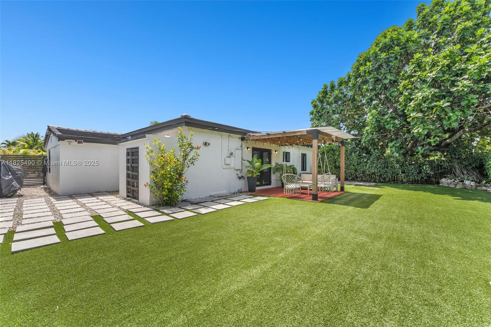 This is the home you've been waiting for, not only is it move in ready, but it's loaded w/ updates and modern features! Some upgrades include: 2024 Concrete Roof, 2022 A/C, 2021 Impact windows, 2024 EV charger, smart doorlock + thermostat. The house is nicely remodeled, w/ a stunning modern driveway + mailbox, updated baths, flooring, closets, modern kitchen w/ SS appliances including a smart Refrigerator w/ screen, and a storage room. The backyard is one of the best features of the house - fully fenced and secluded with privacy plants, upgraded with synthetic turf and a beautiful pergola w/ hanging lights. The location is unbeatable: easy access to I-95, 5 min to Brightline station, 10 min to Aventura mall, 15 min to the beach, very near Greynolds park, supermarkets, restaurants and more!