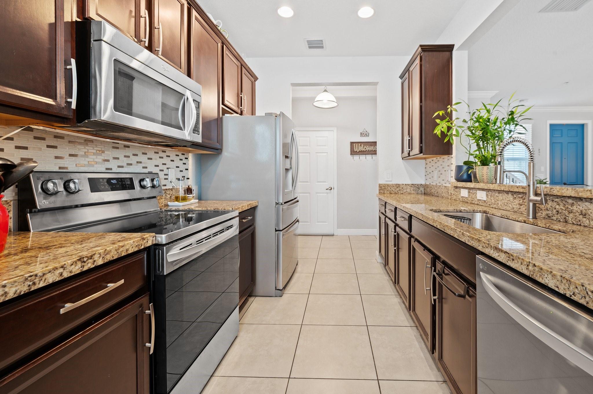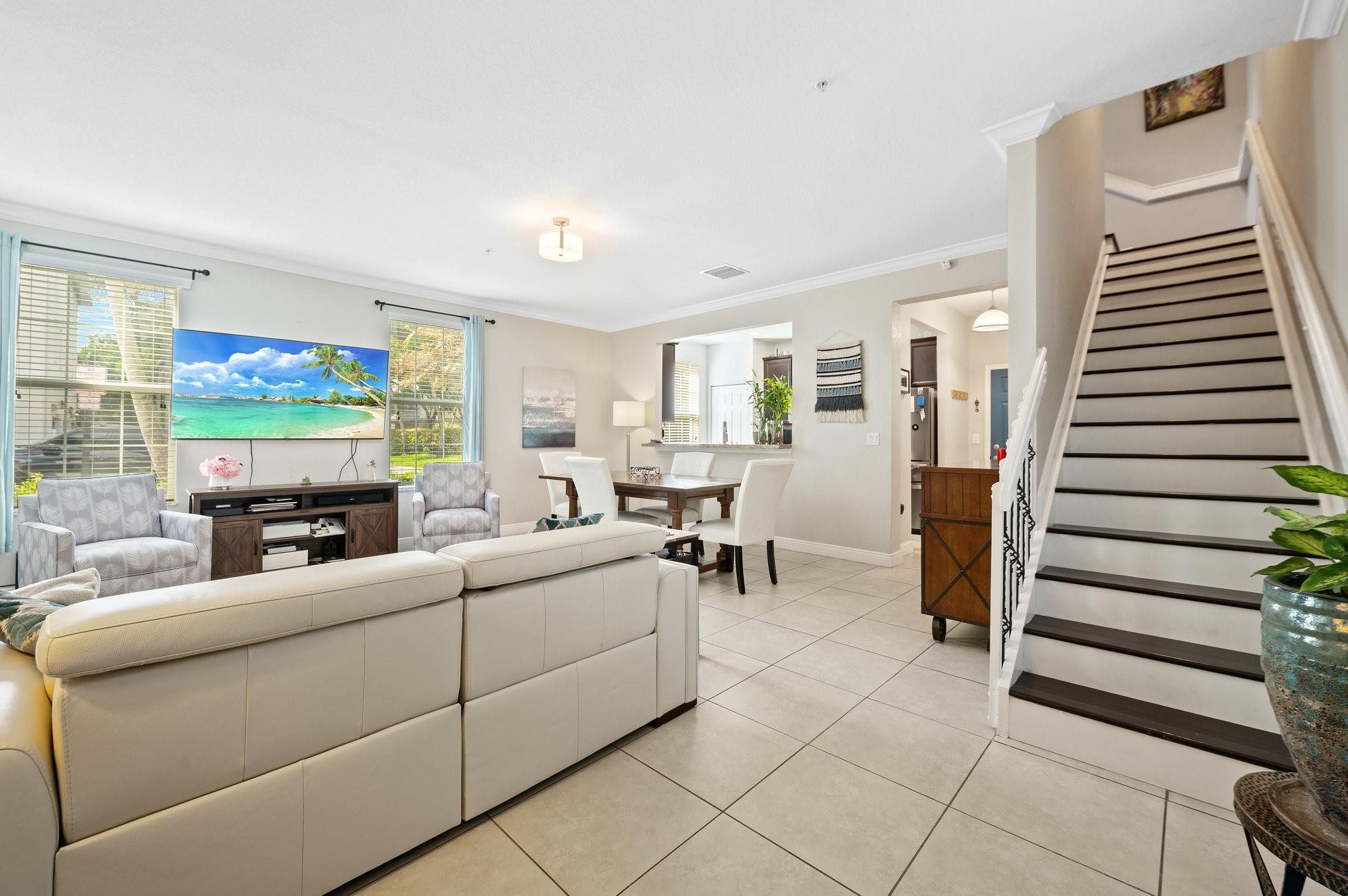 Mediterranean-Style 3-bedroom, 2.5-bath corner townhome with 2-car garage located in the gated community of Montclair. The first floor features a spacious great room with tile flooring, a powder room, and an upgraded kitchen with stainless steel appliances. Upstairs offers hardwood floors throughout, a large primary bedroom with two closets, and bath with dual sinks. Two guest bedrooms, a full guest bath, upstairs laundry with full-size stackable washer/dryer, and a large loft ideal for a second living area, office, or playroom. High impact windows and doors. Internet, Cable, Roof Replacement, Exterior Painting, Landscaping and all Community amenities clubhouse, pool, gym, outdoor kitchen, playground, dog park and walking path with lake views. Convenient access to I-75 and the Turnpike.