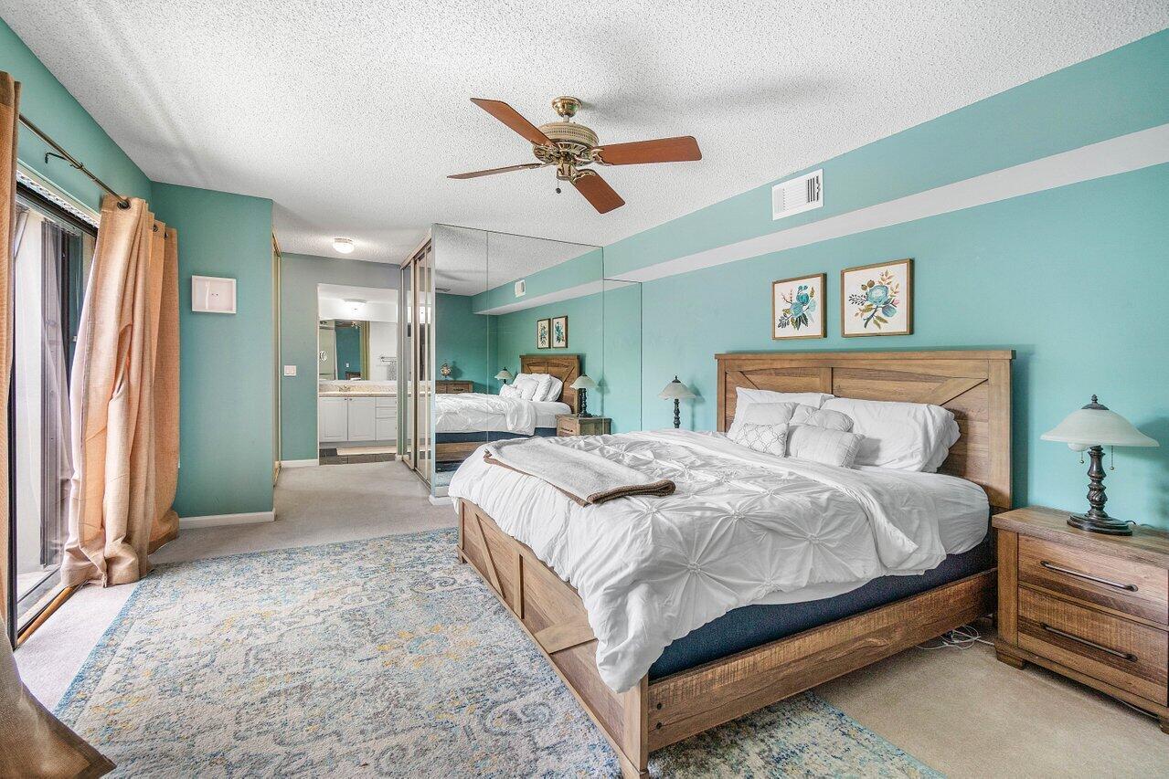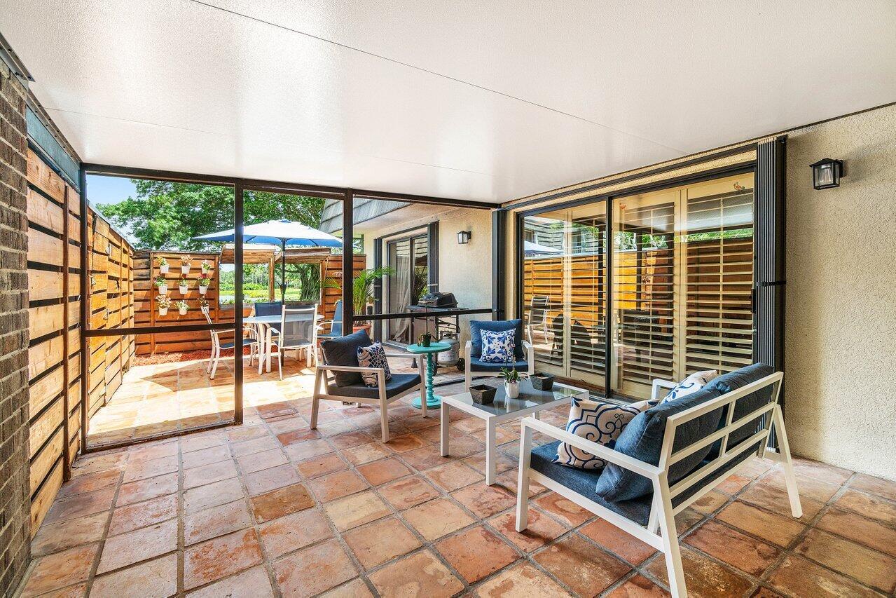 This Glenwood 3 bedroom 3 bath townhome has one of the best locations in all of Glenwood, nestled along the wide lake with huge shady banyan trees and spacious green areas for quiet relaxation to enjoy your morning coffee from the screened patio. Easy and fast access to PGA Blvd situated on 1st Terrace with deeded parking spot right at front door! Both bedrooms have their own balcony with lake and fountain views. Glenwood Townhomes amenities include racquetball court, pickle ball court, tennis courts, swimming pool, jogging trail and park. Excellent opportunity to own in PGA National with serene water views and location far from turnpike noise and walking distance to amenities and PGA Resort! Brand new mansard roof paid for by seller! Accordian Hurricane Shutters on ALL windows/doors.