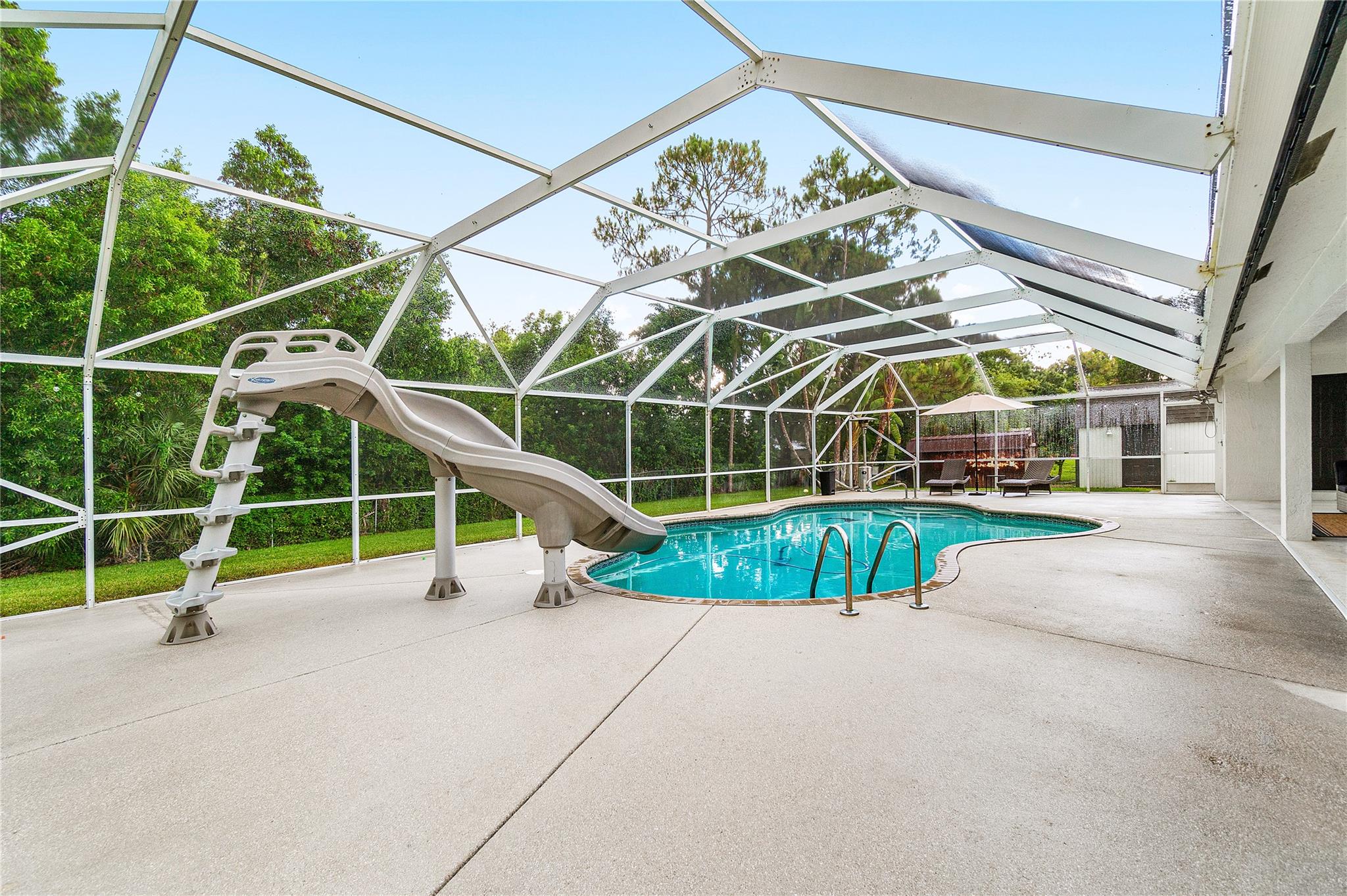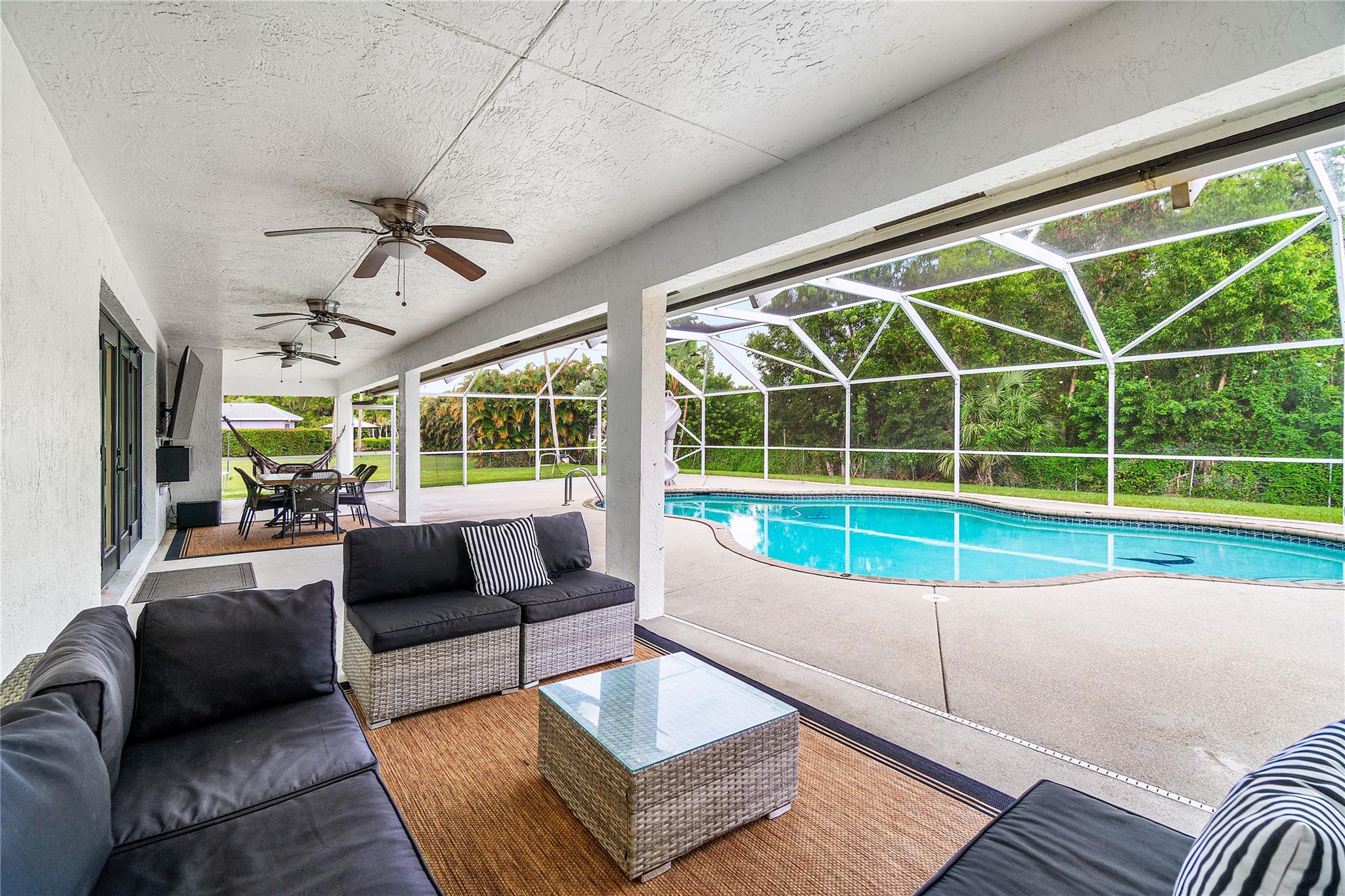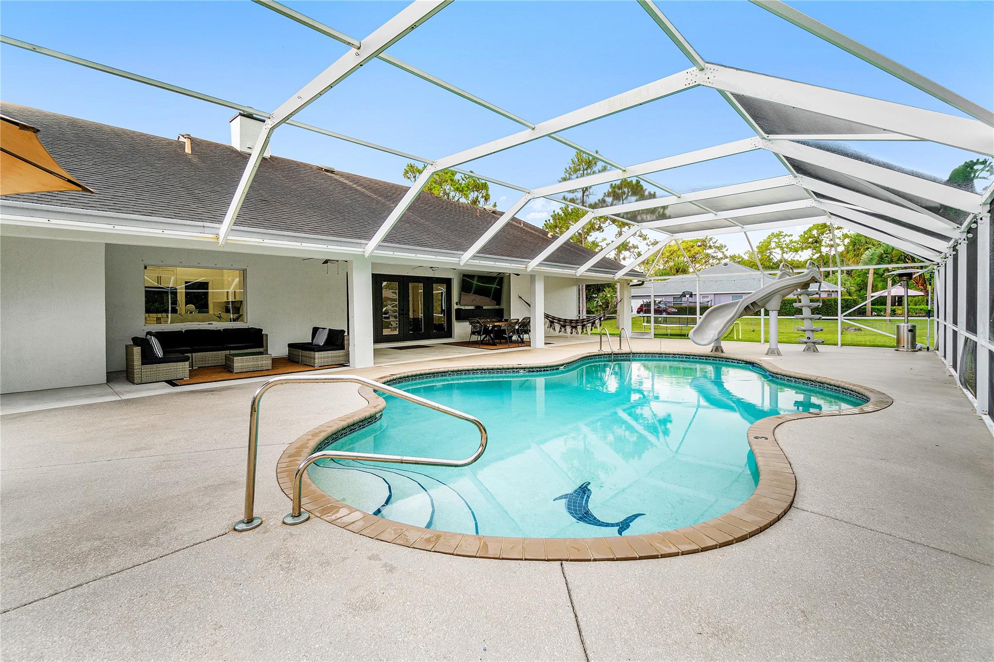 MOTIVATED SELLER!! CITY WATER! Beautifully updated 4-bedroom home with a den (can be 5th bedroom), 2.5 baths, remodeled kitchen with massive island, great storage, and appliances under 2 years old. Premium vinyl floors, fresh paint inside and out, new A/C, updated fireplace, washer/dryer included. Most windows are hurricane-proof (all bedrooms and baths). Screened front porch, private screened pool with large covered patio. Huge fenced lot with 2 gated entrances, including 1 automatic gate for added security. Parking for 10+ cars, 2 RV hookups, 2 sheds, large attic. No HOA! Rare CITY WATER—less than 10% of homes in the area have it. Must see!