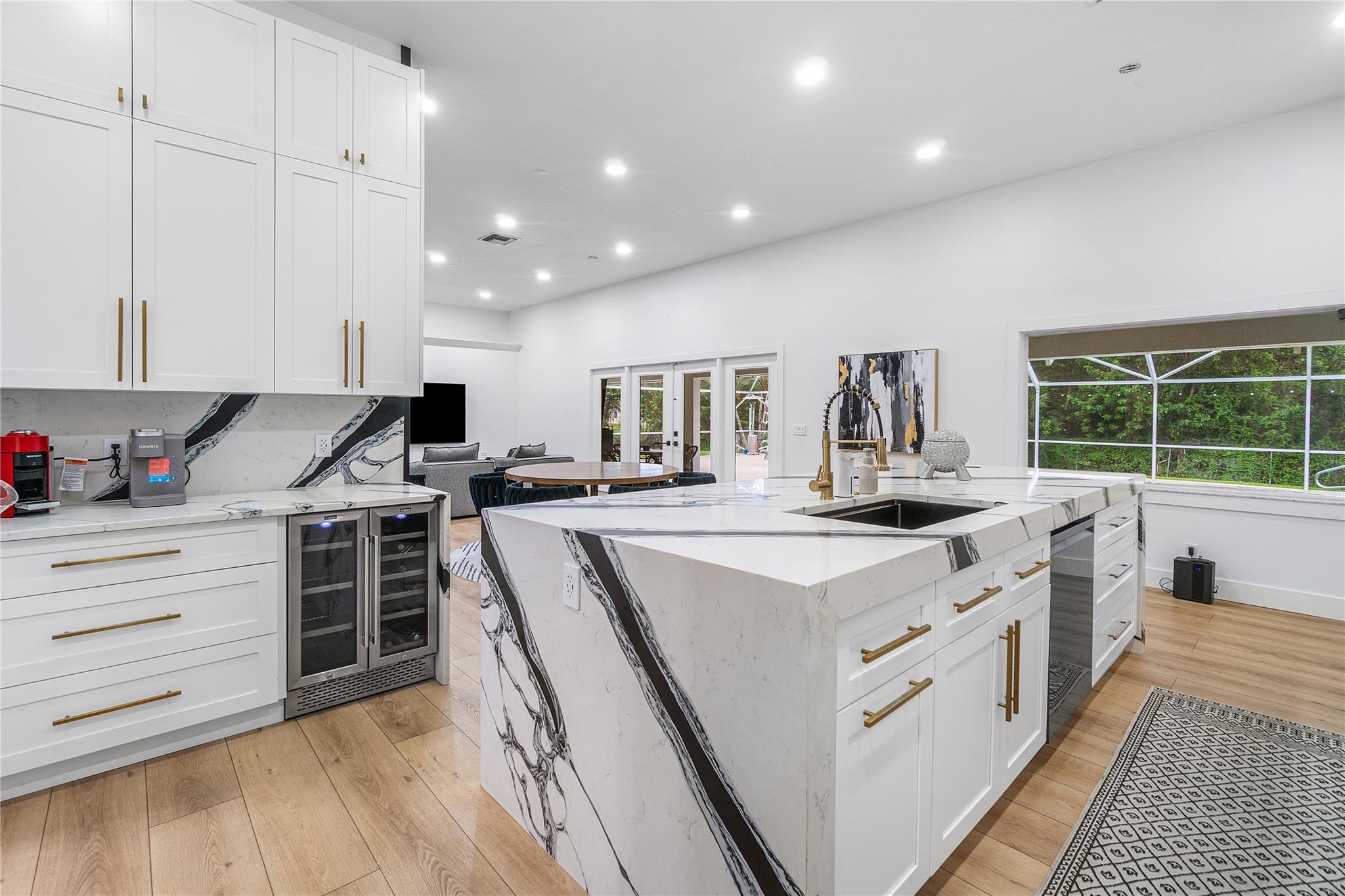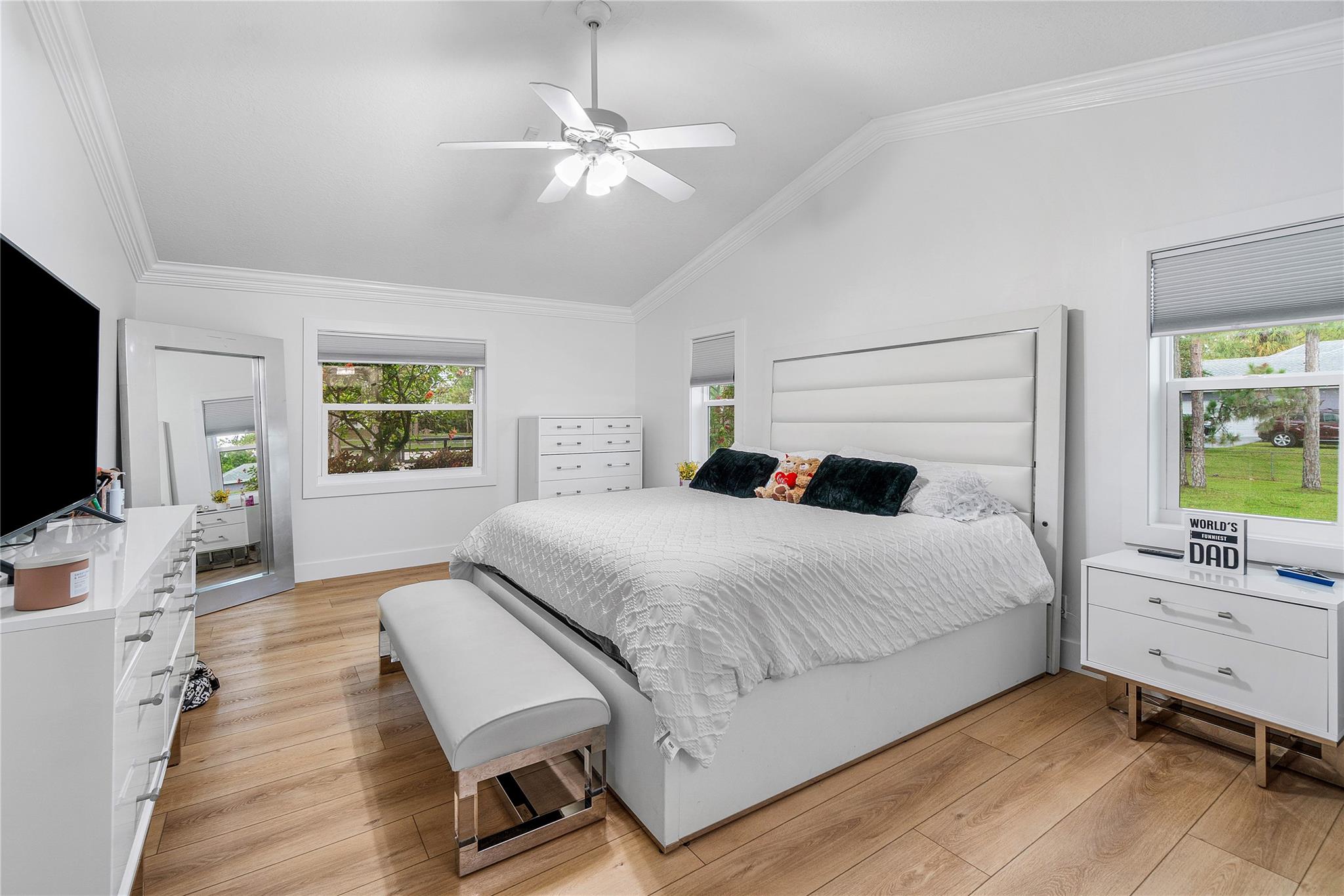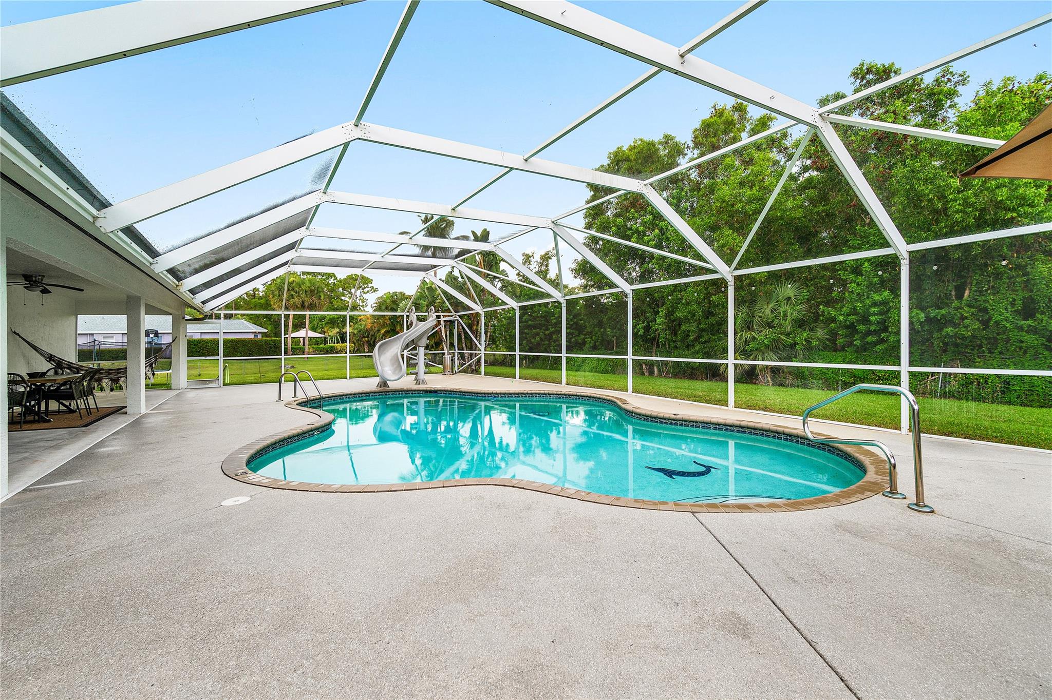 MOTIVATED SELLER!! CITY WATER! Beautifully updated 4-bedroom home with a den (can be 5th bedroom), 2.5 baths, remodeled kitchen with massive island, great storage, and appliances under 2 years old. Premium vinyl floors, fresh paint inside and out, new A/C, updated fireplace, washer/dryer included. Most windows are hurricane-proof (all bedrooms and baths). Screened front porch, private screened pool with large covered patio. Huge fenced lot with 2 gated entrances, including 1 automatic gate for added security. Parking for 10+ cars, 2 RV hookups, 2 sheds, large attic. No HOA! Rare CITY WATER—less than 10% of homes in the area have it. Must see!