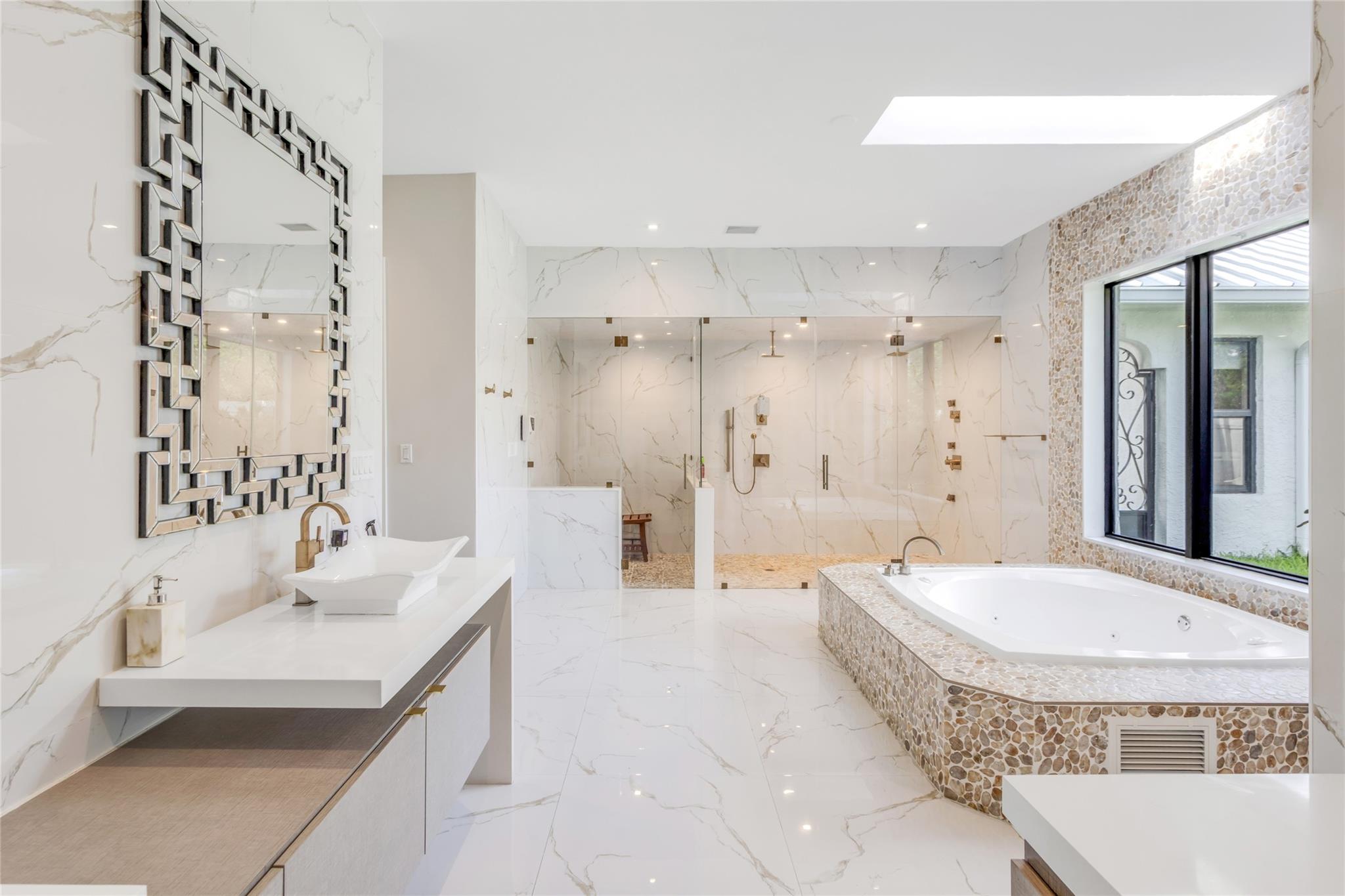 Sited on nearly 2-acres in the Estate Section, this 8,084± total sq ft residence with guest house offers the ultimate rural retreat. Updated with a sophisticated modern European aesthetic, this 4-Bedroom residence & separate 2-bedroom guest house, complete with a full kitchen, living & laundry, is perfect for hosting visiting family/guests. Luxe chef's kitchen, with adjoining pool-view breakfast room, has work island & dining extension, finished with exotic zebra-wood cabinetry & professional-grade appliances. The master suite offers pool-courtyard access, a spa-like quartz bathroom with jetted tub, double vanities, walk-in shower, separate steam room & water closet. Privately hedged & gated this estate appeals to equestrians, nature enthusiasts, and VIP's seeking privacy. 2024 Metal Roof