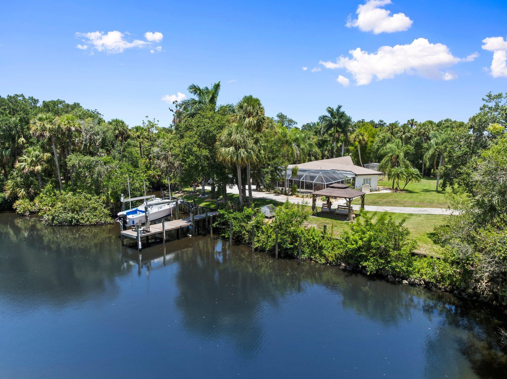 BOATERS PARADISE!!! Solid CBS home on nearly 2 acres with river frontage & direct ocean access! Private and serene, this property offers a newer roof, full-home generator, and abundant wildlife all around. In less than 40 minutes, reach open water--boat to restaurants, the sandbar, or your neighbor's dock. Enjoy kayaking, fishing, or watching manatees and playful otters from your backyard. A charming Free Reading Library (#FRL) lets you trade books, sit on the bench, and take in nature. With space to garden, relax, or simply spread out, this rare CBS gem blends comfort, privacy, and the ultimate Florida lifestyle.