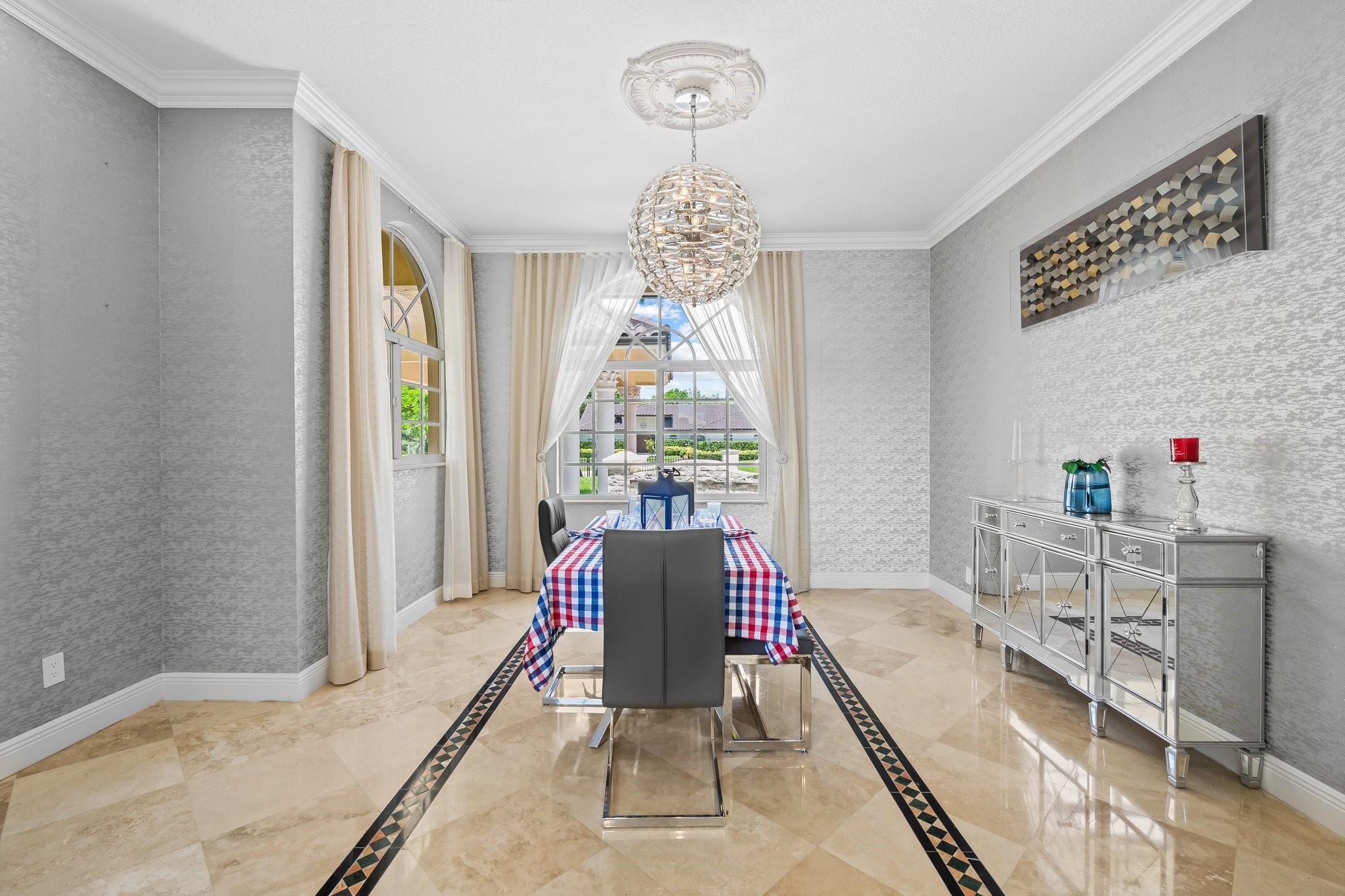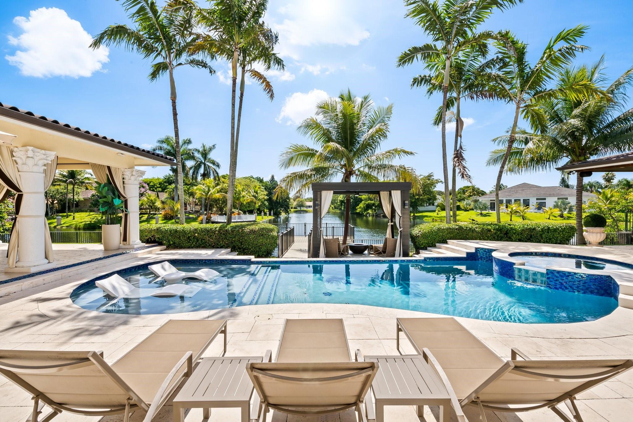 Fully renovated in 2022, this custom luxury residence blends timeless elegance with modern comfort. Set on a serene lake, it features a newly redone pool and a lush backyard with a covered patio—ideal for relaxing or entertaining. Inside, the designer-decorated interior includes impact windows, a gourmet kitchen with new high-end appliances, and marble floors throughout. Custom built-ins and French doors offer seamless indoor-outdoor living. The layout features 5 bedrooms on the main floor, while the expansive upstairs primary suite offers a private balcony and attached den. A crystal chandelier highlights the grand foyer with refined style. Additional features include an automatic generator, new roof, and upscale finishes throughout—crafted for the most discerning buyer.