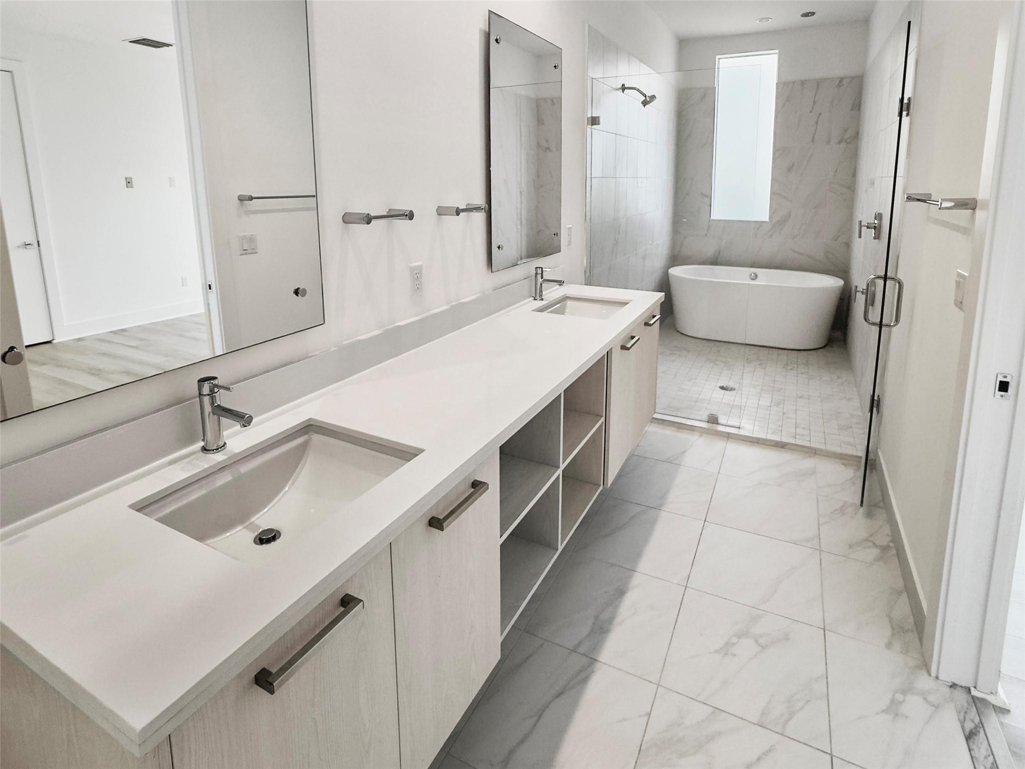 Modern Townhome at Galleria Lofts Contemporary 2-bedroom + loft townhome featuring a spacious open layout, private courtyard, and impact-rated windows and doors. Sleek kitchen with stainless steel appliances flows seamlessly into the main living space. The loft area is ideal for a home office, media room, or potential third bedroom. Large private balcony provides an inviting outdoor retreat. The primary suite includes ample closet space and a spa-style bathroom with a soaking tub, oversized shower, and dual sinks. Additional features include a 1-car attached garage, an assigned parking space, and a community dog park. Located under a mile from the beach and Galleria Mall, with easy access to major highways, airport, shopping, dining, and nightlife.