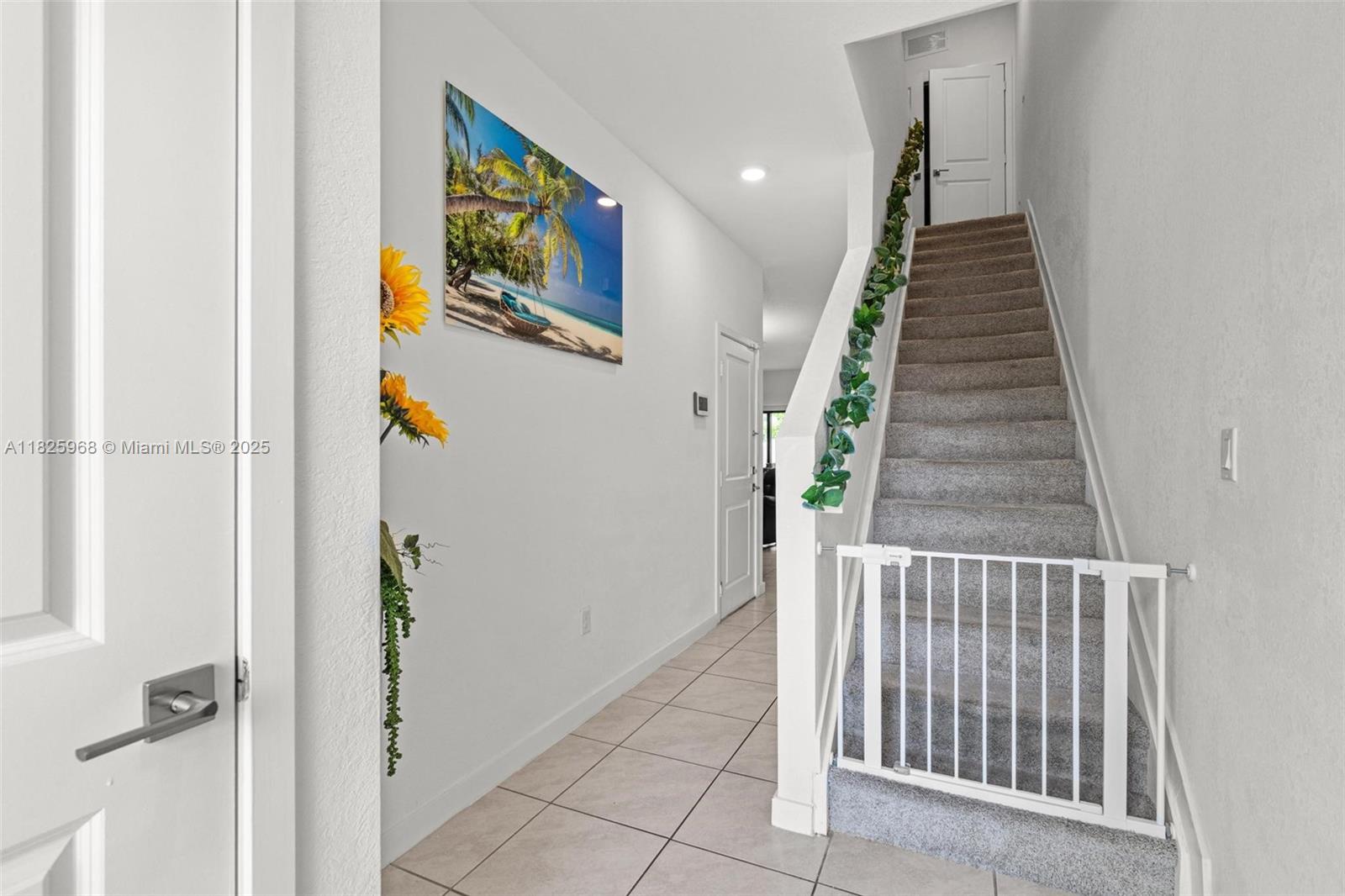 Beautiful two story townhome featuring 3 bedrooms, 2.5 bathrooms, and a 1 car garage. Step into a bright and airy living area that flows seamlessly into a stylish kitchen with dark wood cabinetry, stainless steel appliances, and a large island with seating. Upstairs, you'll find spacious bedrooms with plush carpeting, including a primary suite with a walk-in closet and ensuite bath. The home also offers a convenient upstairs laundry room and a private fenced-in backyard with a paved patio—perfect for relaxing or outdoor dining. Located in a quiet, well-kept community with easy access to US-1, shopping, dining, and the Florida Keys. Don’t miss this opportunity to own a move-in-ready home that combines comfort, style, and functionality!