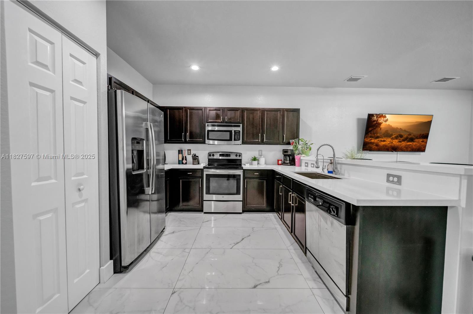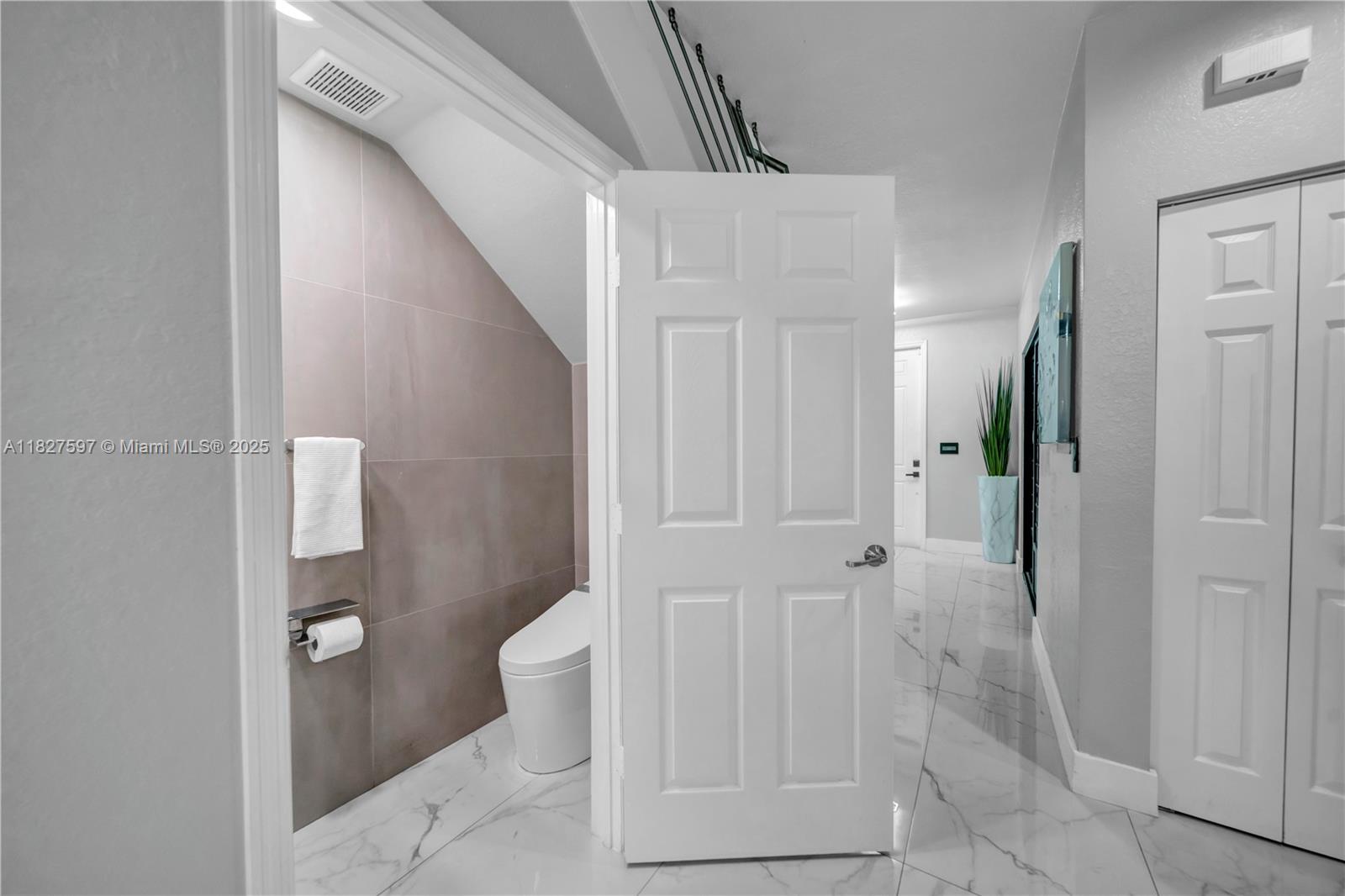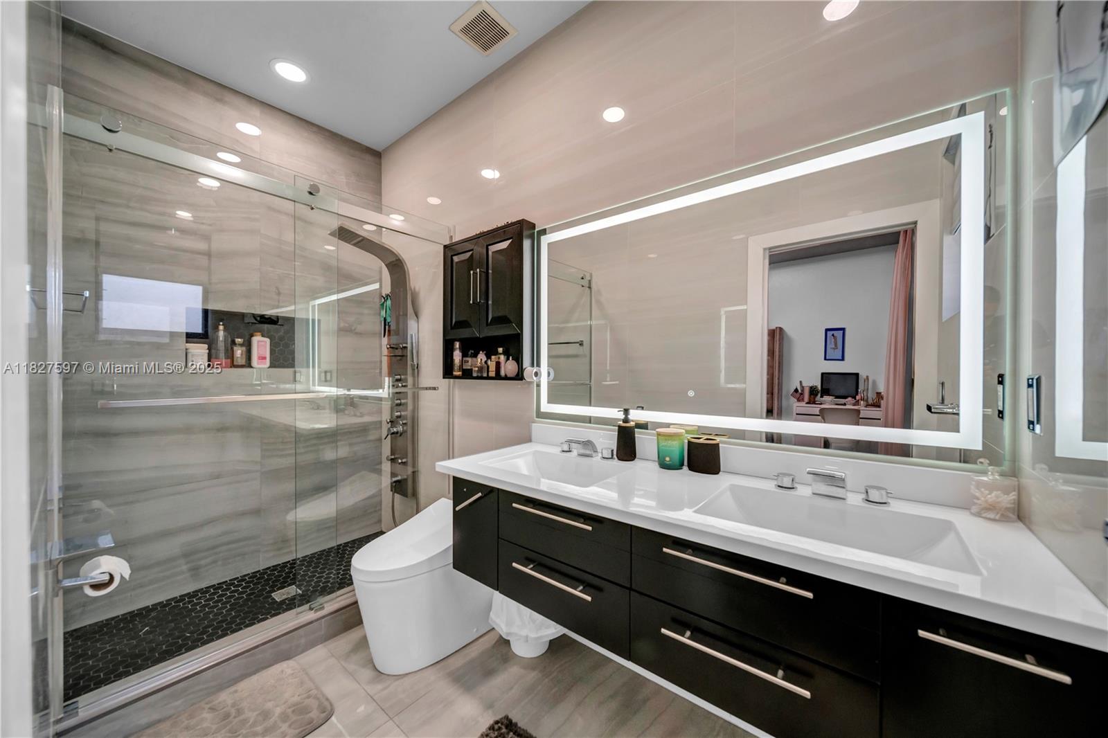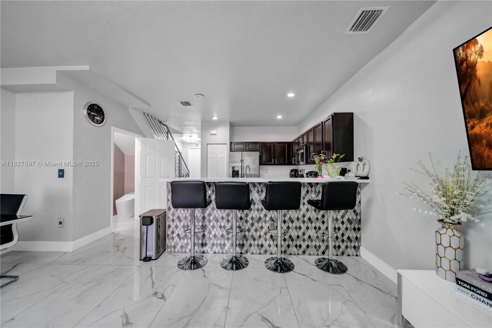 Over $40,000 in upgrades! Offering the best price and the best finishes currently on the market, this renovated townhouse has a flexible space can be used as a home office or guest room. Upstairs, each bedroom has its own full bathroom, including a primary suite with a custom-built walk-in closet, smart toilets and floor-to-ceiling ceramic tile. Features: porcelain tile flooring throughout the entire first floor, and waterproof vinyl flooring on the staircase and second level, NO carpet anywhere! The modern kitchen is renovated with quartz countertops, and SS appliances. covered pergola and an additional storage. in-unit laundry, hurricane shutters, and 2 assigned parking spaces. Community amenities: pool, gym, clubhouse, and playground. located near I-75, the Palmetto, top-rated schools