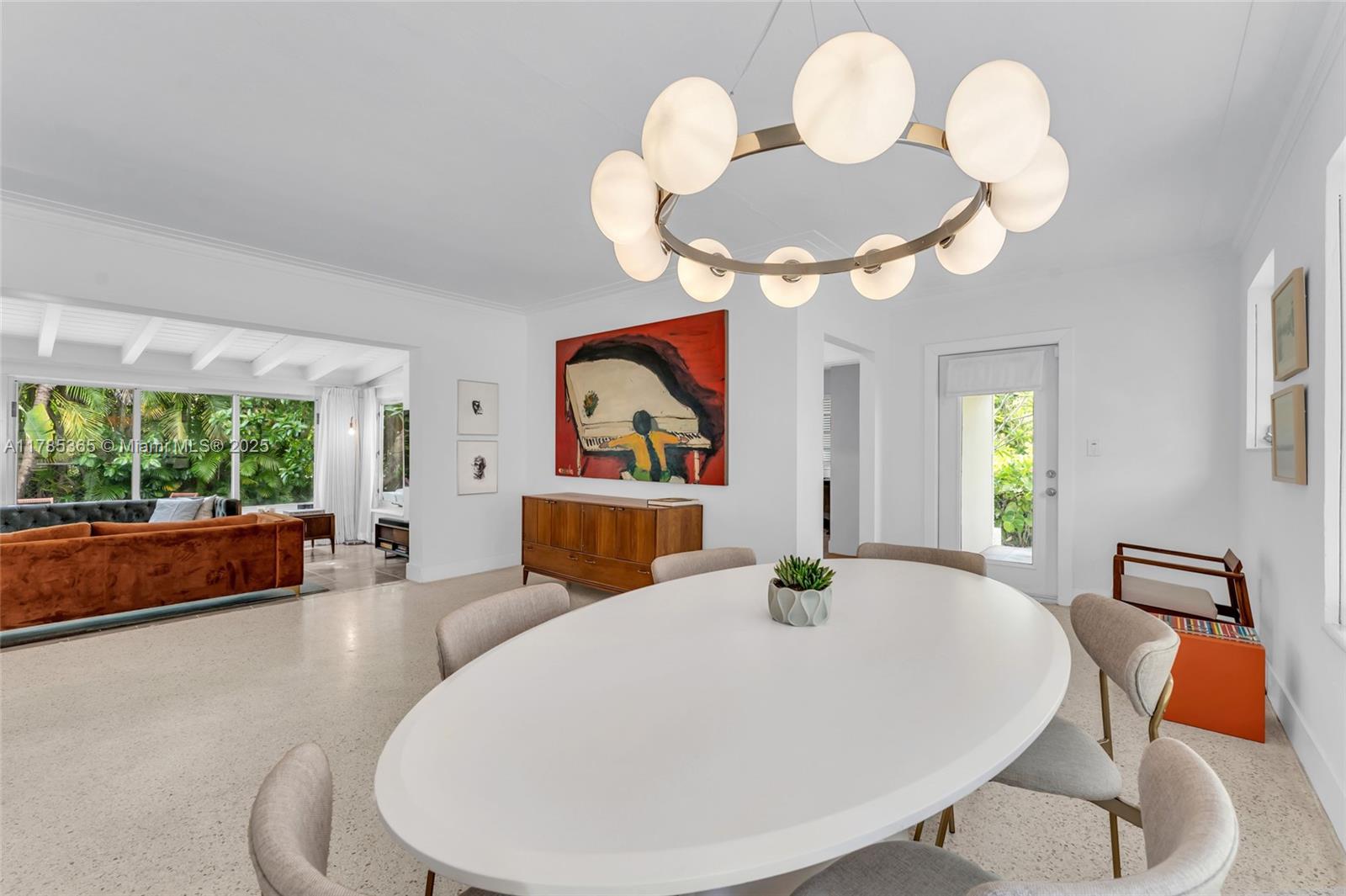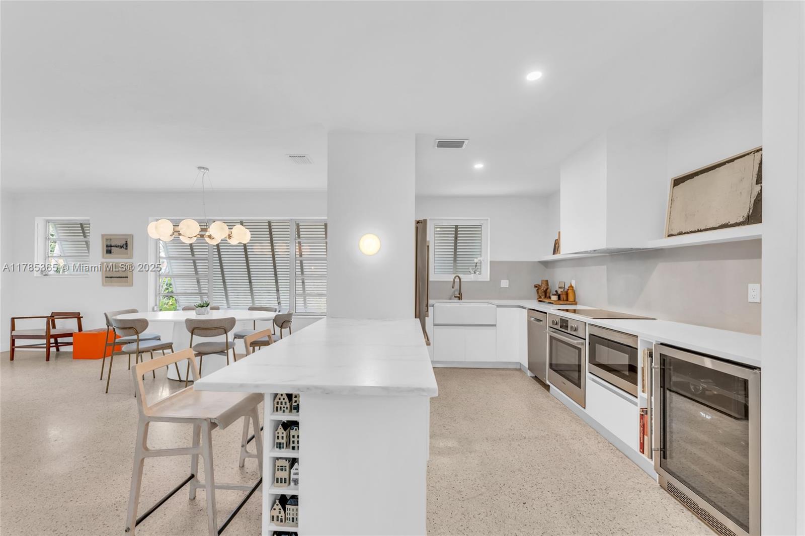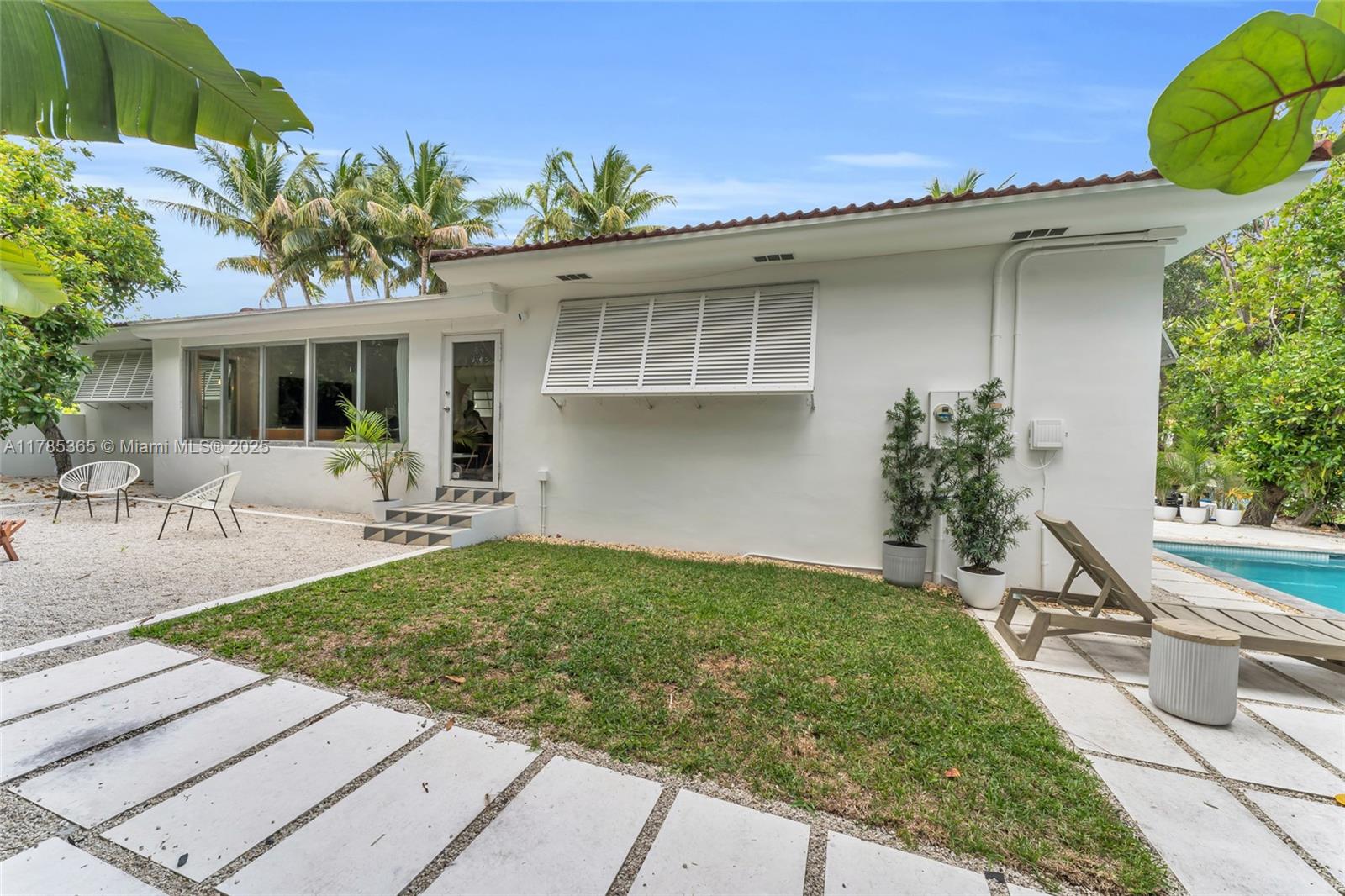 Architect-remodeled 2-bed, 3-bath home in Miami Shores Estates, set on a private corner lot at the end of two no-outlet streets. A peaceful retreat blending vintage charm and modern design, with original terrazzo floors, high-end finishes, and seamless flow to a lush garden with brand-new pool. The finished garage functions as an art studio/office. Corner lot allows for generous parking—2 spaces in front and 2–4 in the driveway. The kitchen features all new, high-end appliances. Every detail reflects thoughtful care. A rare and special home.