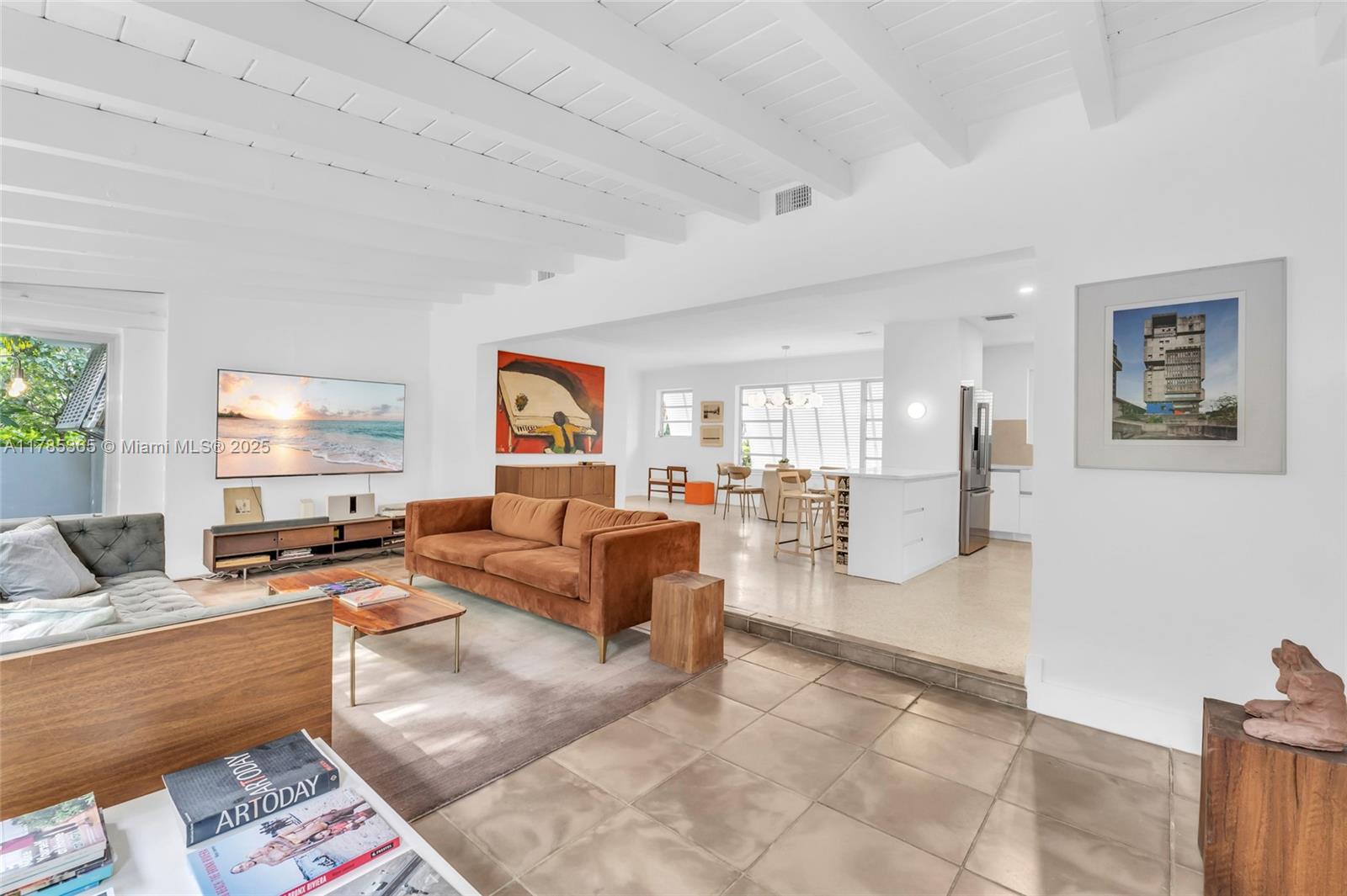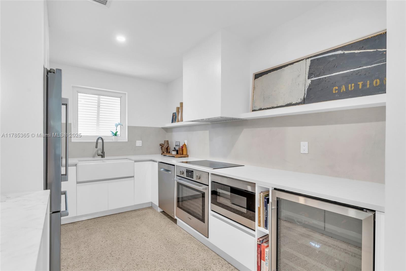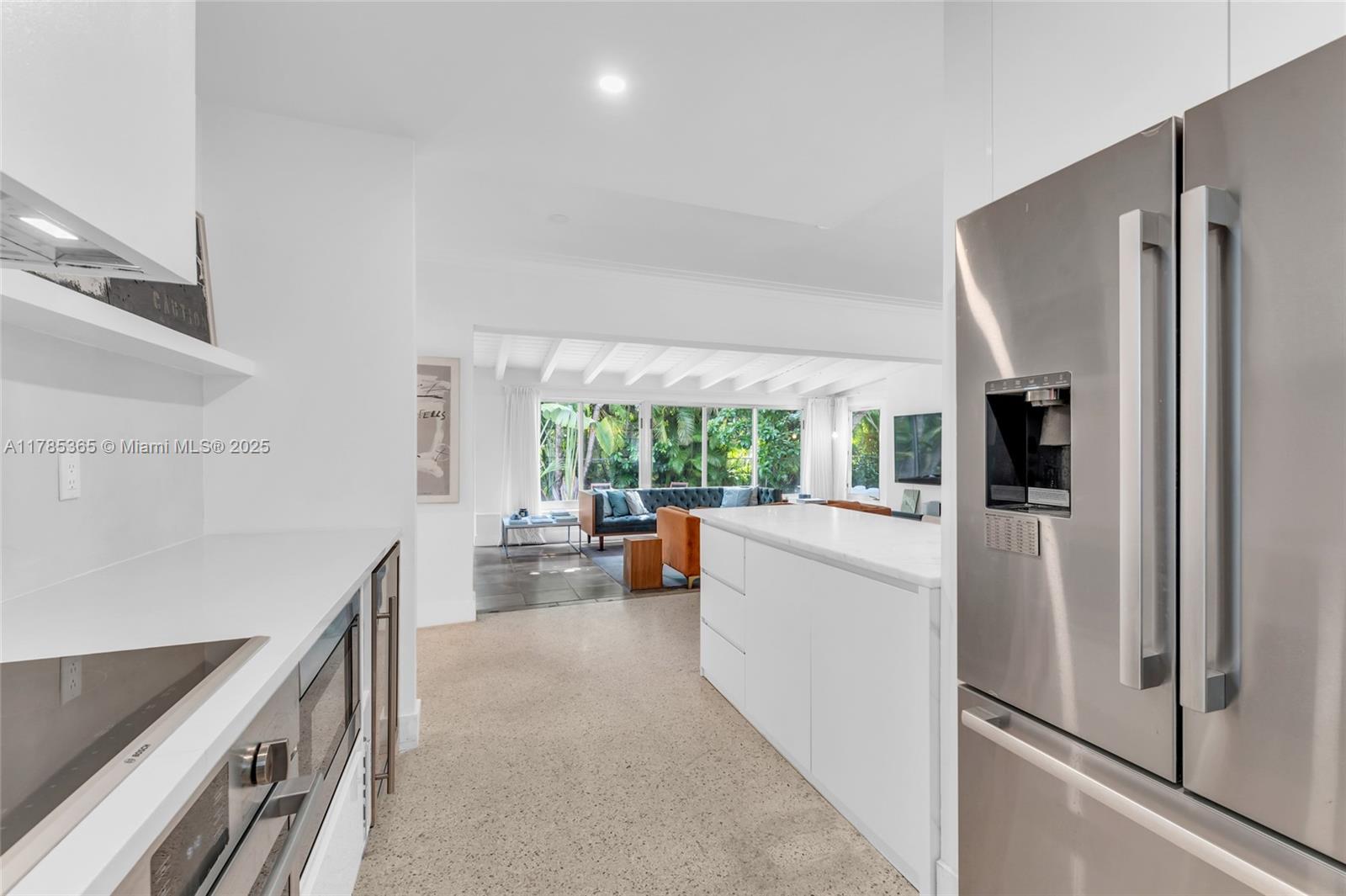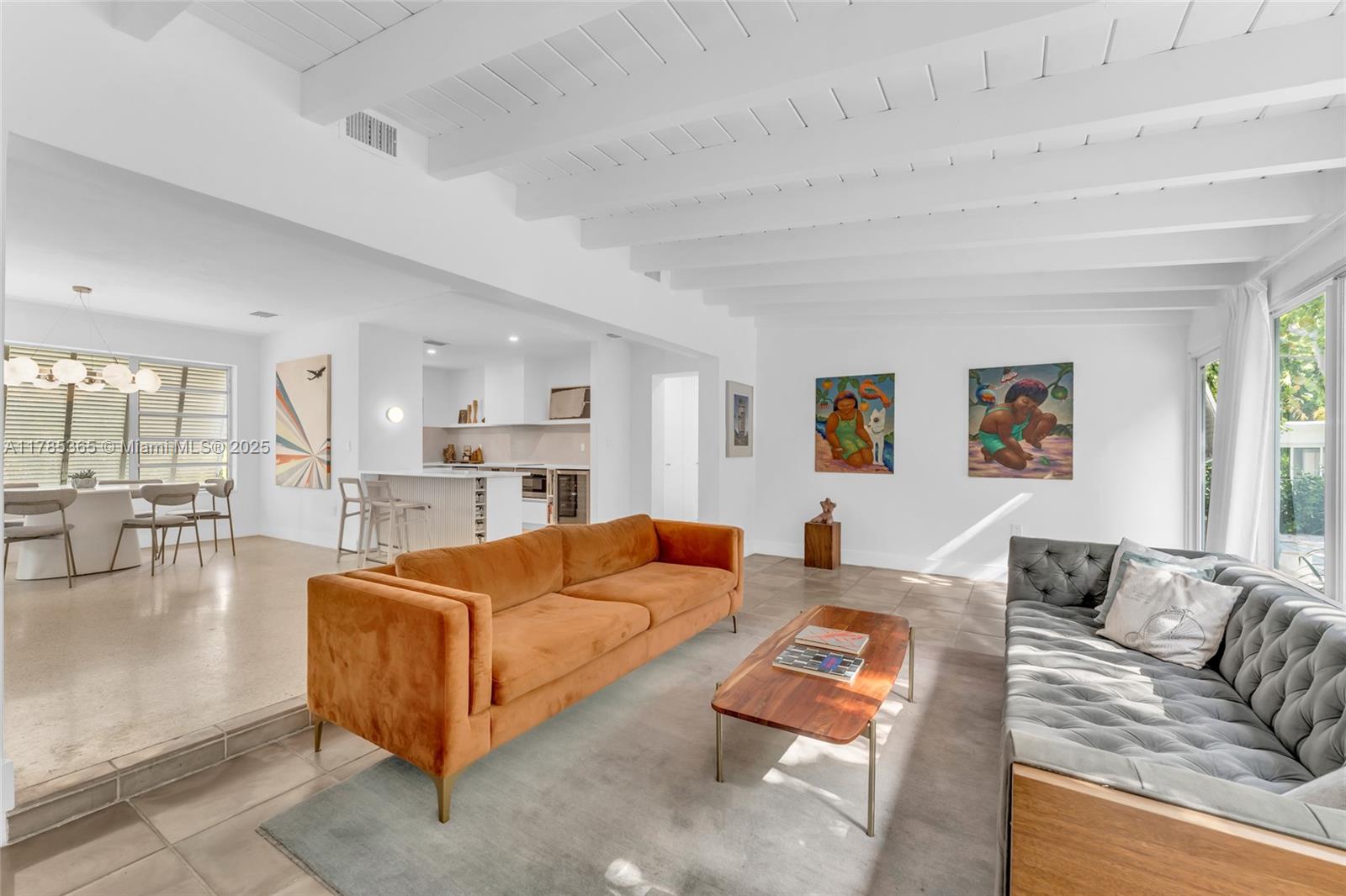 Architect-remodeled 2-bed, 3-bath home in Miami Shores Estates, set on a private corner lot at the end of two no-outlet streets. A peaceful retreat blending vintage charm and modern design, with original terrazzo floors, high-end finishes, and seamless flow to a lush garden with brand-new pool. The finished garage functions as an art studio/office. Corner lot allows for generous parking—2 spaces in front and 2–4 in the driveway. The kitchen features all new, high-end appliances. Every detail reflects thoughtful care. A rare and special home.