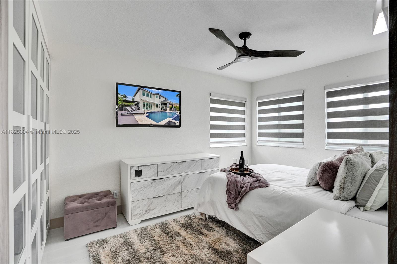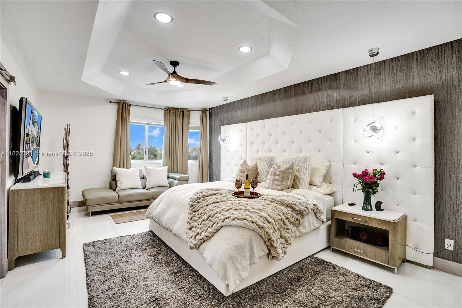 View this stunning & expansive 5-bed, 3-bath home w/ a dedicated office and is one of the largest models in this highly sought-after community, offering over 3,100 sq ft of fully renovated living space. Enjoy the peace of mind that comes with a brand-new roof and hurricane impact windows throughout. The open-concept design features a chef-inspired kitchen with quartz countertops, stainless steel appliances, and abundant cabinetry. The spacious master suite offers a serene retreat with a spa-like bath. Perfect for entertaining, the backyard oasis includes a heated pool and spa, outdoor kitchen, and peaceful lake views. A first-floor bedroom adds convenience and flexibility. Residents also enjoy access to a renovated clubhouse with a weight room and pool. A Home filled w/ Elegance.