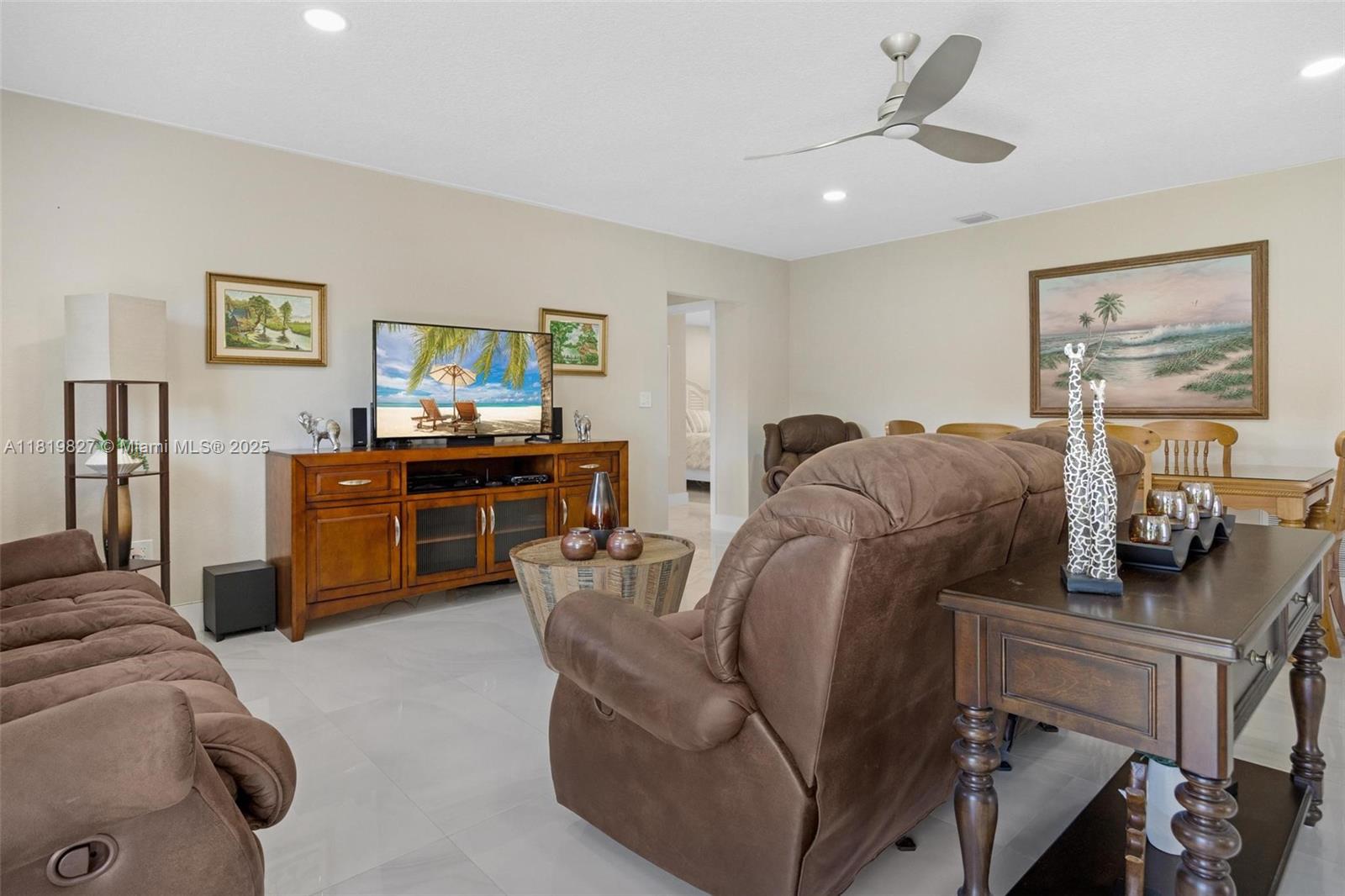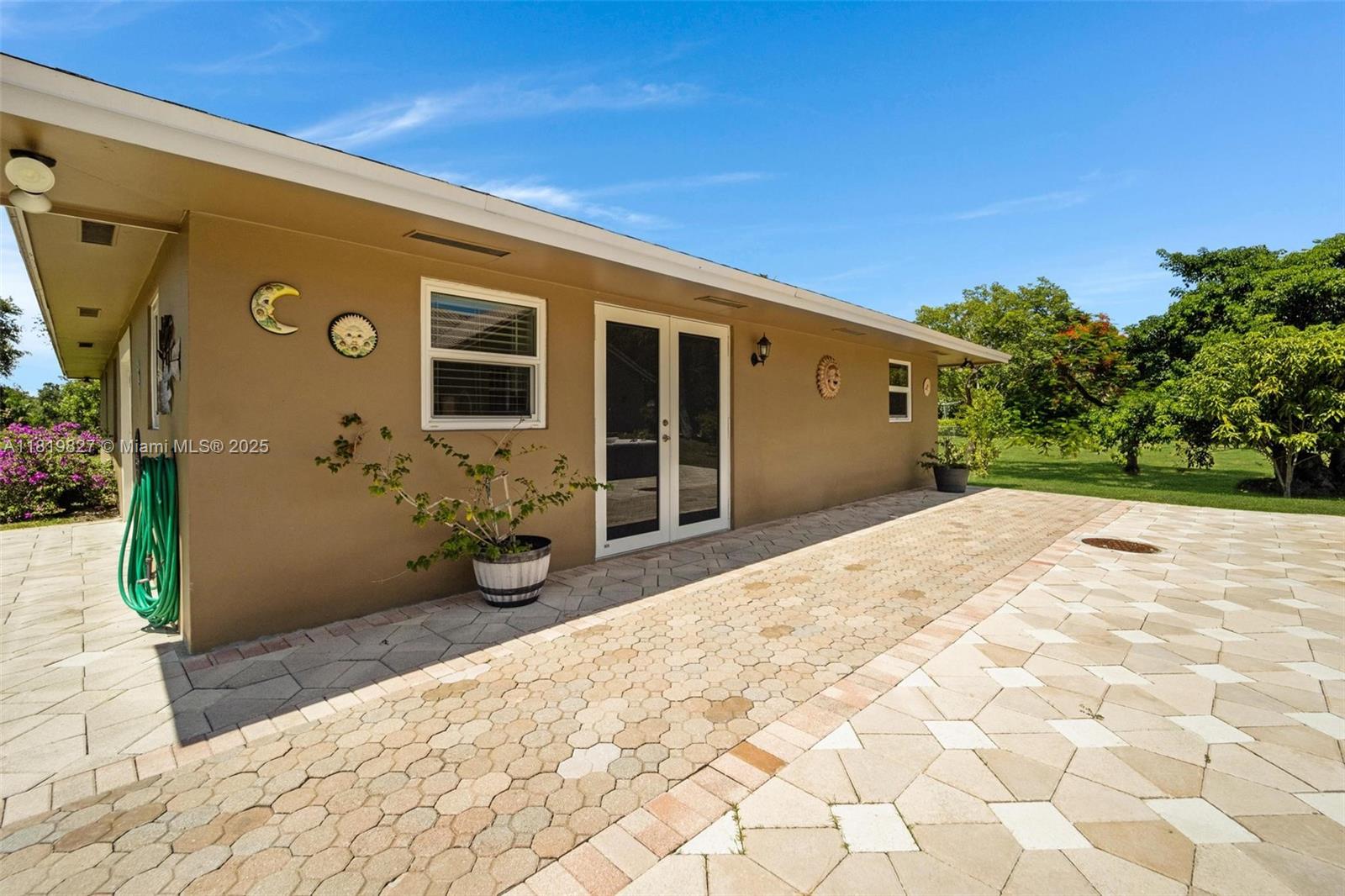 Fully fenced and gated 2.2-acre estate in equestrian-friendly Southwest Ranches. 5-bedroom residence plus a separate 2-bedroom guest house-ideal for multi-gen living, a home office, rental income, etc. The main home offers 3,000+ living sq ft, volume ceilings, abundant natural light, 2-car garage, and expansive driveway. The detached, updated guest house boasts 1,300+ sq ft, a storage room, private laundry, and a 3-seat jacuzzi. Property features new A/C systems, new water heaters, new well pumps and water filtration systems. Newly installed municipal water line directly across the property, makes city water connection optional instead of the area's typical well water. No overhead power lines running through the property.Agricultural exemption with citrus, tropical, and exotic fruit trees.