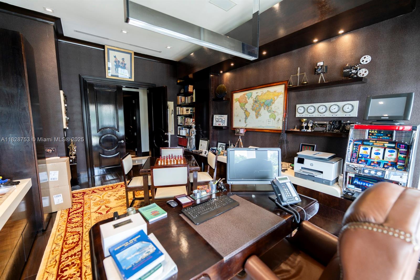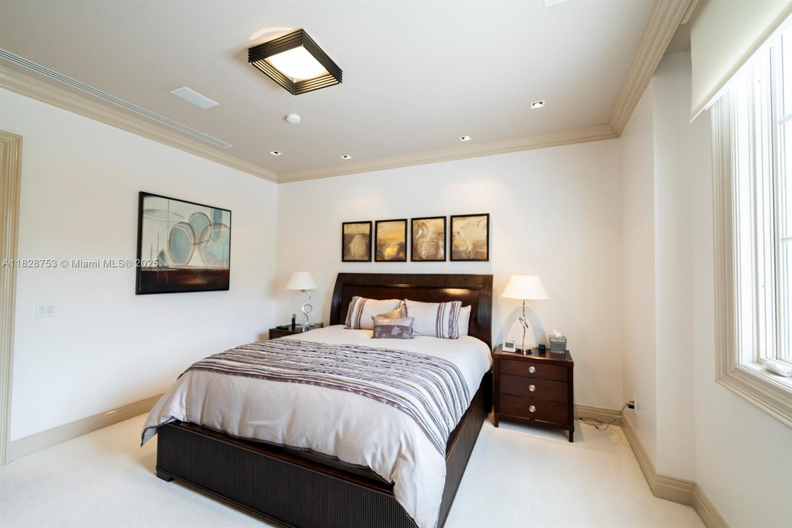 Set on an impressive 6-bedroom Golden Beach home with 186 feet of pristine waterfront, this impeccable estate home with its own private dock is truly a masterpiece. The manicured landscape features a 105’ indoor/outdoor infinity edge pool and integrated fountains. A grand double-staircase with vaulted ceilings welcomes you, backset by magnificent views along one of the widest bodies of water in Golden Beach. Interior features include a dedicated spa and fitness area, theater, wine cellar, elevator and expansive master suite with dual bathrooms and oversized wardrobes. Crestron automation, Kreon lighting, luxurious wall and window treatments, custom tapestries and top-quality finishes throughout will impress the most discerning buyers.