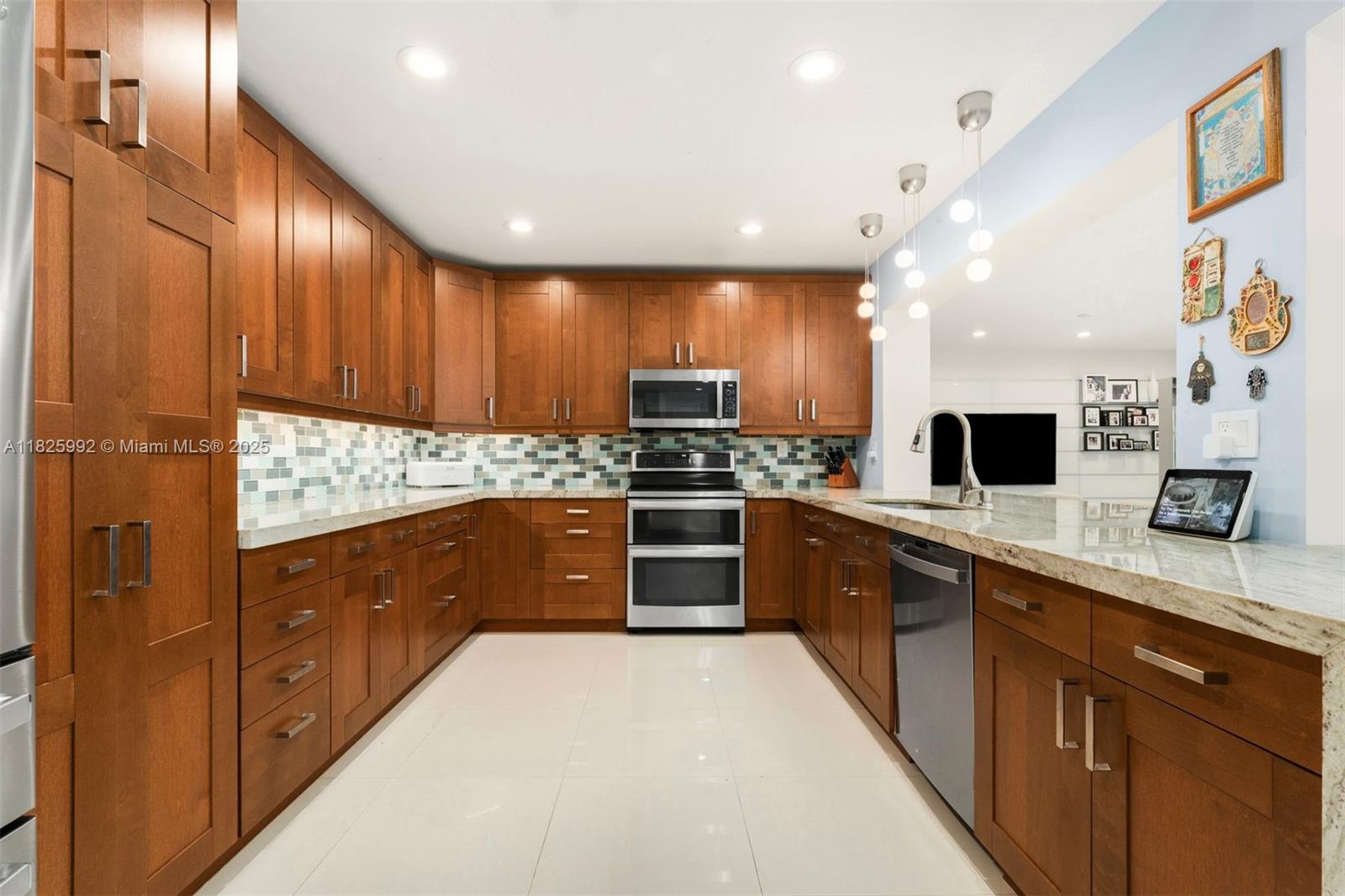 Located in the desirable gated community of Highland Lakes, this beautifully renovated 5BD/4BA home spans 3,000+ SF and offers the perfect blend of modern luxury and thoughtful functionality. Expanded and fully remodeled in 2013, the home features impact windows, new roof, electric, plumbing, plus new A/Cs (2021). Enjoy indoor-outdoor living with an oversized pool, gas + solar heaters, outdoor kitchen, covered patio & pet-friendly turf yard. The custom kitchen includes a dining built-in with wine cooler, while the spacious spa-like primary suite offers a luxurious two-person shower & massive walk-in closet. Other highlights: wellness space with gym, sauna, cold plunge, maid’s quarters, security system, water softener & 2 built-in sheds. Minutes from A-rated schools, Aventura Mall, & I-95.