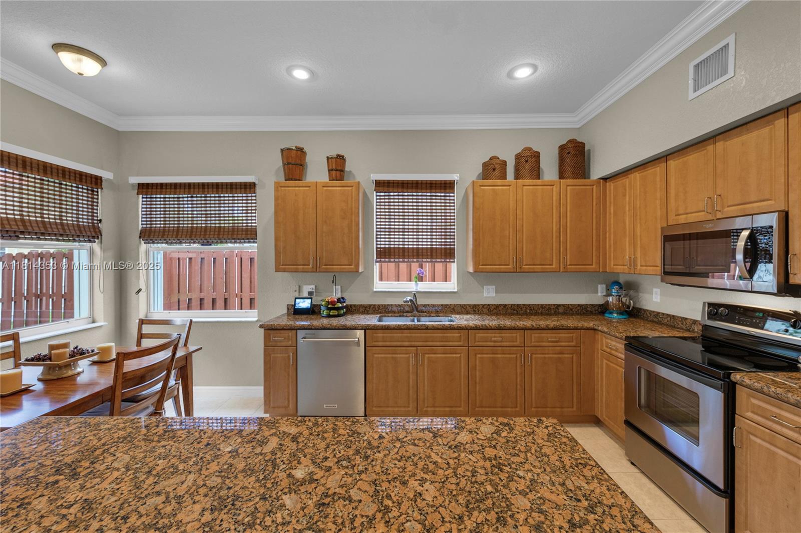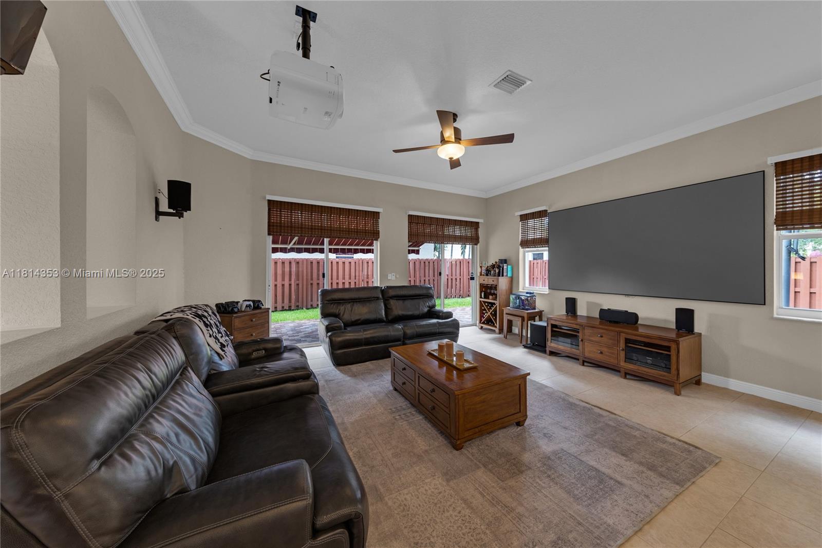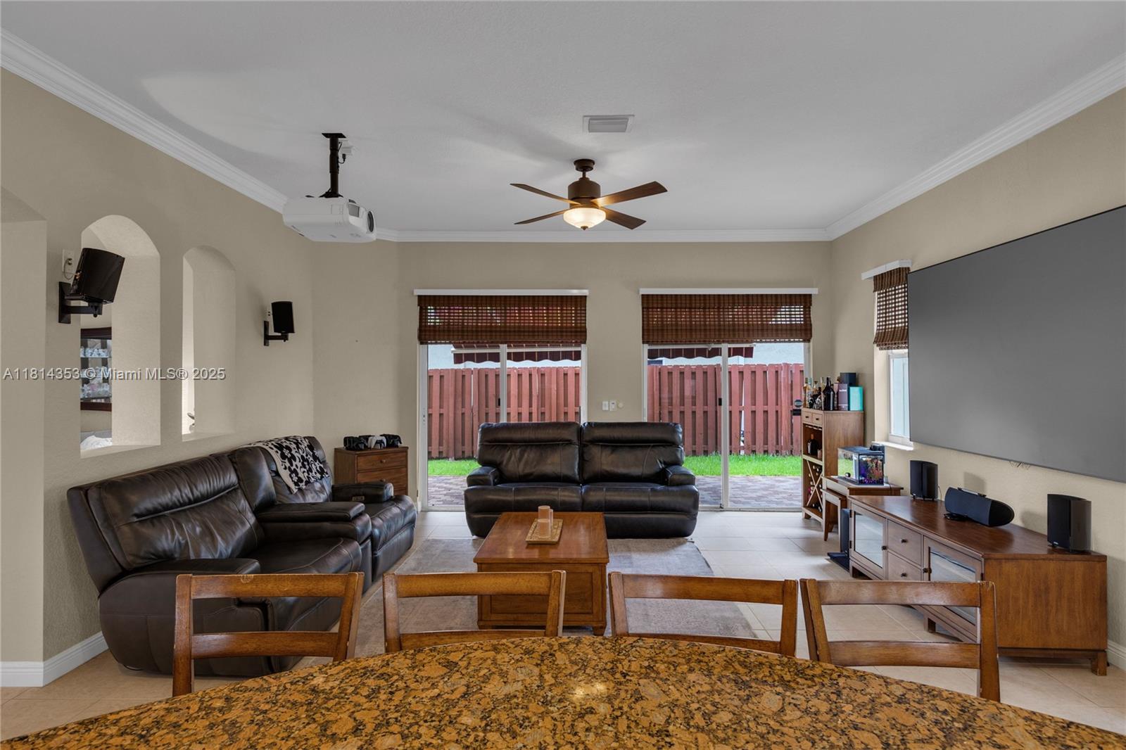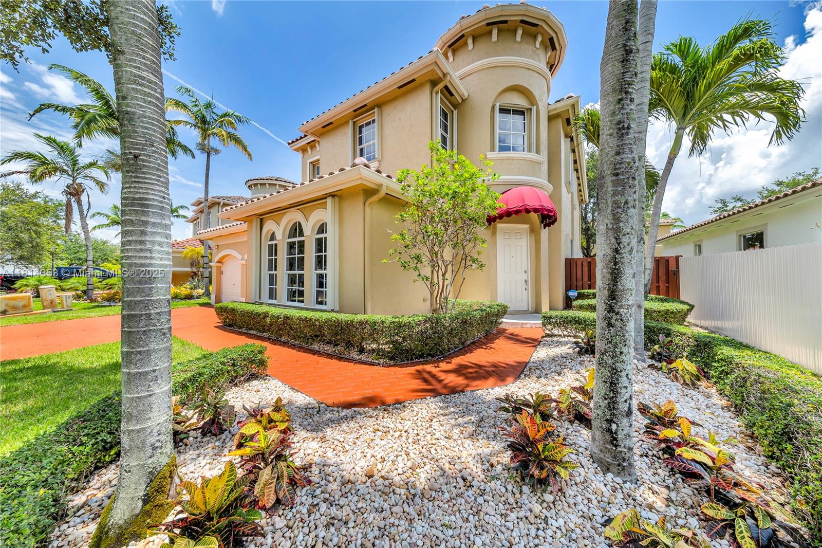 Welcome to this stunning 4-bedroom, 3-bath two-story SMART home, featuring a convenient ground-level bedroom and bath. This impeccably maintained home showcases smart home features, including a Ring Security System and cameras, Smart Locks, a Nest Smart Thermostat, Lutron Smart Lighting, fiber-optic internet, and Wi-Fi-enabled washer and Dryer. Remote-controlled garage door, Home Theater System, ensuring a modern living experience. Fenced-in backyard with pavers and retractable awning. 2025 Rheem 50-gallon water heater with lifetime warranty. Accordion shutters provide added safety and peace of mind. This gated community includes a playground within walking distance. Centrally located close to the Miami-Dade County line. Minutes to FLL airport, beach, and major highways. Low HOA.