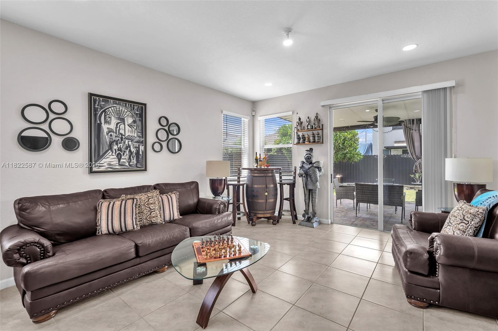 Beautiful 2-story Homestead home with 2-car garage, small porch, and inviting foyer. The open living and dining areas are perfect for entertaining family and friends. The island kitchen includes a double-door refrigerator, stove, microwave, garbage disposal, and ample cabinet space for all your cooking needs. Downstairs features a half bath, attic storage, and small walk-in closet with shelving. Upstairs has carpet throughout, a spacious loft with closet, laundry room, three bedrooms, and a master suite with walk-in closet, double sinks, shower, and separate tub. Guest bath offers double sinks and tub/shower. The backyard includes patio, pavers, grassy area, small garden, and three ceiling fans for outdoor comfort and relaxation. Separate in-law or guest-entry on the side of house.