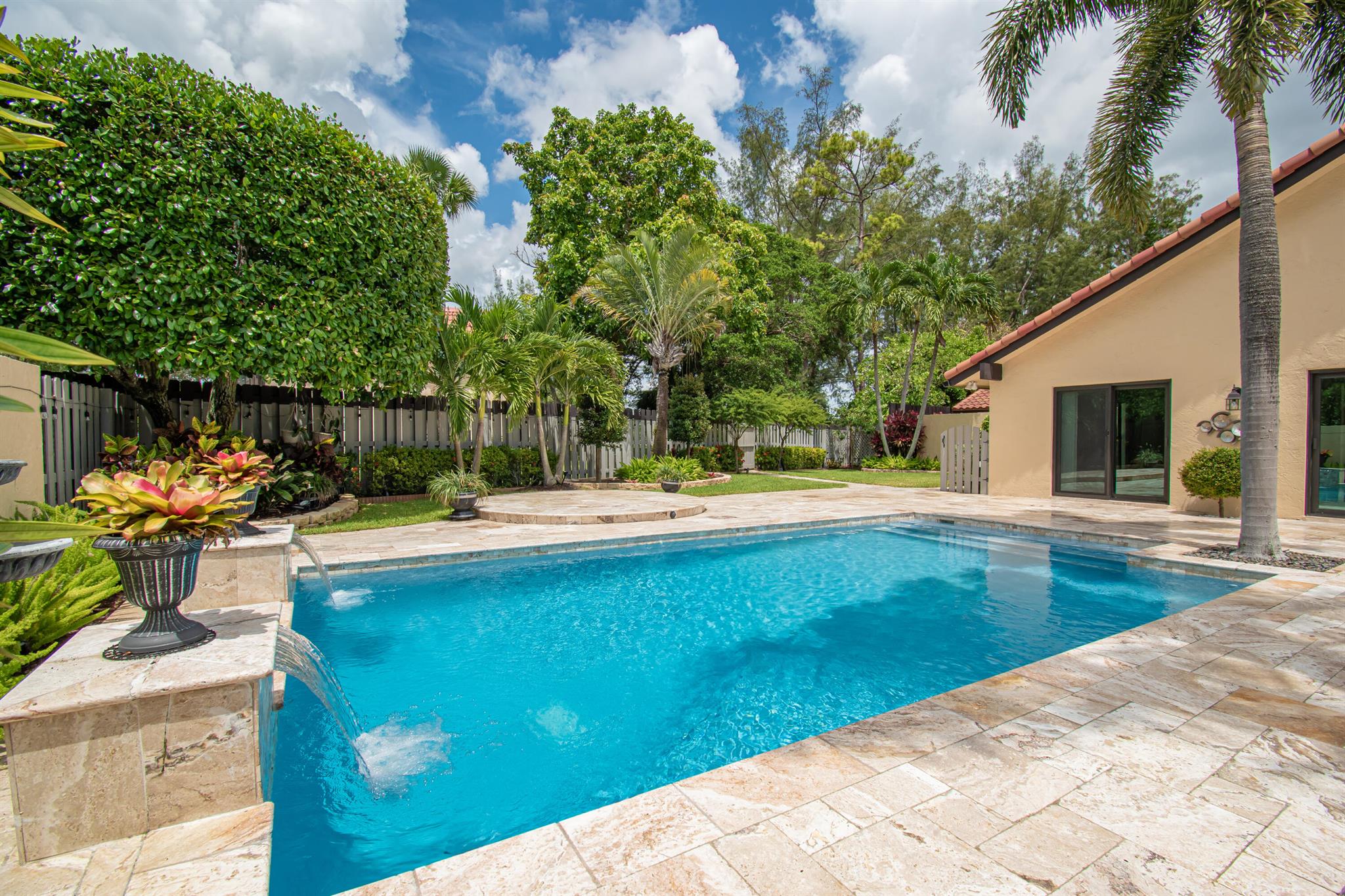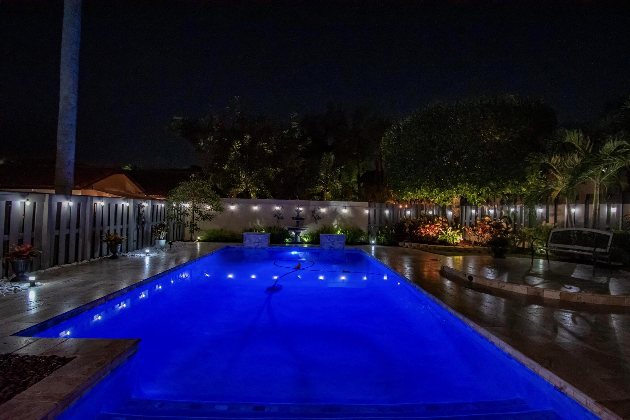 Major Price Improvement !Come see this truly unique detached single-family home, one of only six, in the charming boutique community of San Simeon. This 3BR 2BA 1-car garage home is situated on a magnificent corner lot, It features a resort-style heated pool, creating a private paradise complete with two Jandy sheer descent waterfalls,a new Diamond Brite finish,new waterline tile, a raised platform sun deck & French Pattern Marble pavers thruout a resort-style yard.Butterfly Garden plants surround the pool deck leading directly to private gate entry unto lake bridge & park,The French Doors Off the kitchen seamlessly blend the indoor & outdoor spaces,creating a harmonious flow thruout .An Abundance of natural light illuminates this open & immaculate home. No expense has been spared