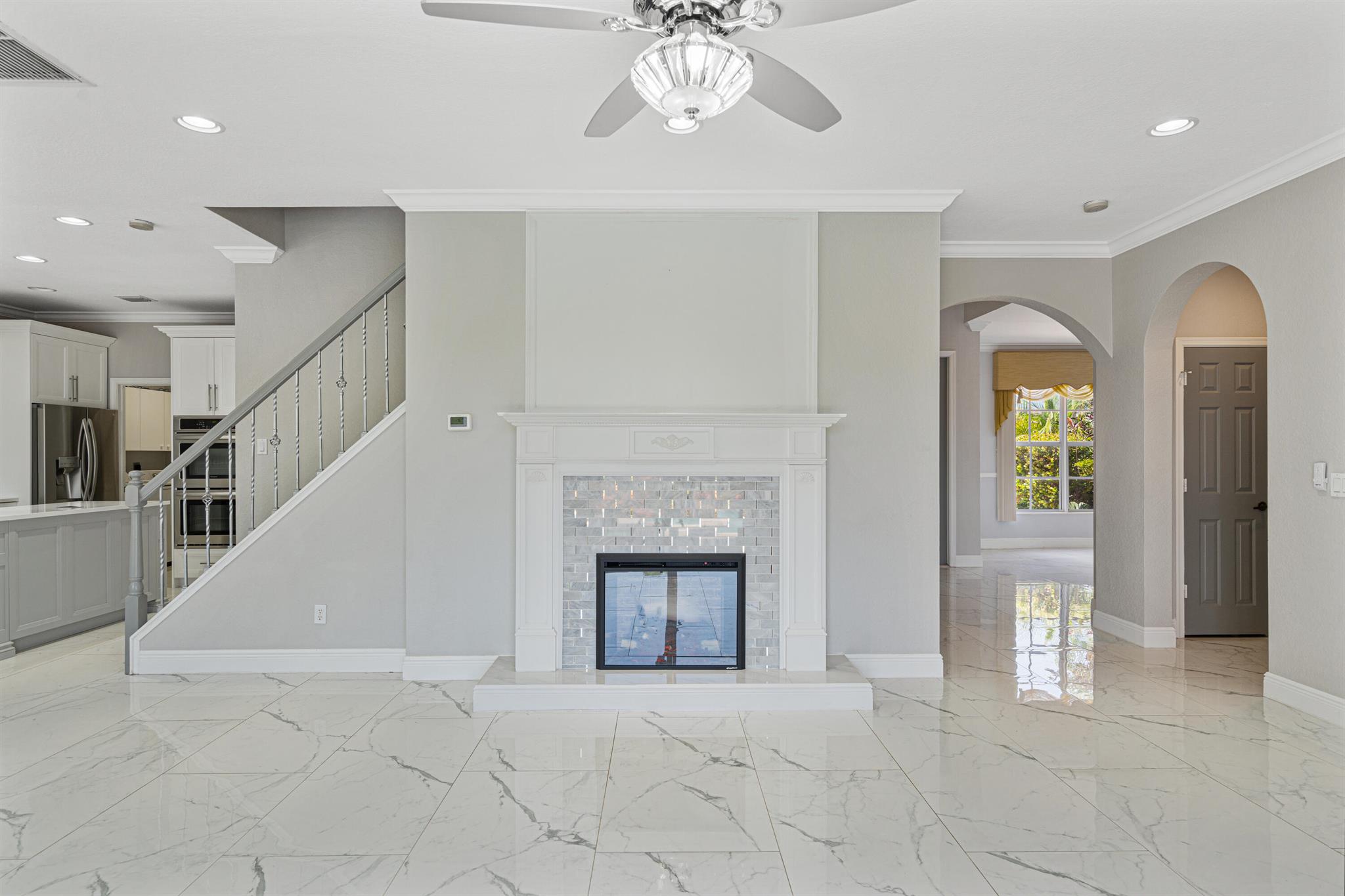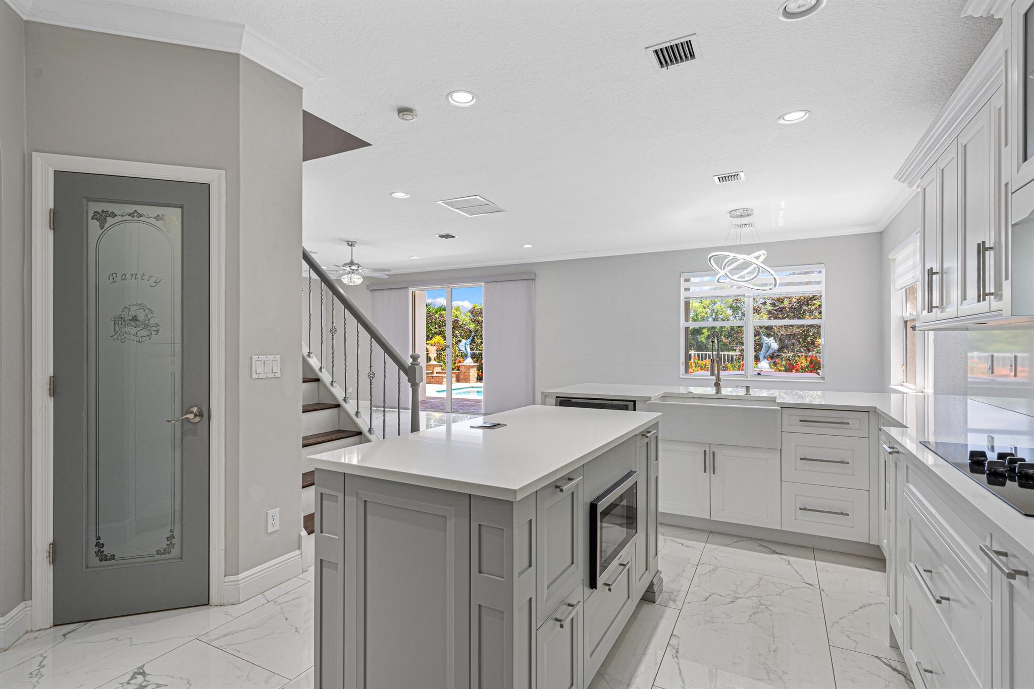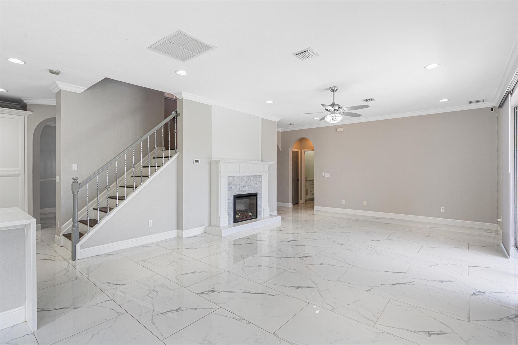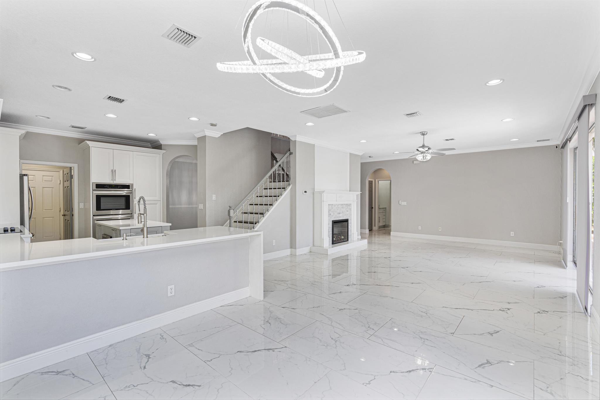 Nestled within the gated enclave of Newport Isles, this two-story, 3,516 square-foot residence will impress with extravagant lakefront and pool views. Highly renovated, the kitchen is detailed with quartz countertops, stainless appliances, gourmet wall oven and elegant touches. With a perfect layout for entertaining, you can have fireplace views while just steps out to the pool. A downstairs bedroom--ideal for guests or a home office--shares easy access to a full bathroom. Upstairs, four additional bedrooms branch from a spacious landing that incorporates a media room and loft. The primary suite features dual walk-in closets, an en-suite bath with Roman tub and separate shower, plus a private terrace framing lake views. For a list of all additional upgrades, please see attached list!
