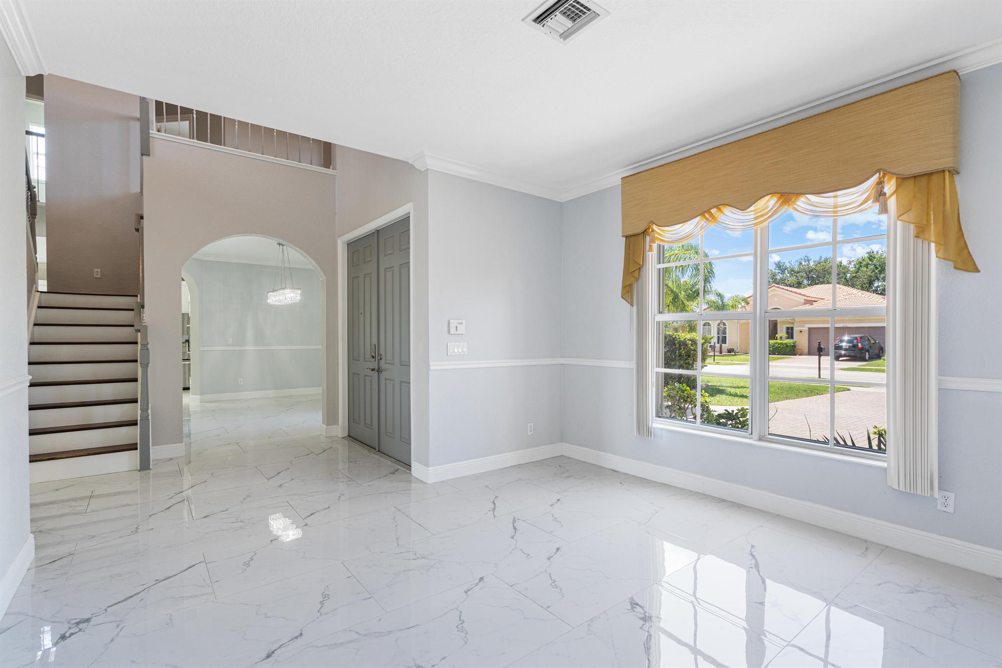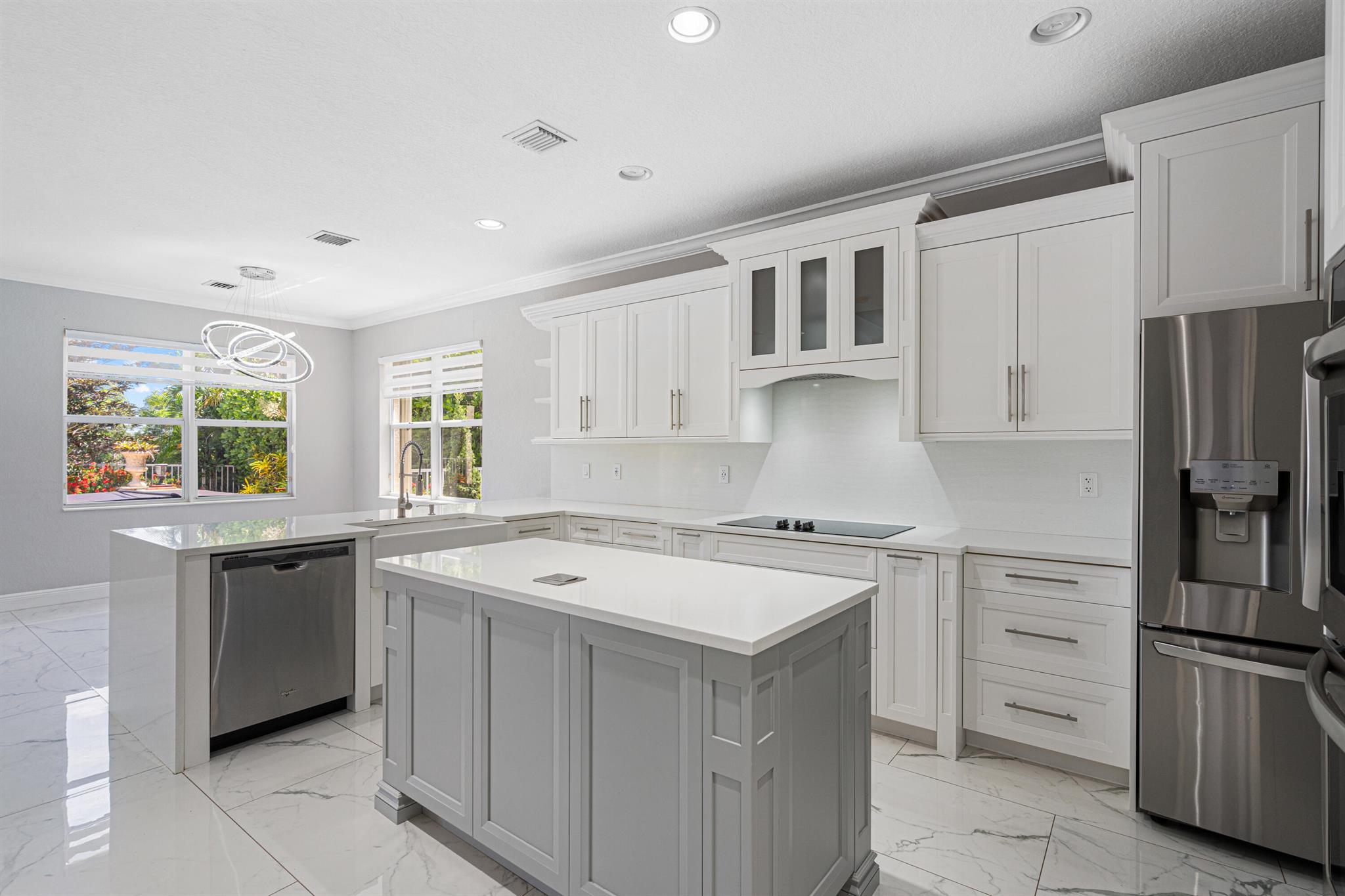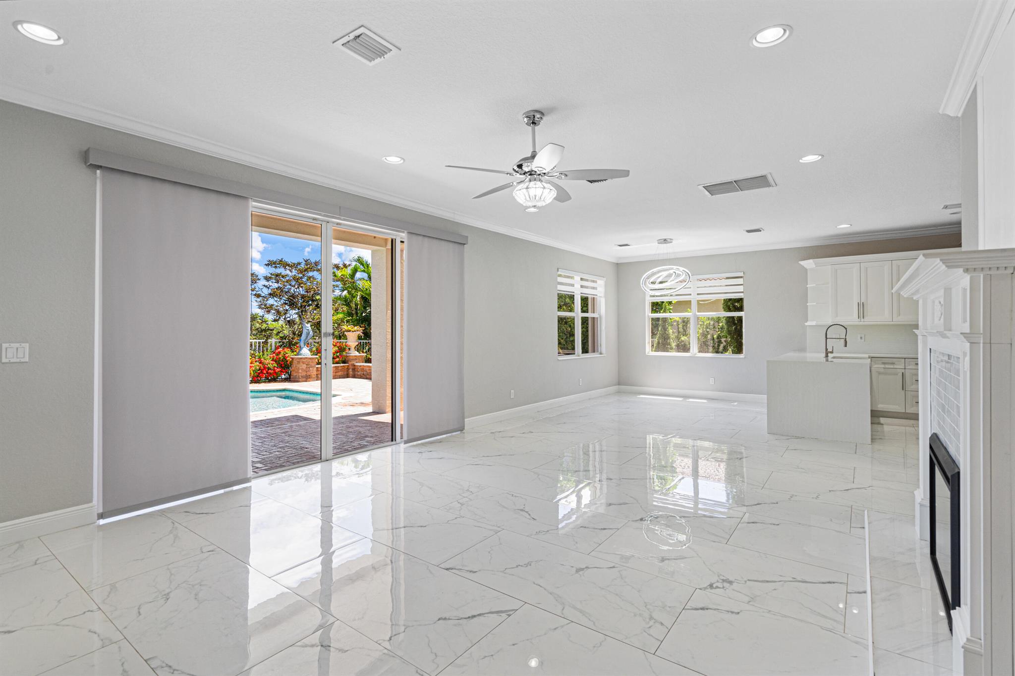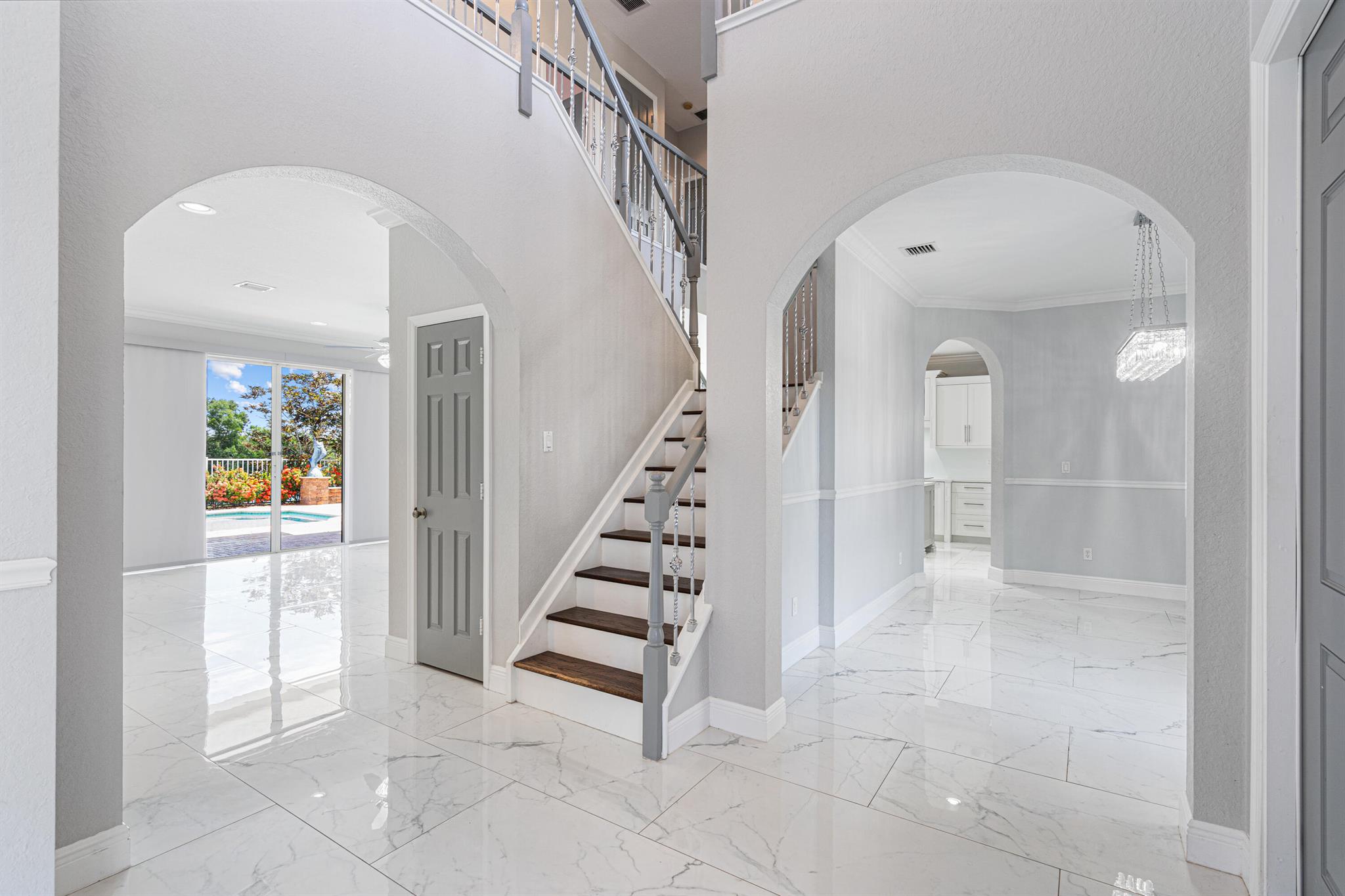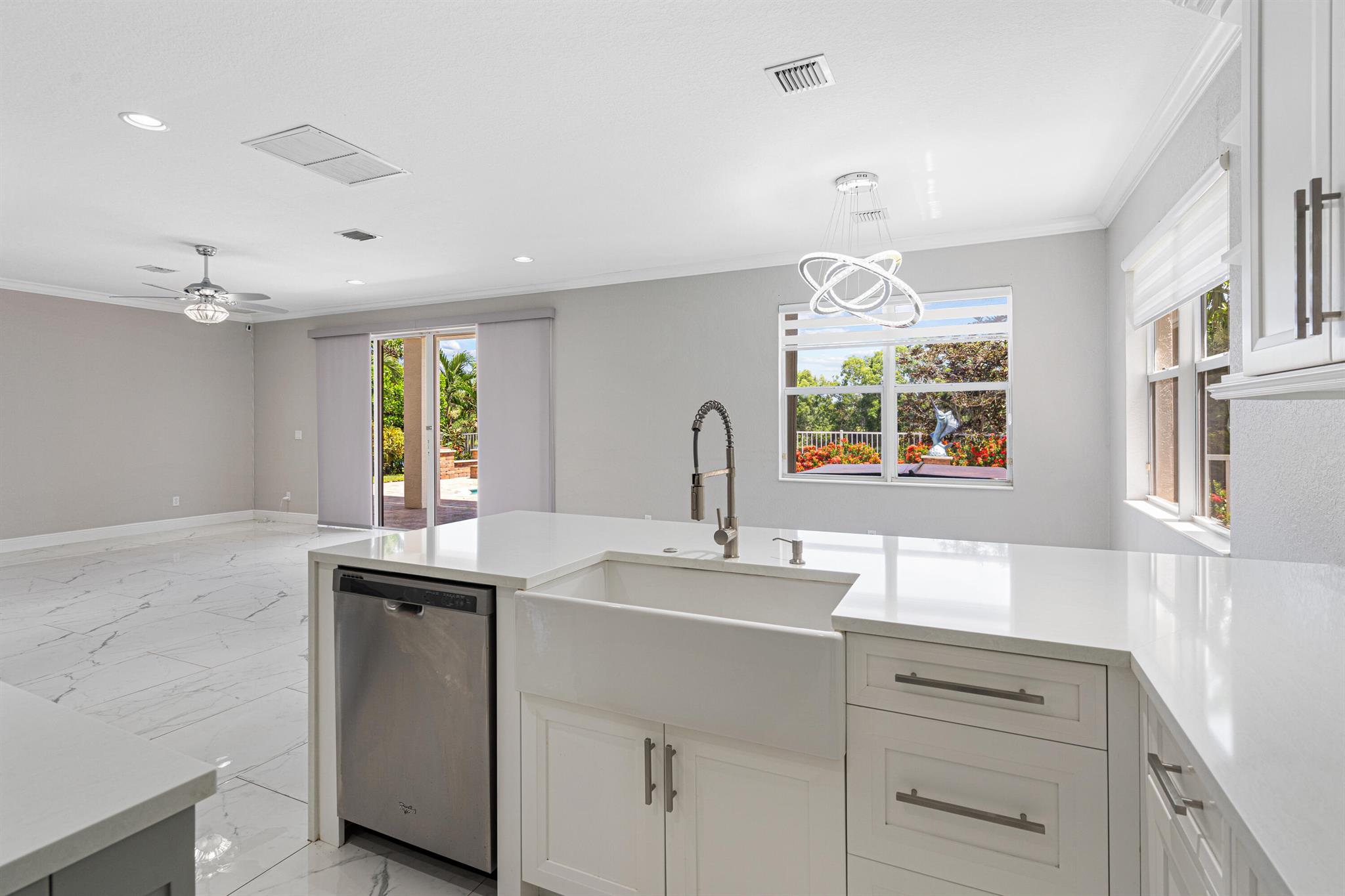 Nestled within the gated enclave of Newport Isles, this two-story, 3,516 square-foot residence will impress with extravagant lakefront and pool views. Highly renovated, the kitchen is detailed with quartz countertops, stainless appliances, gourmet wall oven and elegant touches. With a perfect layout for entertaining, you can have fireplace views while just steps out to the pool. A downstairs bedroom--ideal for guests or a home office--shares easy access to a full bathroom. Upstairs, four additional bedrooms branch from a spacious landing that incorporates a media room and loft. The primary suite features dual walk-in closets, an en-suite bath with Roman tub and separate shower, plus a private terrace framing lake views. For a list of all additional upgrades, please see attached list!