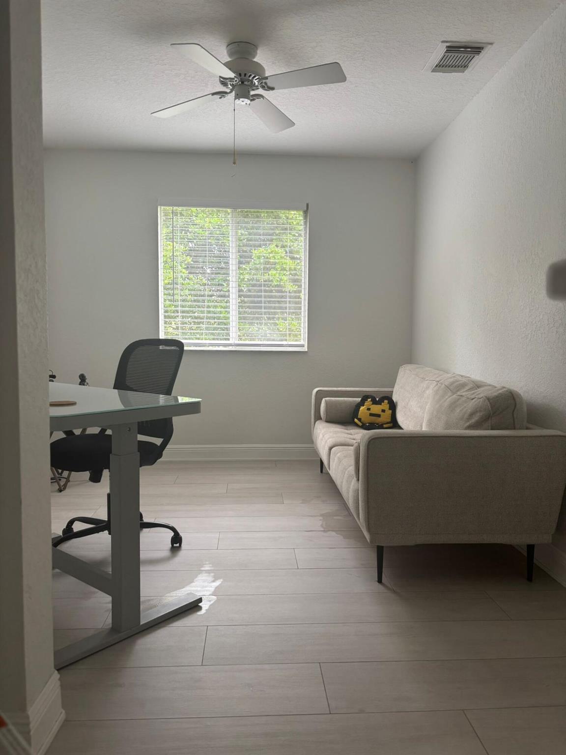 This spacious 3-bedroom, 2.5-bath corner-unit townhome with a Den and 1-car garage is nestled on a quiet cul-de-sac in the desirable gated community of San Savino. Enjoy added privacy with no neighbors behind or on one side, and a large private yard--perfect for relaxing or entertaining.Step inside to a light-filled, open floor plan featuring a generously sized eat-in kitchen. Tile flooring runs throughout the downstairs living area, which also includes a convenient half bath for guests. The screened-in back patio offers the ideal space for morning coffee or evening grilling.Upstairs, you'll find three bedrooms plus a versatile loft--great for a home office, playroom, or extra living space.