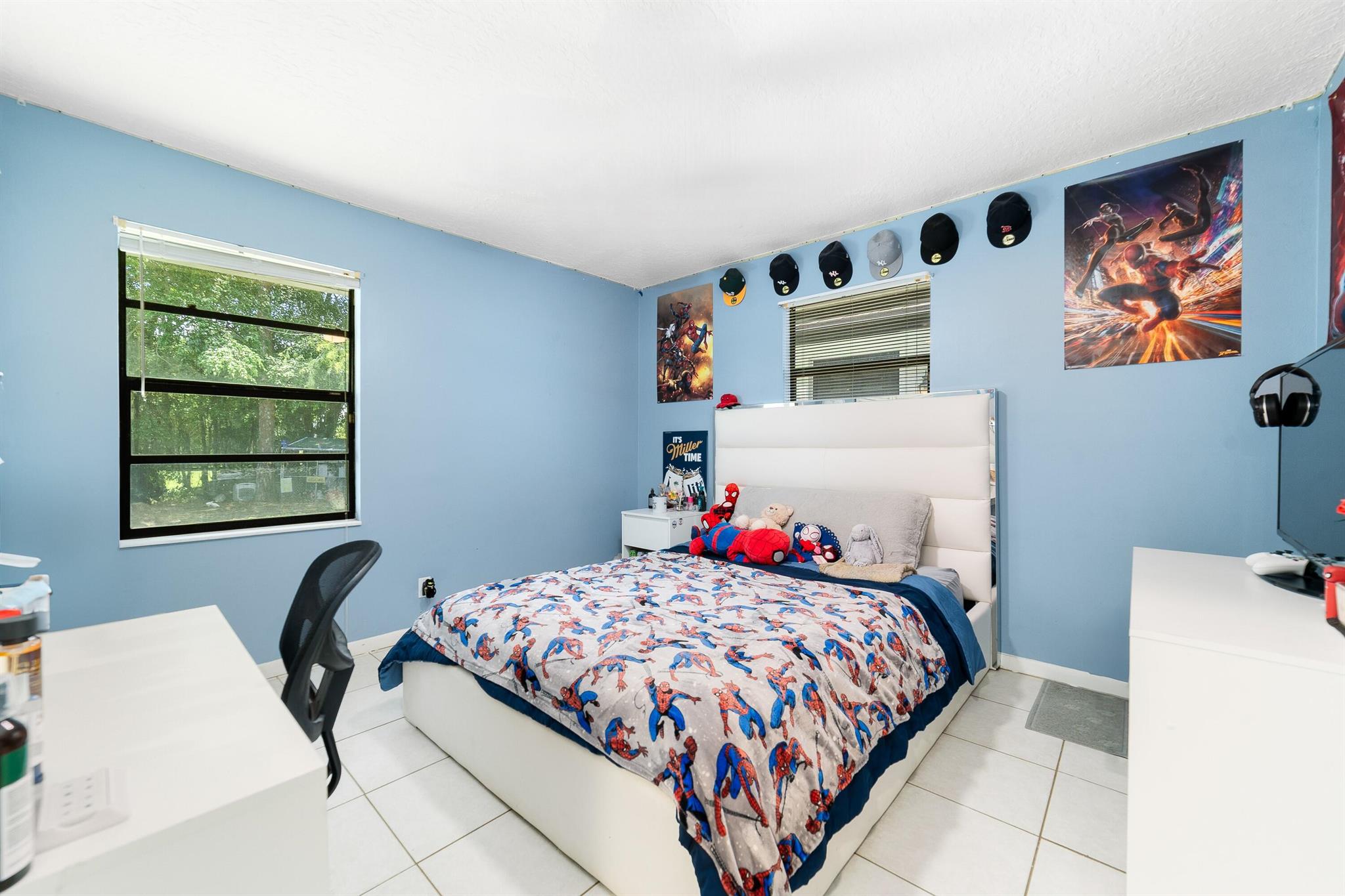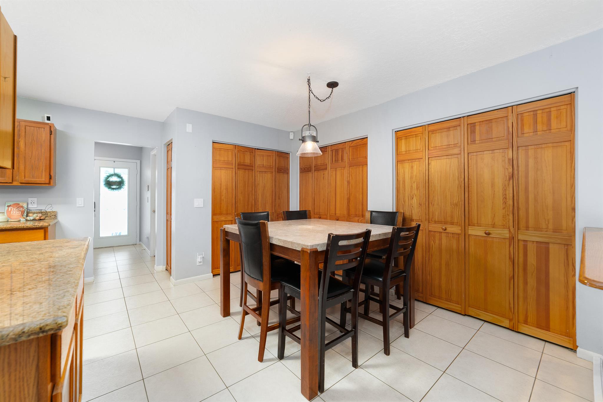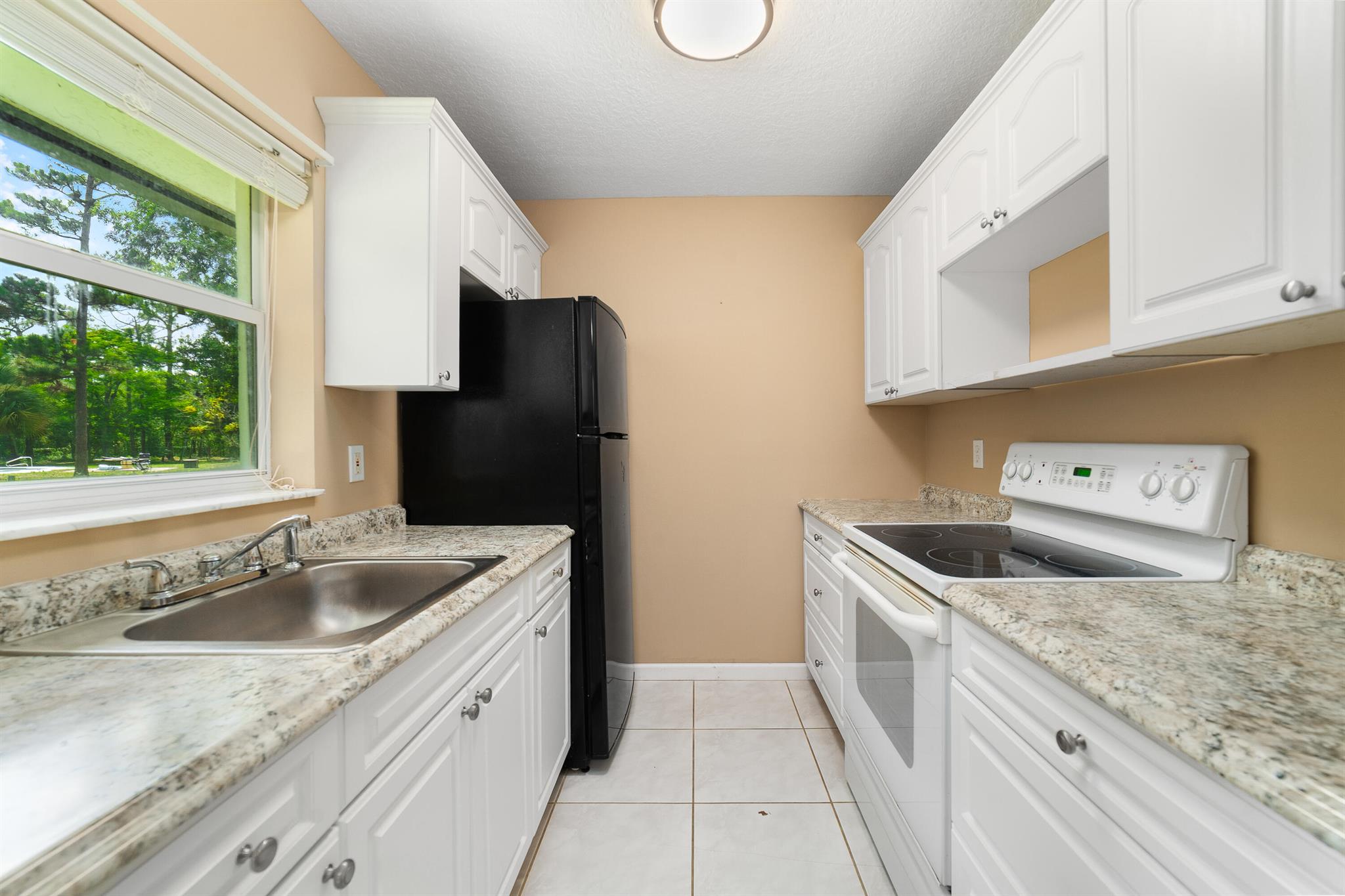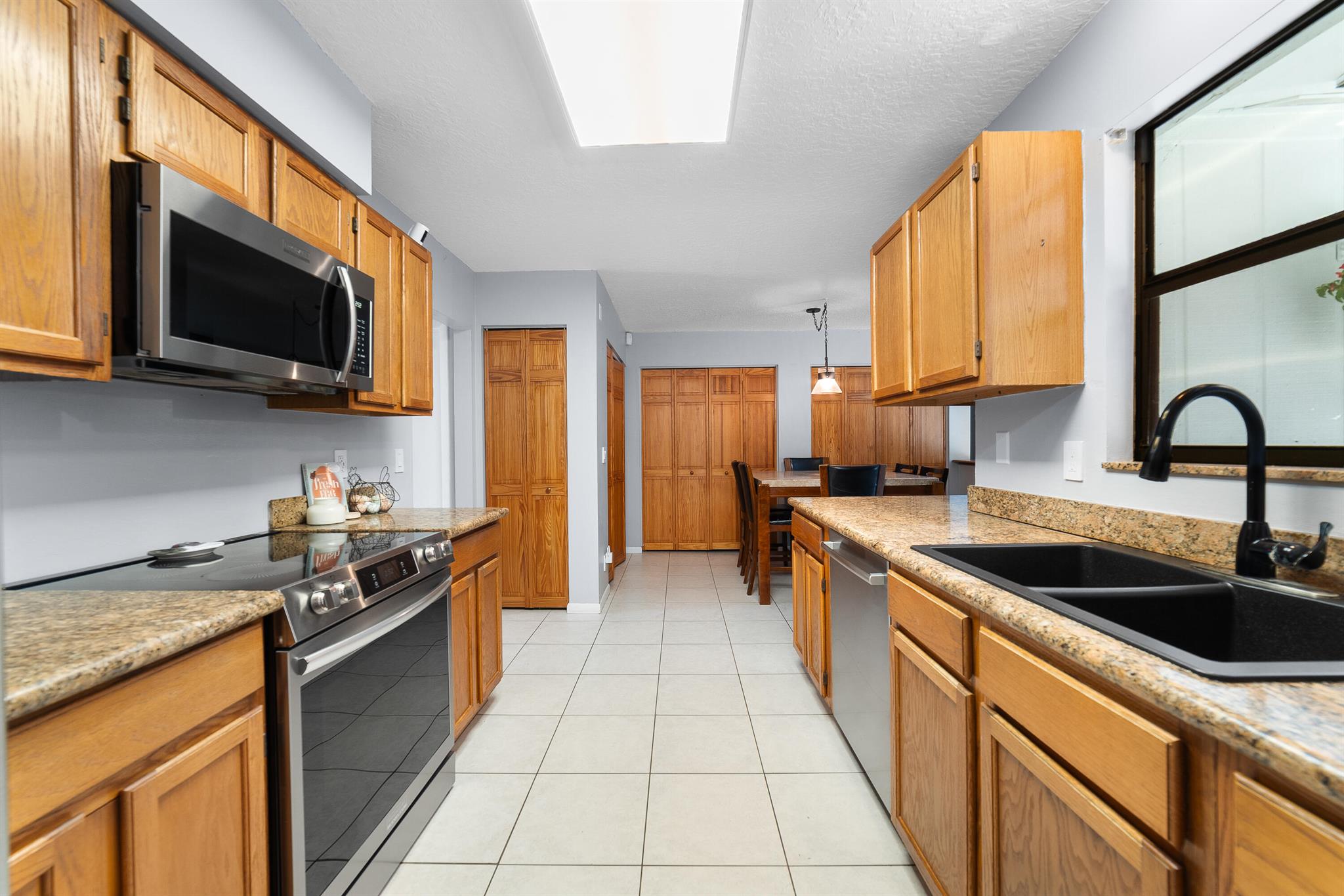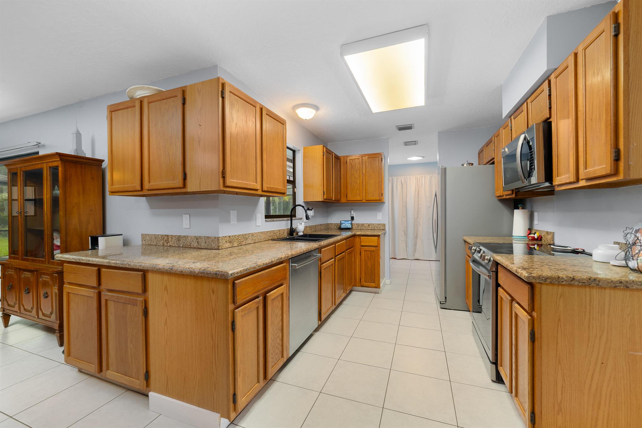 Welcome to this spacious one-level residence offering comfort, privacy, and flexibility on 1.54 acres. The main home offers 3 bedrooms and 2 baths, while the detached guest home includes 1 bedroom and 1 bath. The main home features tile flooring throughout, a welcoming stone fireplace, and abundant storage. The kitchen is equipped with a new stove and microwave (2023), and the washer and dryer were replaced in 2024. The home also includes complete hurricane shutters, whole-house window tinting (2021), and a main A/C unit and ductwork replacement (July 2024) on the south side, ensuring peace of mind and year-round comfort. The property's exterior is just as impressive, featuring a screened pool with an extended pressed concrete deck, rescreened in 2021, and a pool pump replaced in 2020.