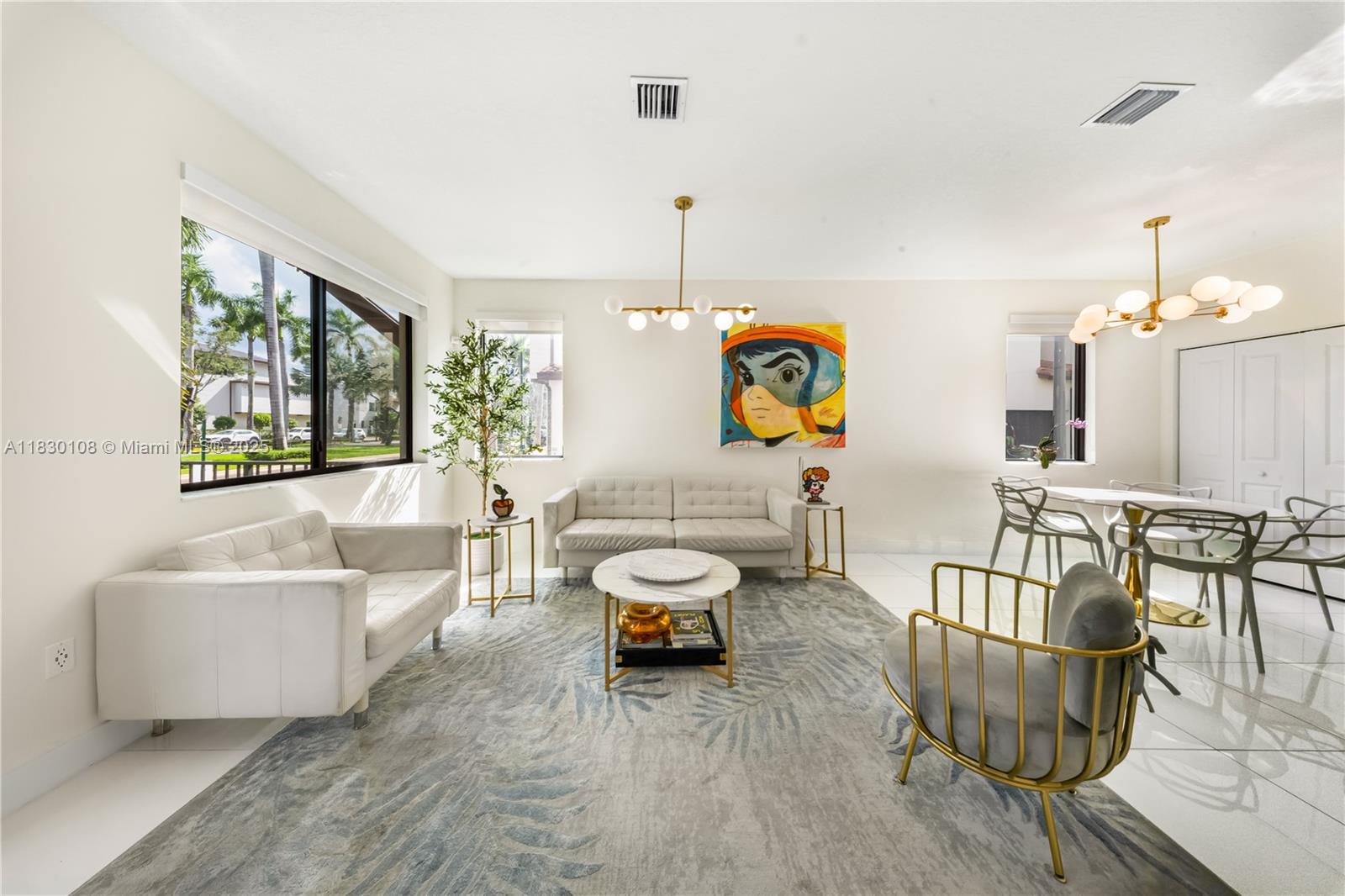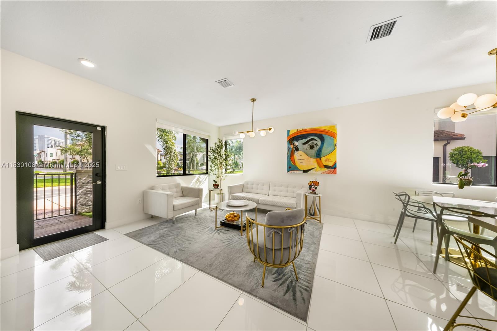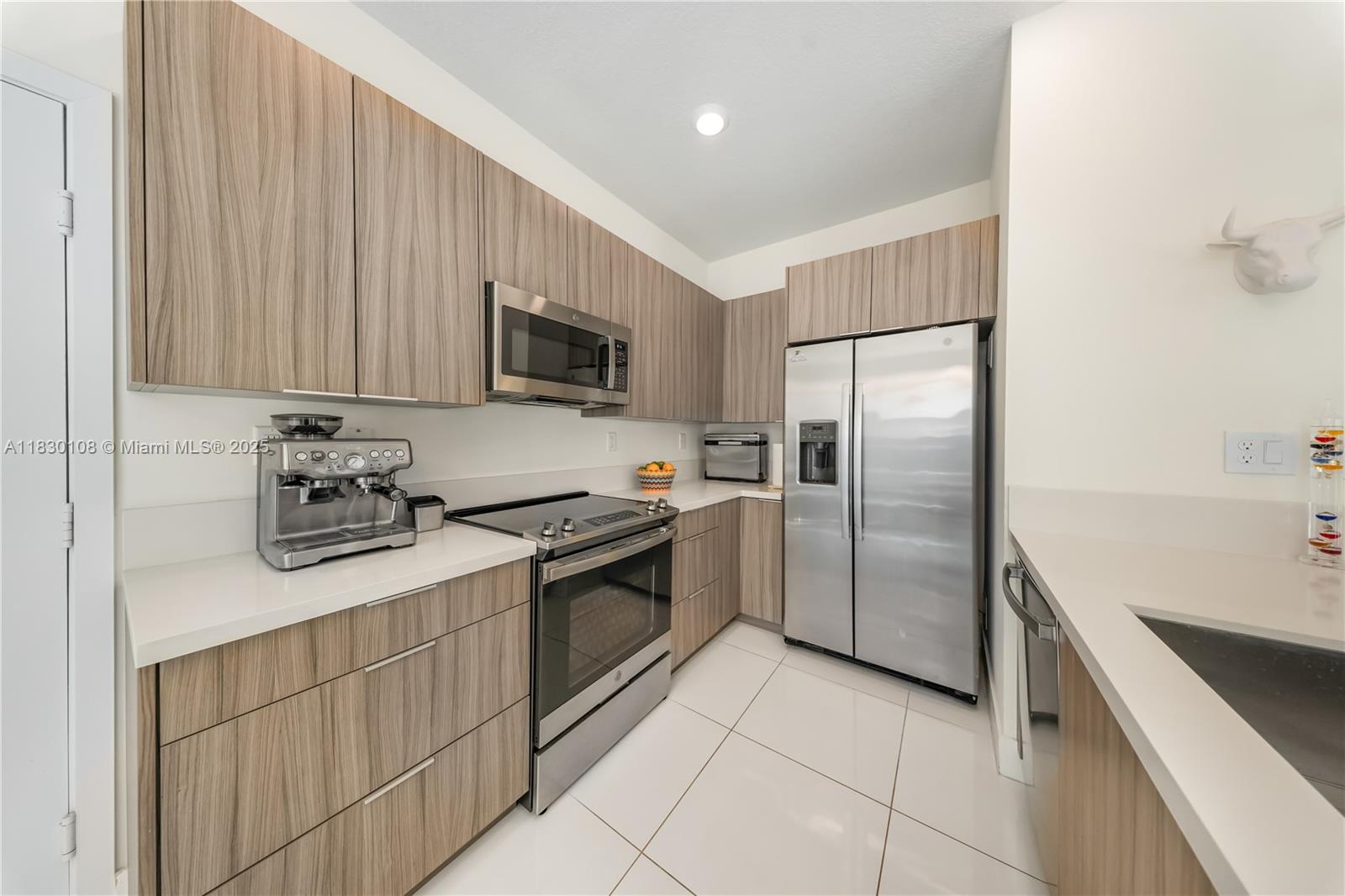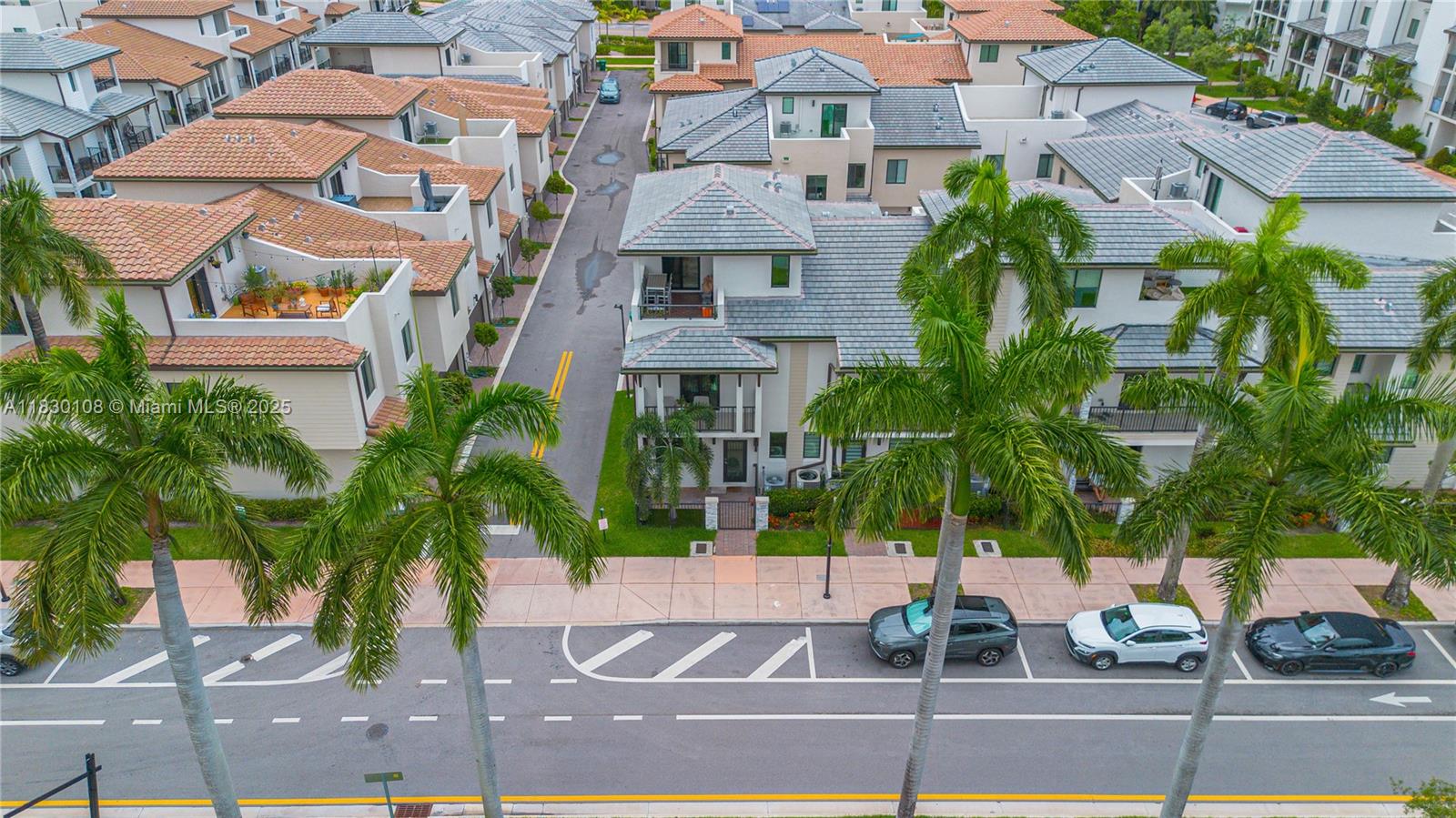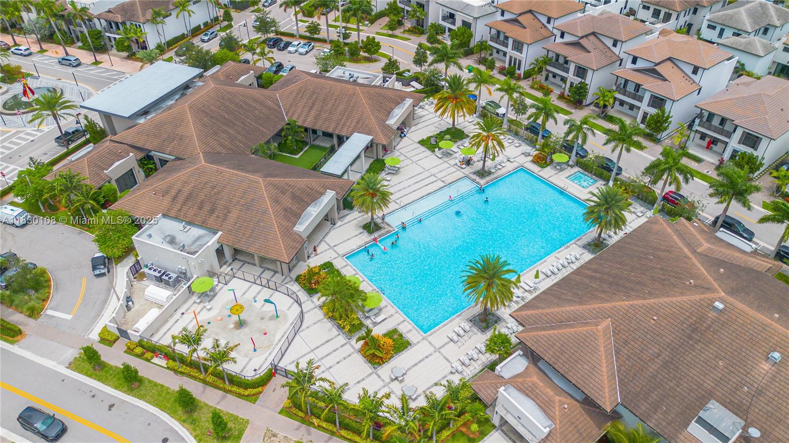 Welcome to this stunning 3-story townhouse in the heart of Doral, perfectly located across from Central Park! Featuring 3 spacious bedrooms, 2 full baths & 2 half baths, this smart home sits on a premium corner lot with a 2-car garage. Enjoy custom kitchen cabinets, fully wired alarm system, fans in every bedroom, 2 A/C units, tankless water heaters and WiFI extenders on every floor for seamless connectivity. The 3rd floor skyview terrace includes a stainless steel kitchen, cozy sitting area and lake view ideal for entertaining or relaxing. Residents enjoy resort-style amenities: Pool, BBQ area, clubhouse, game room, splash park, fitness center, indoor track and basketball courts. Steps from downtown Doral, schools, parks and entertainment, this home offers a vibrant, walkable lifestyle.