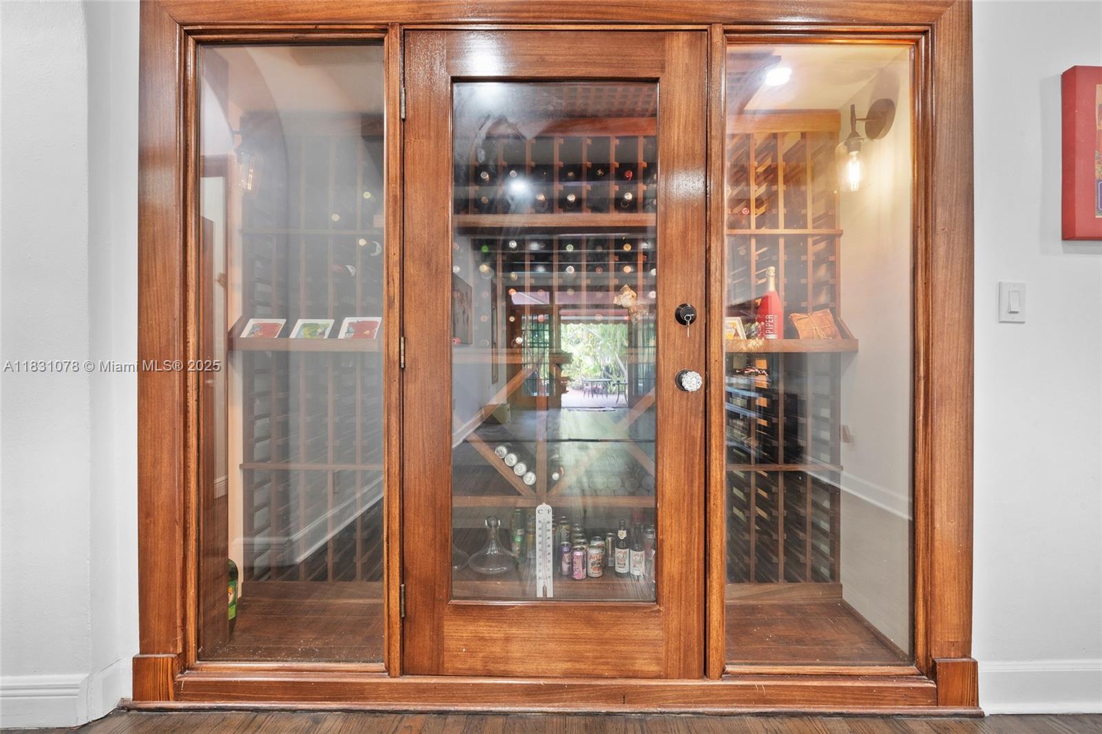 Charming gated Spanish villa, situated on a historic tree-lined street in Coral Gables. Tastefully remodeled, while maintaining original charm. 4/3 including detached house. Estimated 3300 Sf.Ft under air. Oversized lot 11,250 Sf. Ft. Hurricane impact windows & doors, dark oak flooring, updated kitchen, newer flat roof, new master bathroom, fireplace, library, custom wine cellar. In-ground pool, surrounded by beautiful mature trees. Detached large private guest house 1/1, with private entrance, kitchenette & living room. Oversized driveway & 2 car climate controlled garage, ensuring ample parking spaces. Walking distance to Granada Golf course, blocks from Biltmore Hotel, Downtown Coral Gables. Sq.ft larger than tax roll, as per attached layout, buyer(s) to independelty very actual sf.ft.