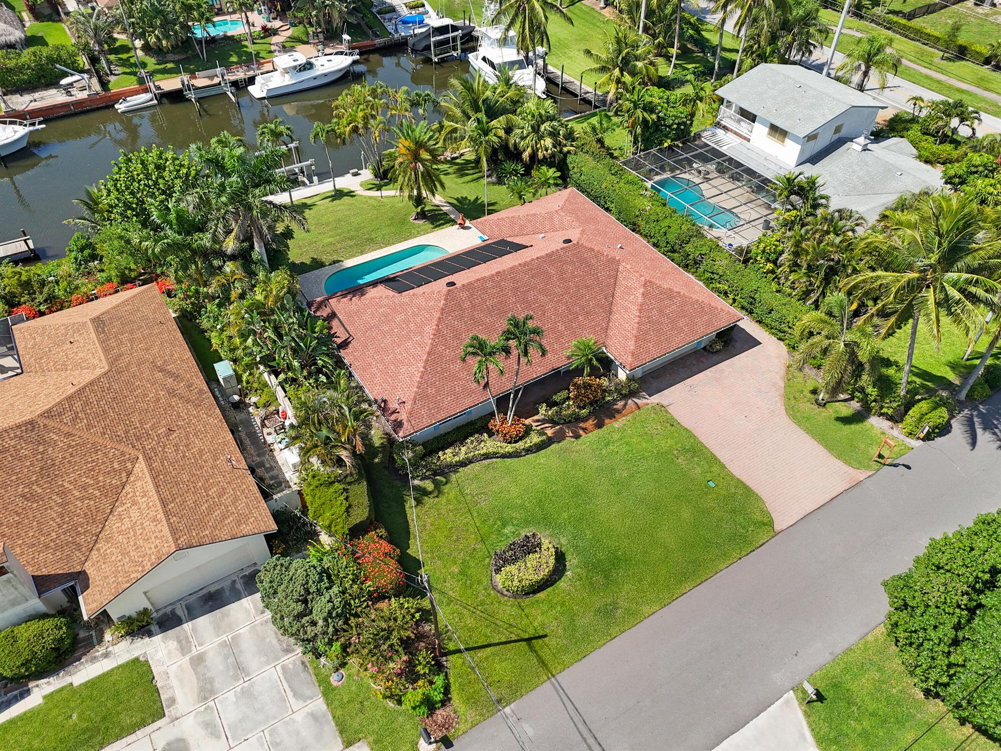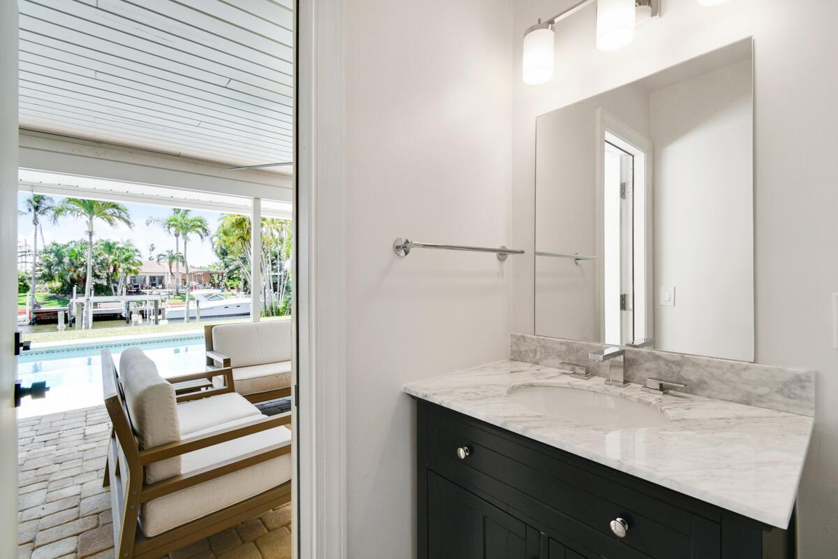 Coastal Waterfront Retreat with Southern Exposure. Welcome to this beautifully renovated coastal-style waterfront home offering the ultimate South Florida lifestyle. Situated on a spacious .32-acre lot with 100 feet of waterfront and no fixed bridges, this boater's paradise includes a 14,000 lb boat lift, seawall, and direct ocean access. Enjoy sun all day with prime southern exposure, perfect for relaxing poolside or entertaining in the expansive covered outdoor living space. The fenced backyard features a sparkling pool and lush, manicured landscaping for added privacy and charm. Inside, the light and bright open floor plan features volume shiplap ceilings, split bedroom layout, and impact windows throughout.