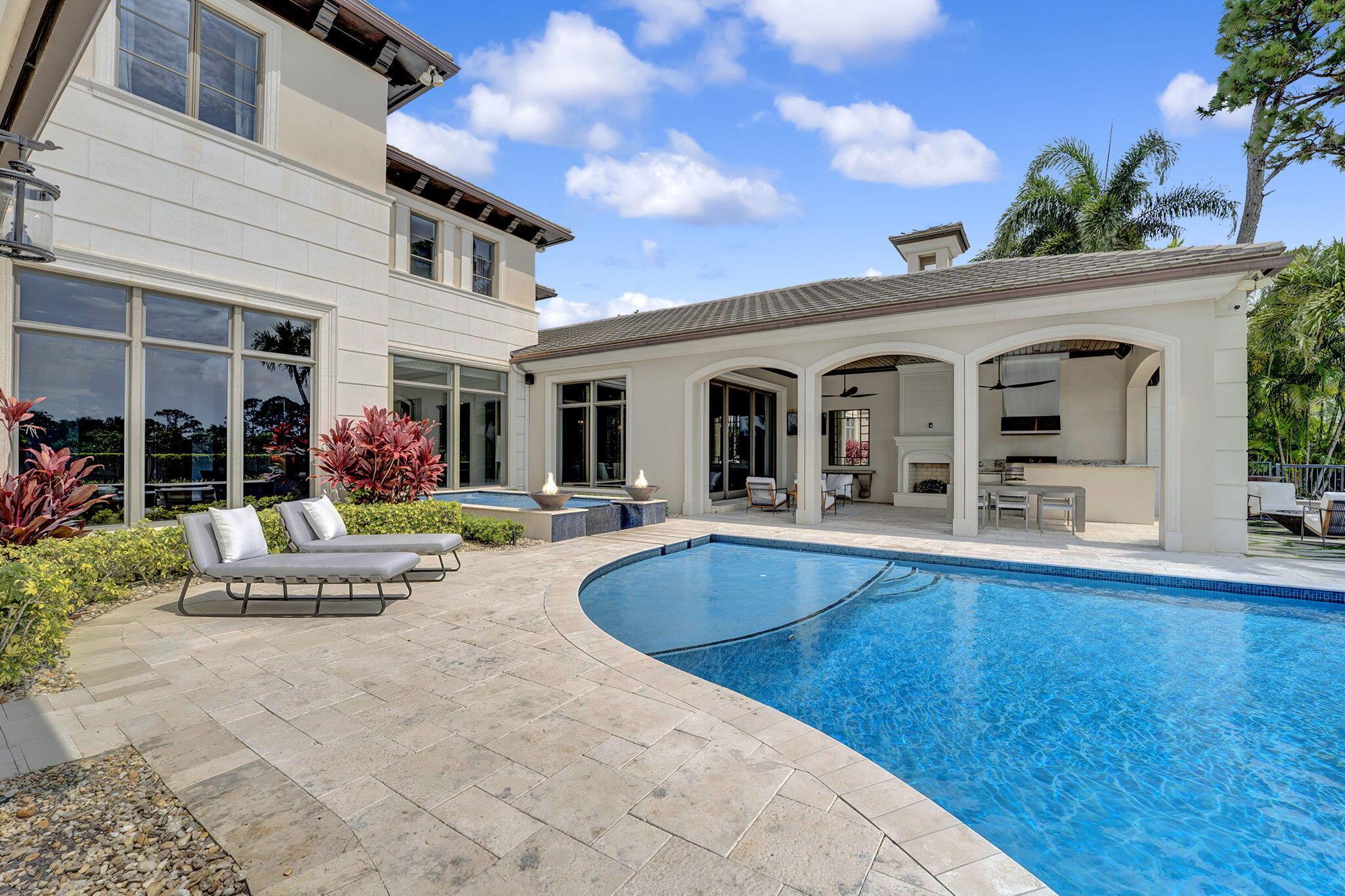Welcome to a rare offering in Old Palm Golf Club. This exquisite custom residence blends timeless architecture with modern elegance & a rarely available unobstructed golf view with total privacy. This magnificent residence is equipped with a gourmet chef's kitchen, custom walnut cabinetry & double islands, formal dining room, wine room, office, club room/gym, elevator, primary suite with spa inspired his/her bathrooms, & large walk in closets. Plenty of storage in the climate controlled 4.5 car garage with lifts. Second floor spacious en-suite bedrooms with walk in closets. Resort-style outdoor living area with covered patio & phantom screens, salt water pool, & summer kitchen. Enjoy luxury living & a lifestyle defined by sophistication & privacy. This is golf course living, re-imagined.