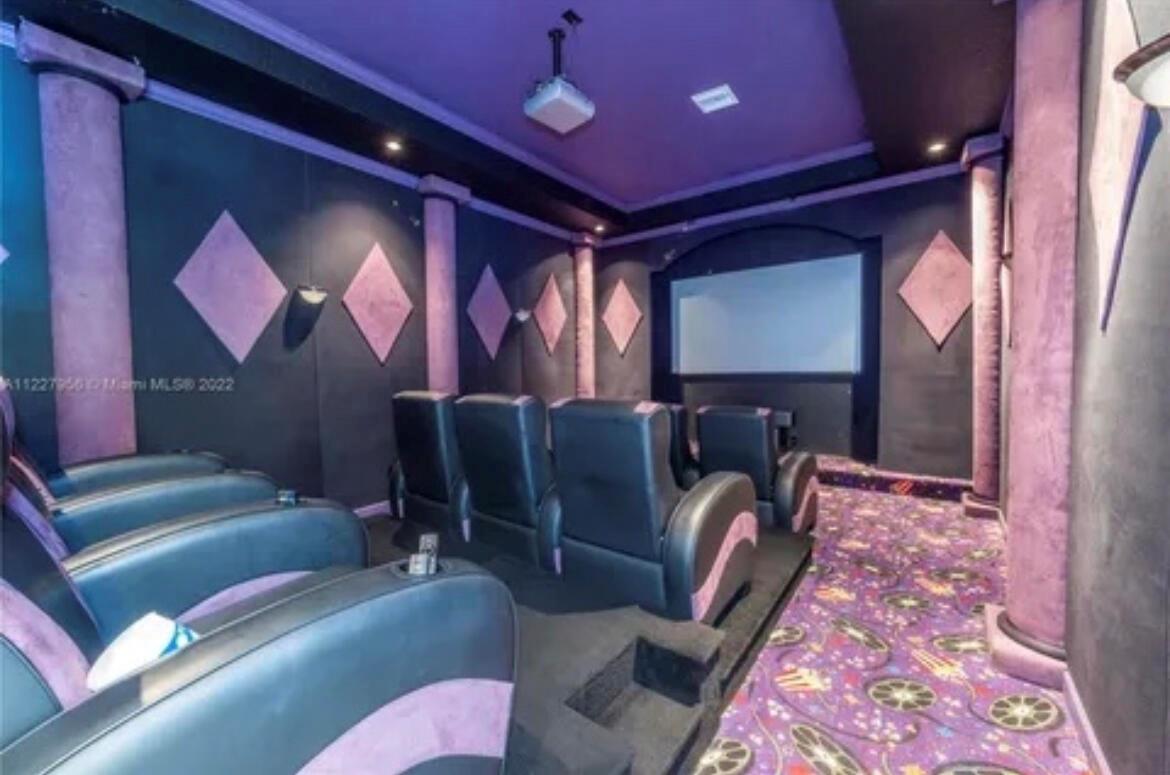 Welcome to this stunning luxury home! This home offers 5 spacious bedrooms and 4 tastefully designed bathrooms. Step inside to find luxurious marble floors that flow seamlessly throughout. The custom kitchen is a chef's dream, featuring granite countertops, stainless steel appliances and a stainless steel sink with a convenient bar area. For your entertainment needs, the home has a luxurious movie theater with signature reclining seating and a large movie screen. The impact glass windows provide both comfort and security. Step out into the backyard and be greeted by an inviting pool with a heated spa, perfect for relaxing or hosting gatherings. Enjoy the ultimate outdoor experience with a full Basketball court. The home also has a double car garage, and plenty of room for more parking.