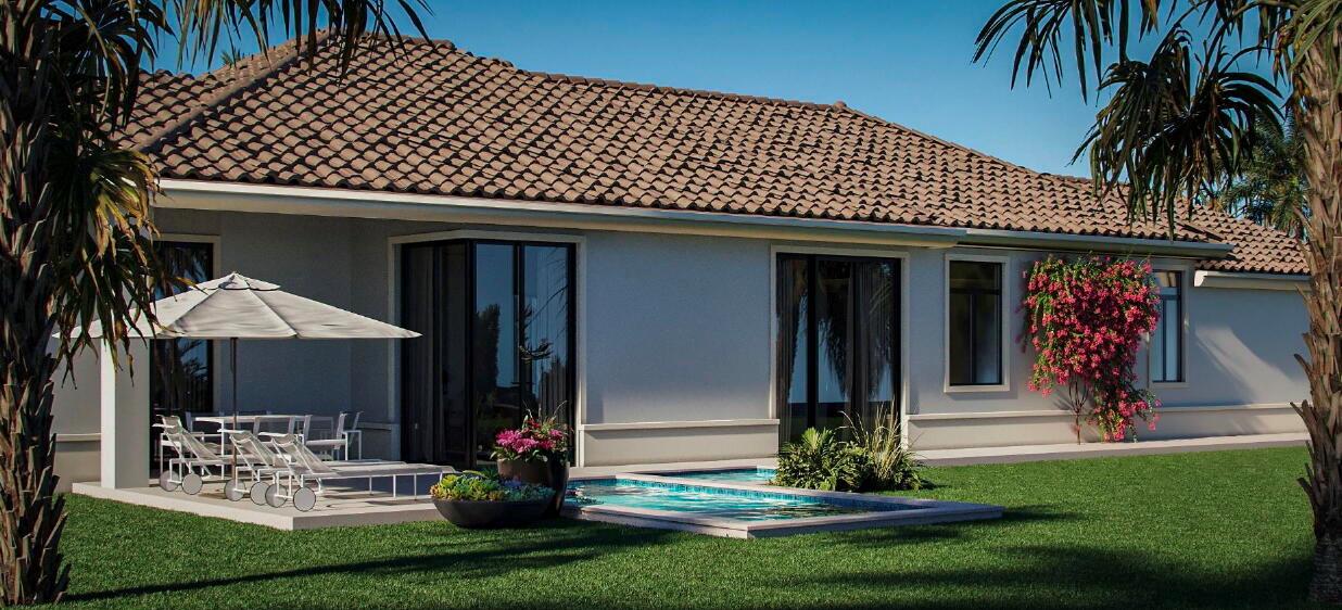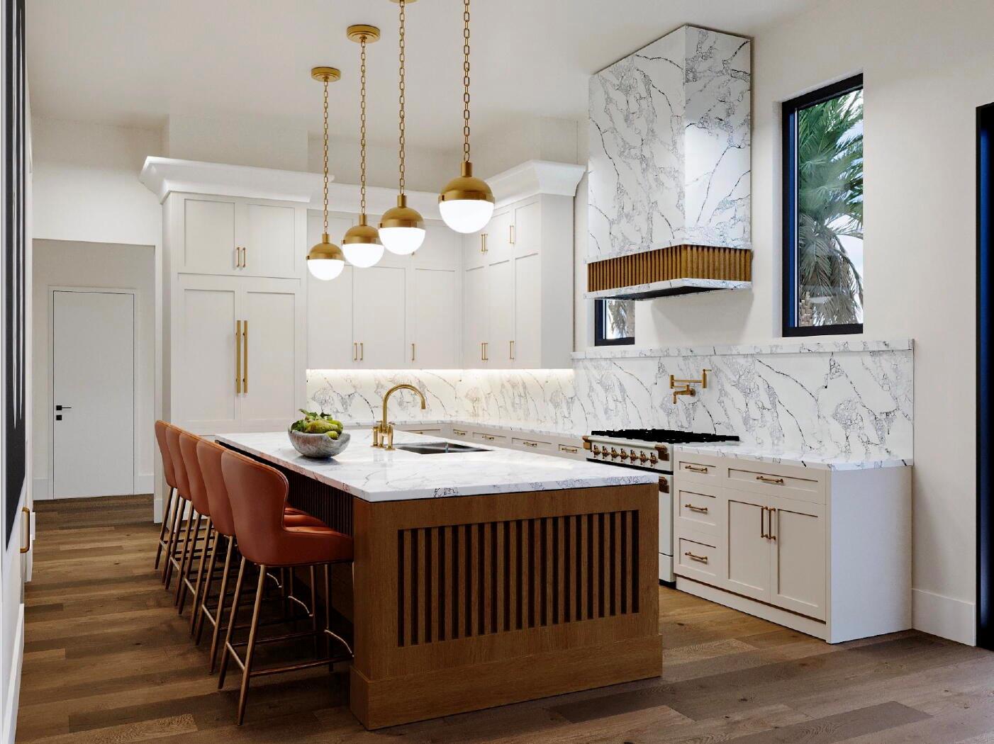 Experience effortless elegance in this brand-new construction 4-bedroom, 3-bathroom home in the coveted Eagles Landing of Palm Beach Polo. Designed with a modern aesthetic and warm natural tones, this single-story residence offers a bright, open layout with high-end finishes throughout. The gourmet kitchen features marble countertops, custom cabinetry, and brass fixtures, opening to a spacious living area ideal for entertaining. The primary suite includes a coffered ceiling, spa-inspired bath with soaking tub, and custom closets. The fourth bedroom is currently styled as a home office, providing versatility for any lifestyle. Outside, enjoy a covered patio, lush landscaping, and a private plunge pool--perfect for relaxing in the Florida sun.
