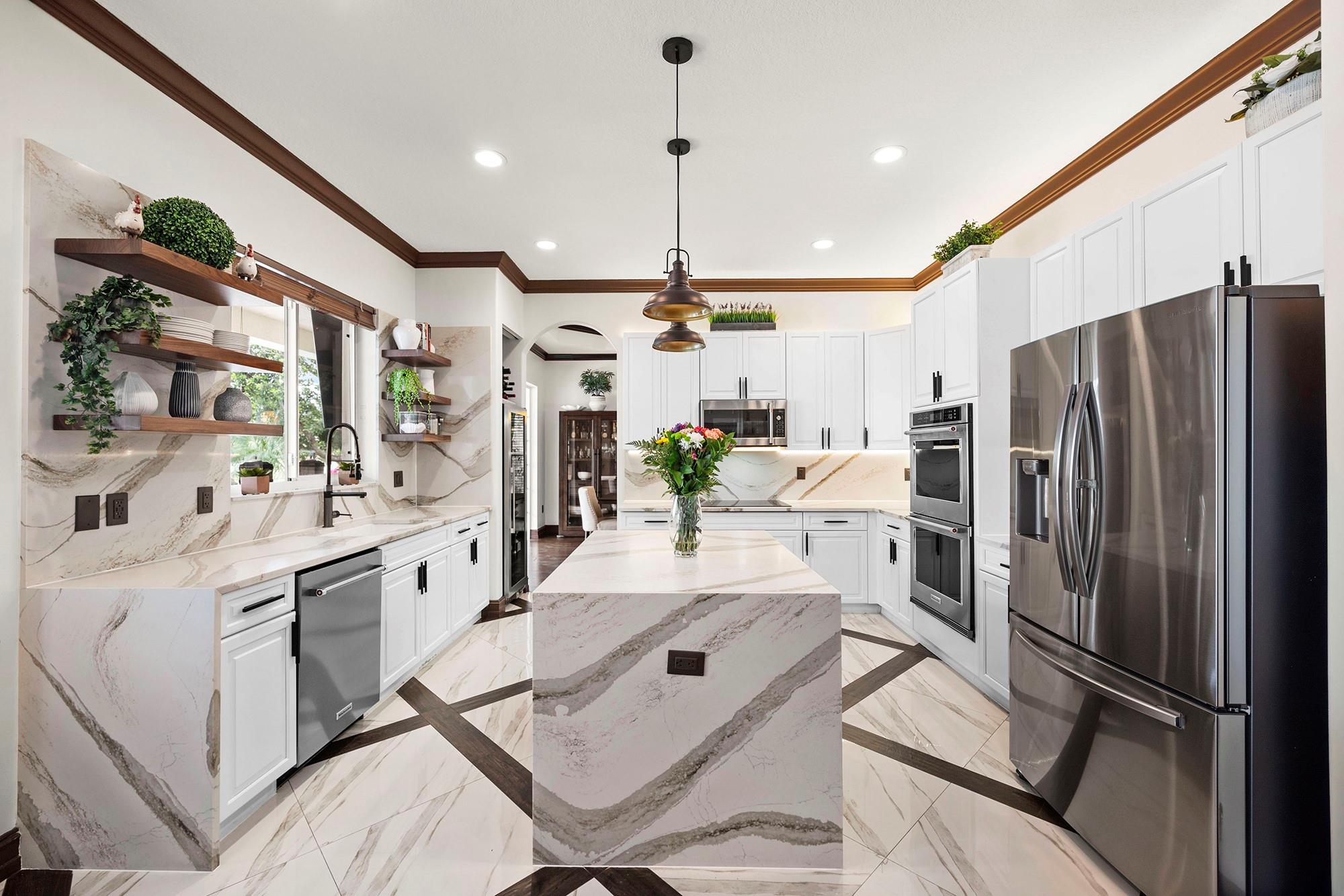 Opportunity knocks!! Priced UNDER Appraised value! Exquisite Estate offers breathtaking lake views! Elegance abounds-hardwood floors, gourmet island kitchen with new Cambria Quartz counters and appliances. Entertainers dream, enjoy gathering in the beautiful family room overlooking the tranquil pool area. The luxurious primary suite offers custom-designed walk in closets, while all three bathrooms have been completely renovated with designer finishes. New heated saltwater pool & spa, fully controlled via the iAquaLink app. Covered patio boasts ceiling fans and TV mount, perfect for entertaining. Upgraded ACs, EV charger, built-in garage storage, LED lighting. Sunset Lakes features resort-style amenities, including a clubhouse, fitness center, and tennis courts. Don’t miss this dream home!