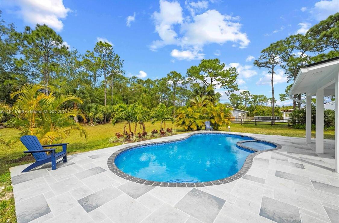 *MOTIVATED SELLERS* Welcome to this fully renovated oasis in the heart of Jupiter Farms! Nestled on 1.35 acres, this stunning 5-bedroom, 2 1/2 bath pool home with a 2-car garage has been completely transformed with upgrades from top to bottom! Everything is NEW--including the Roof(2023), two A/C units (2024), and full-impact windows and doors. Step into the beautifully redesigned modern home with an abundance of natural light. Featuring new wood-style flooring, new baseboards, fresh paint, and custom lighting throughout the home. The kitchen is a dream with white shaker cabinets, gleaming quartz countertops, stainless steel appliances, and reverse osmosis drinking water from the brand-new water filtration system.