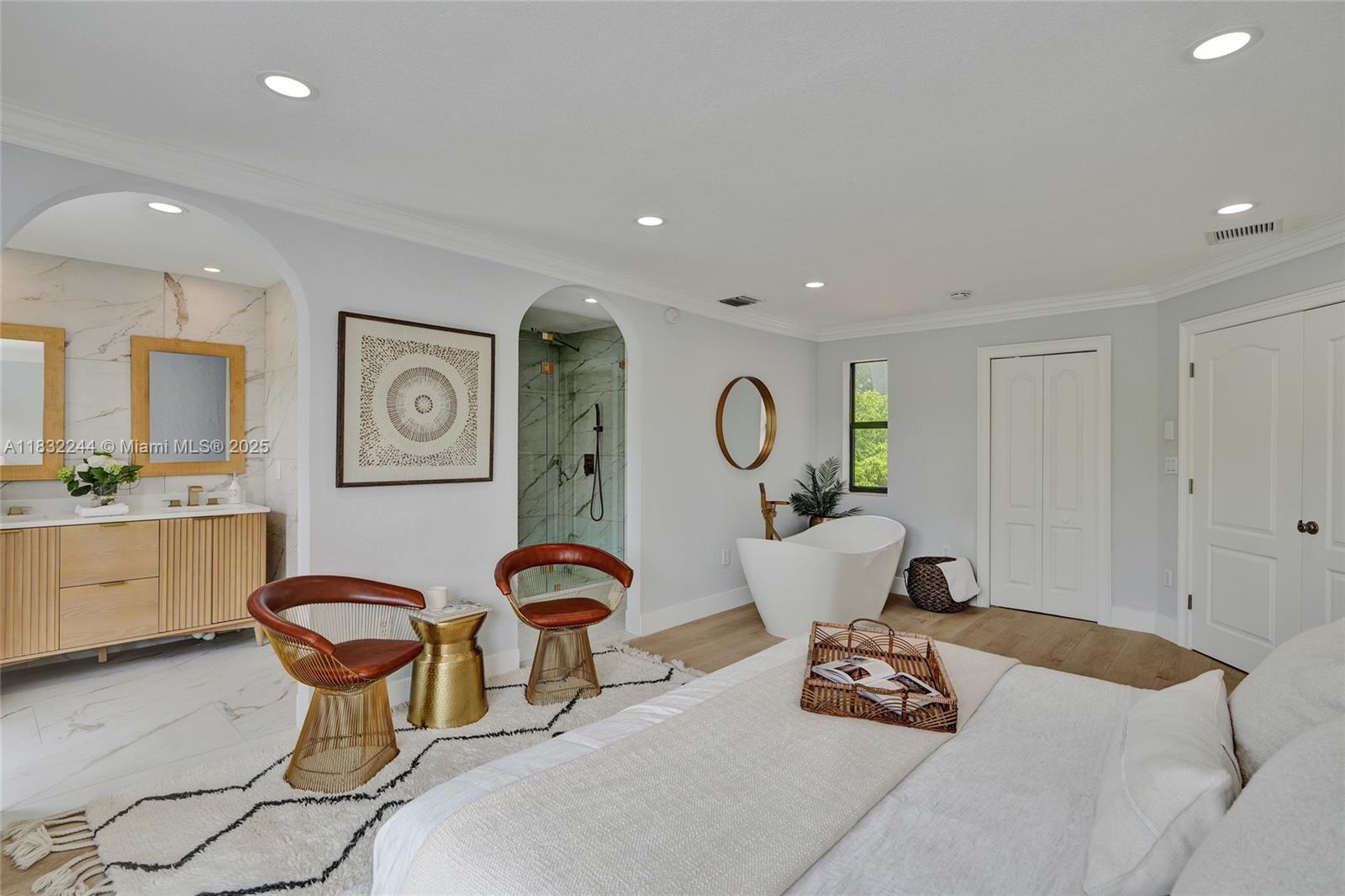 Beautifully designed and completely renovated 4BD/3BA two-story home located on Normandy Isles in Miami Beach! This turnkey residence features soaring ceilings, new appliances, built-in closets, and elegant finishes throughout. The spacious layout includes a private upstairs primary suite with its own terrace, perfect for relaxing outdoors. Enjoy the convenience of a true garage and oversized driveway that fits 4+ cars. Ideally situated just blocks from the ocean, Normandy Shores Golf Course, top restaurants, and local shops. NO HOA!