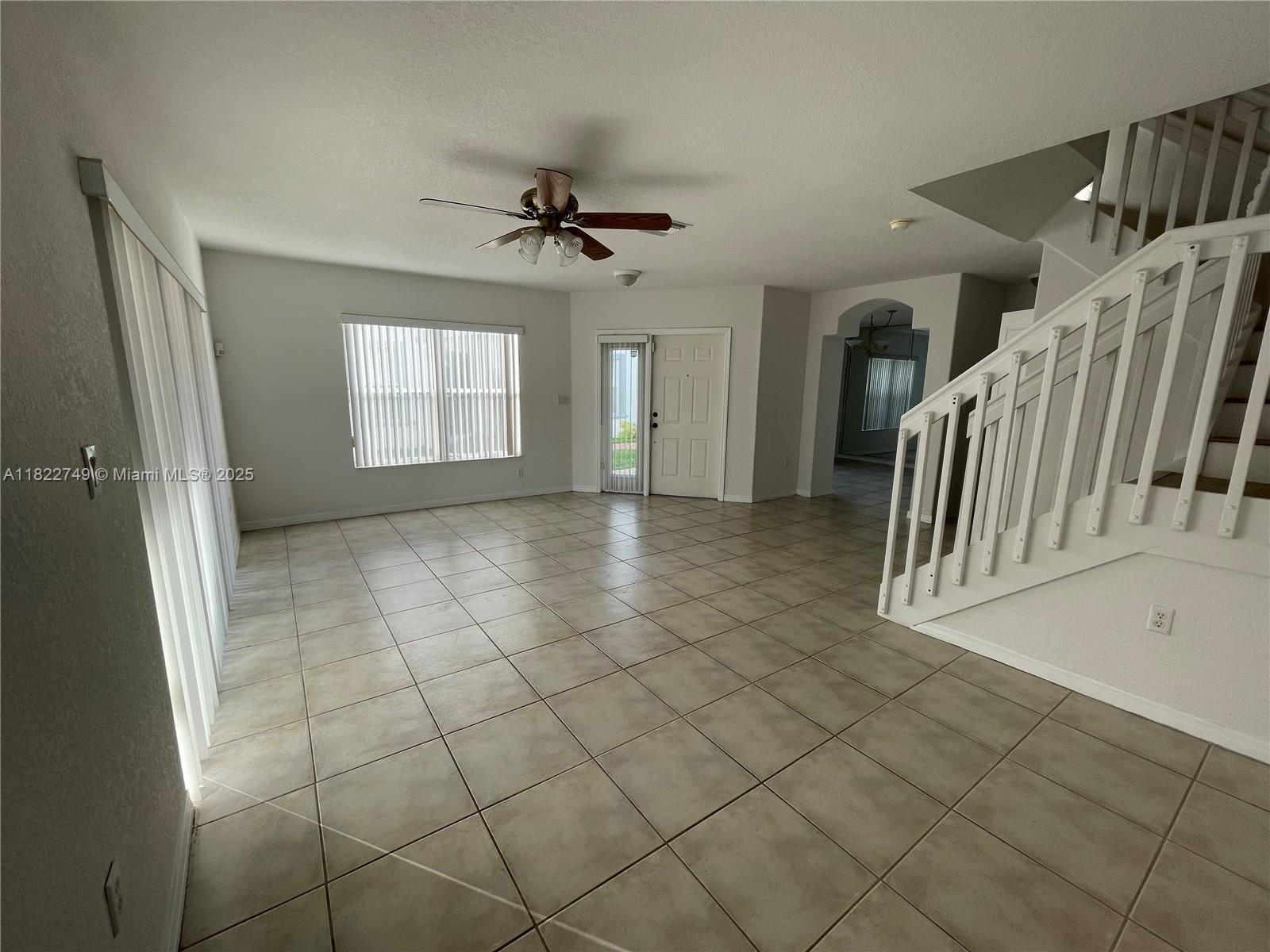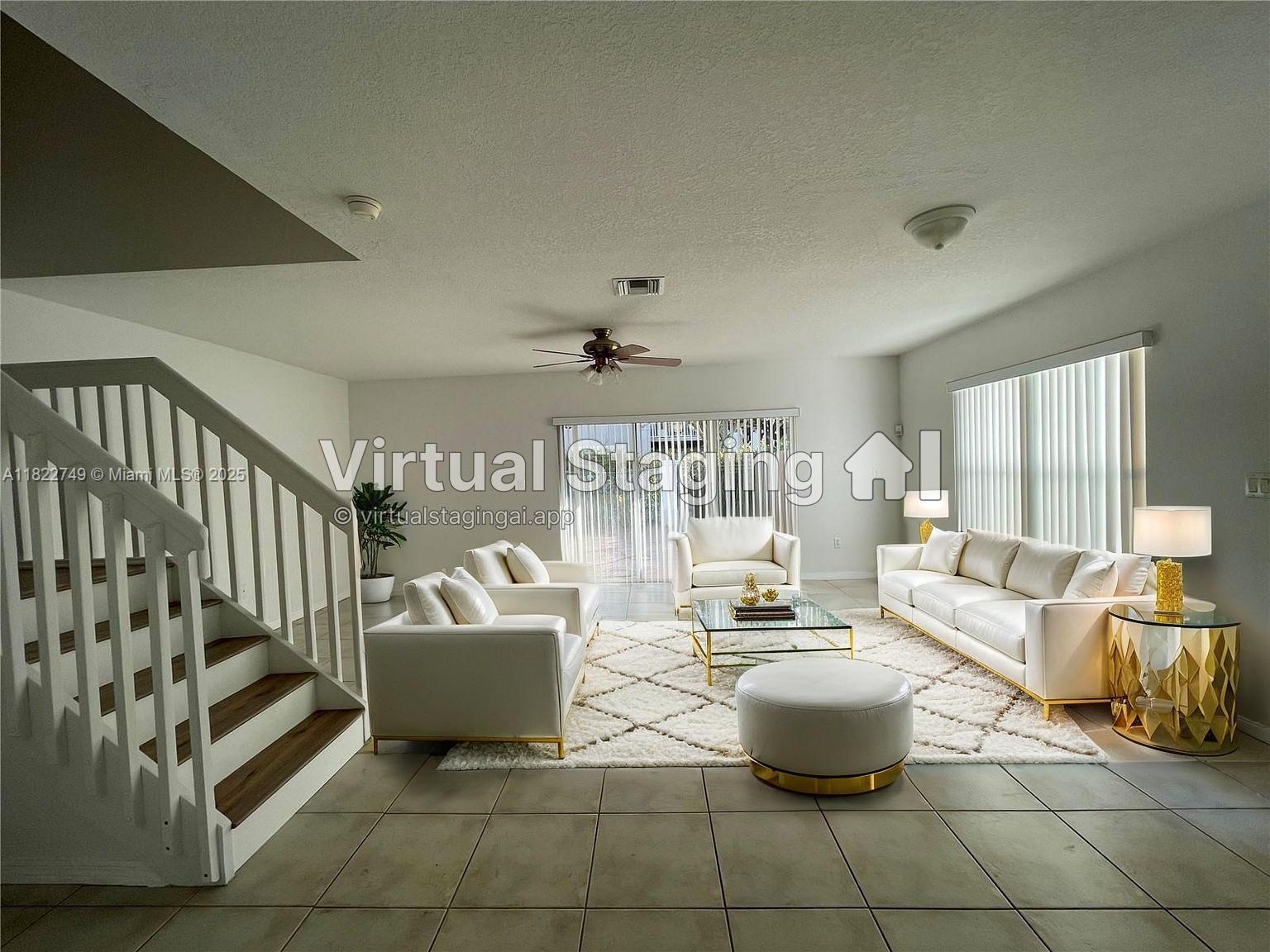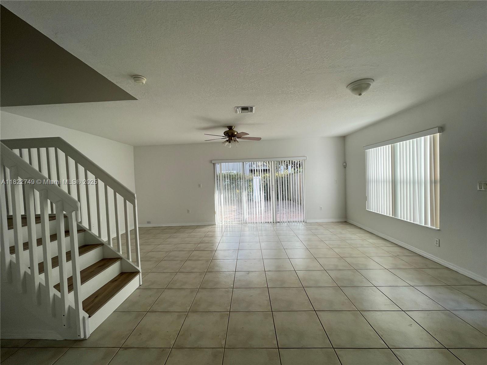 Dimensions At Doral Community, 3 bedrooms, 2 and half bathrooms, corner unit, lake view of a water fountain, Tile downstairs, new vinyl floor on stairs and upstairs, All NEW stainless steel appliances, All freshly painted, many spacious extra rooms include kitchen nook, dining room and upstairs open space. One car garage and large back yard, enclosed with wood fence. Gated with 24 hours virtual guard, this small well managed community in the middle of the heart of Doral is next to a trail / dog park and close to turnpike and HW 826,ready to welcome your family to move in