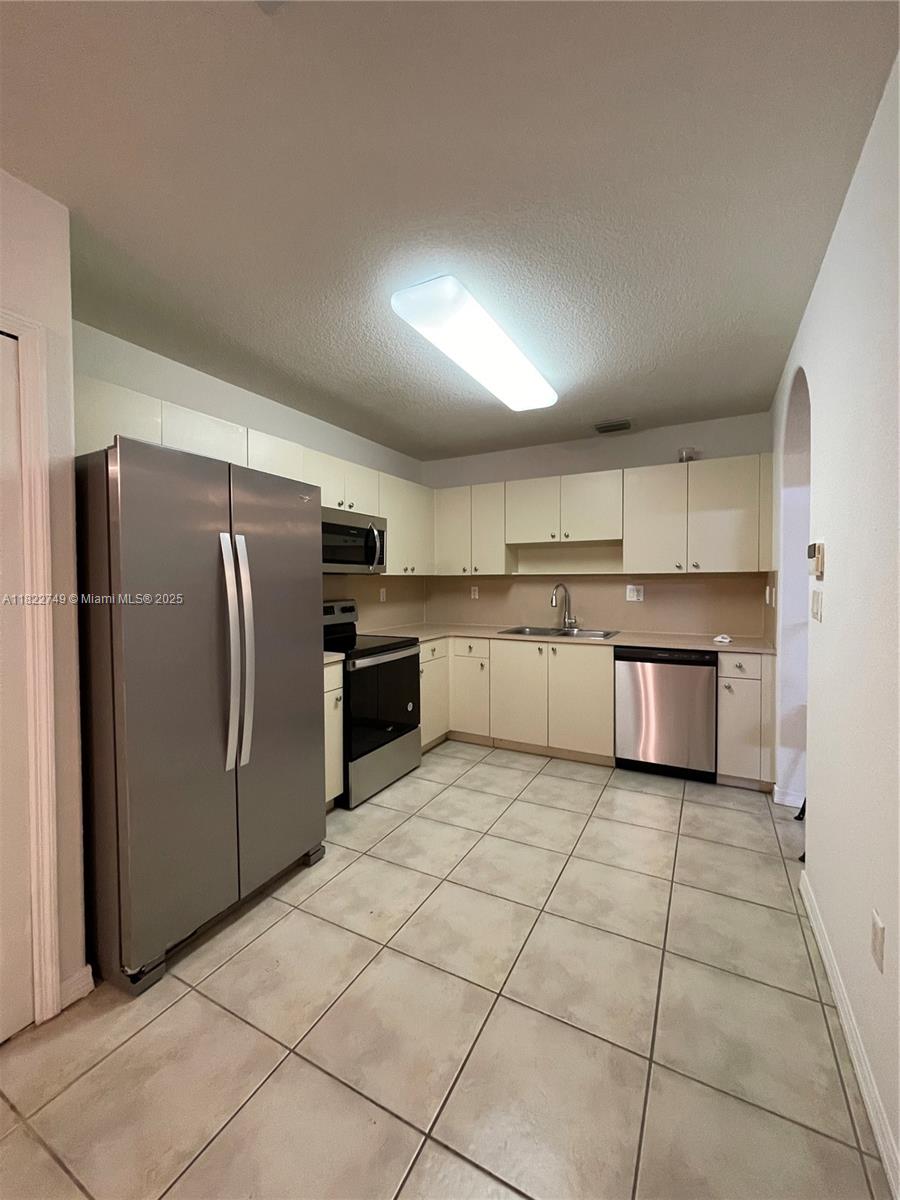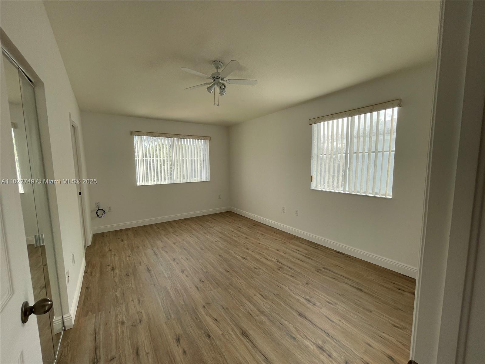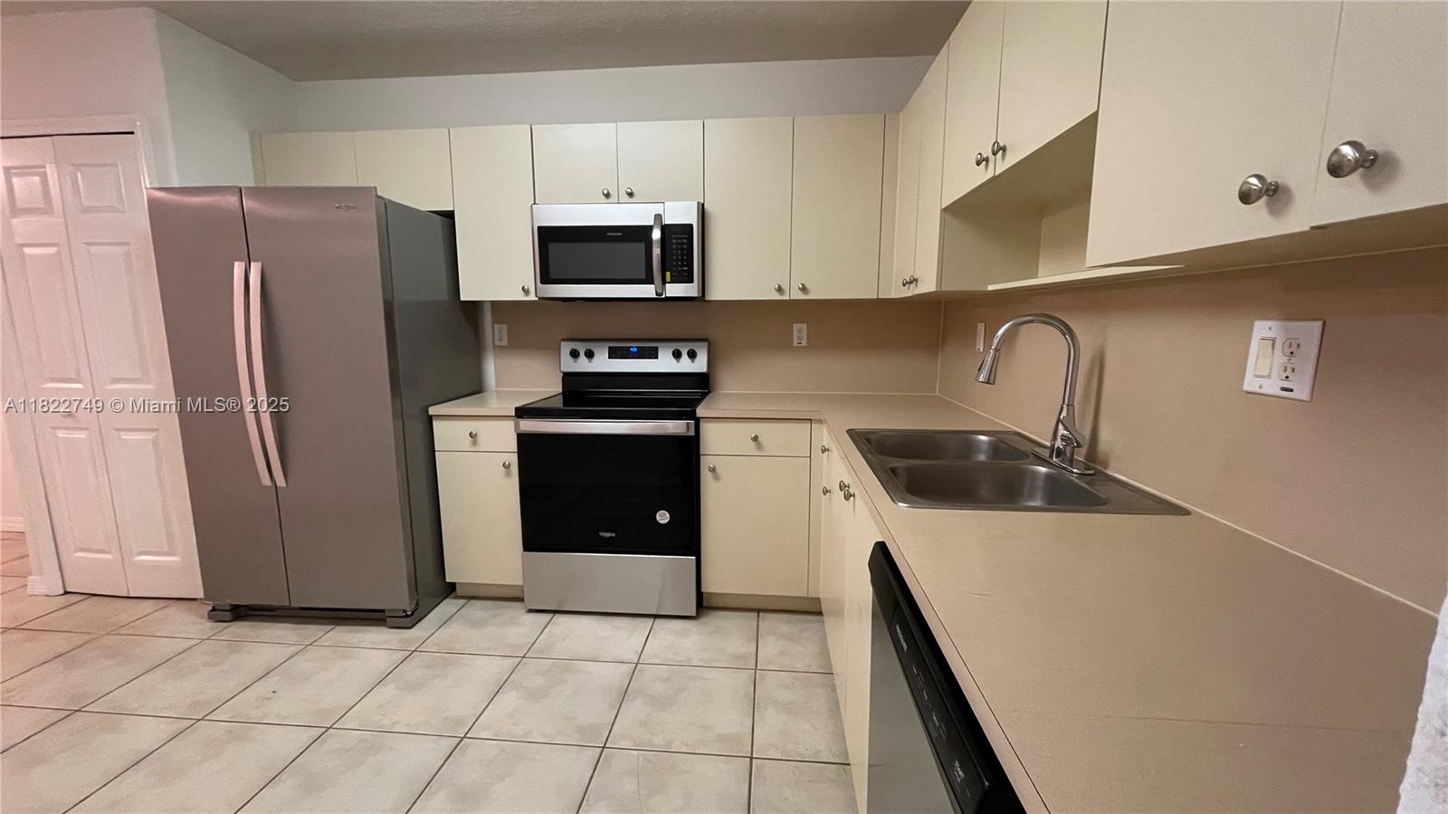 Dimensions At Doral Community, 3 bedrooms, 2 and half bathrooms, corner unit, lake view of a water fountain, Tile downstairs, new vinyl floor on stairs and upstairs, All NEW stainless steel appliances, All freshly painted, many spacious extra rooms include kitchen nook, dining room and upstairs open space. One car garage and large back yard, enclosed with wood fence. Gated with 24 hours virtual guard, this small well managed community in the middle of the heart of Doral is next to a trail / dog park and close to turnpike and HW 826,ready to welcome your family to move in