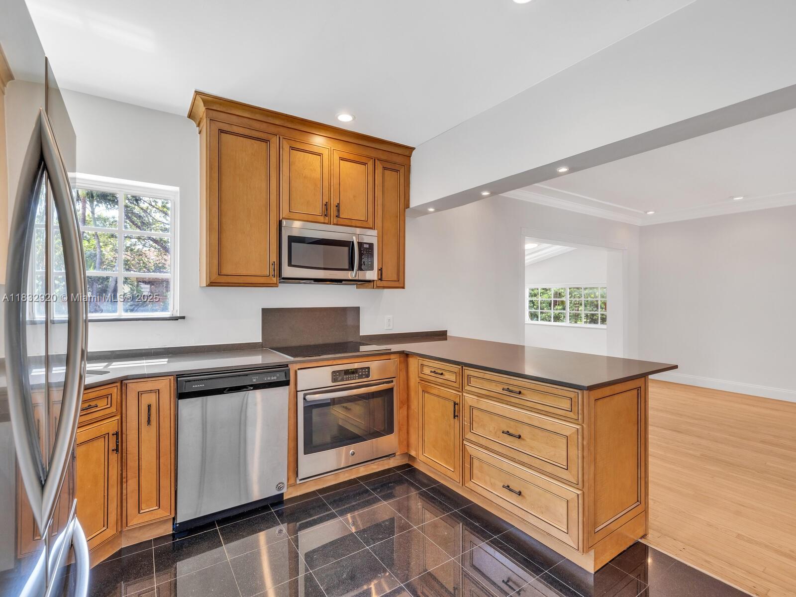 Welcome to Casa Coral! In the heart of Surfside and just 4 blocks from the ocean, this spacious, bright and updated 3bed/3bath home has been lovingly maintained and offers a great blend of original details and modern finishes. Enter into the extra-large sun-drenched living room with refinished wood floors and charming fireplace. Updated kitchen with new refrigerator and breakfast bar is open to the large dining area. Adjacent quarry-tiled sunroom features doors to the back pergola-covered deck and fenced-in gardens with room for a pool. Two of the three spacious bedrooms feature en-suite baths, including the bright main suite retreat with ample closet space. All hurricane windows-doors, newer A/C, plus a perfectly appointed laundry room with newer washer & dryer and tons of storage!