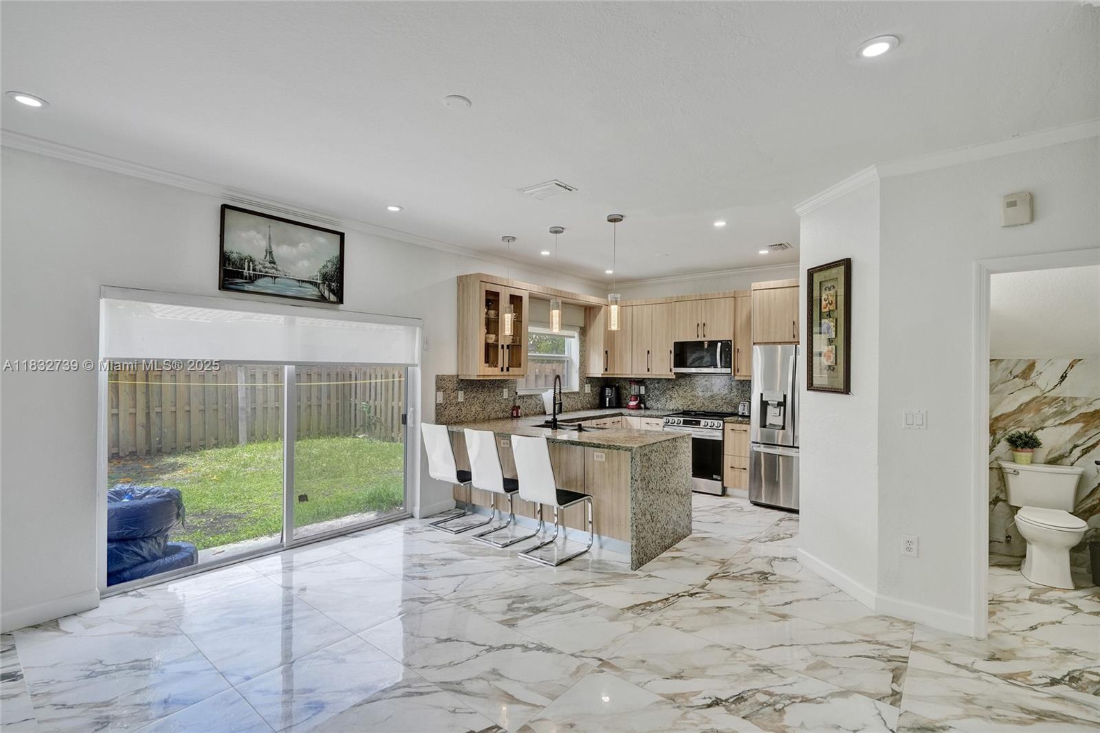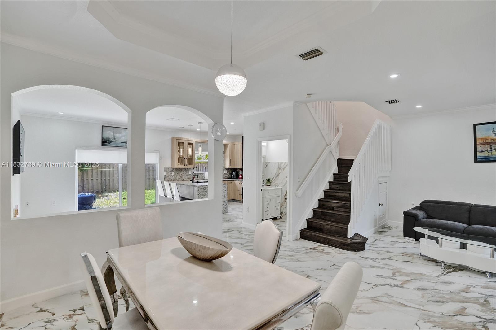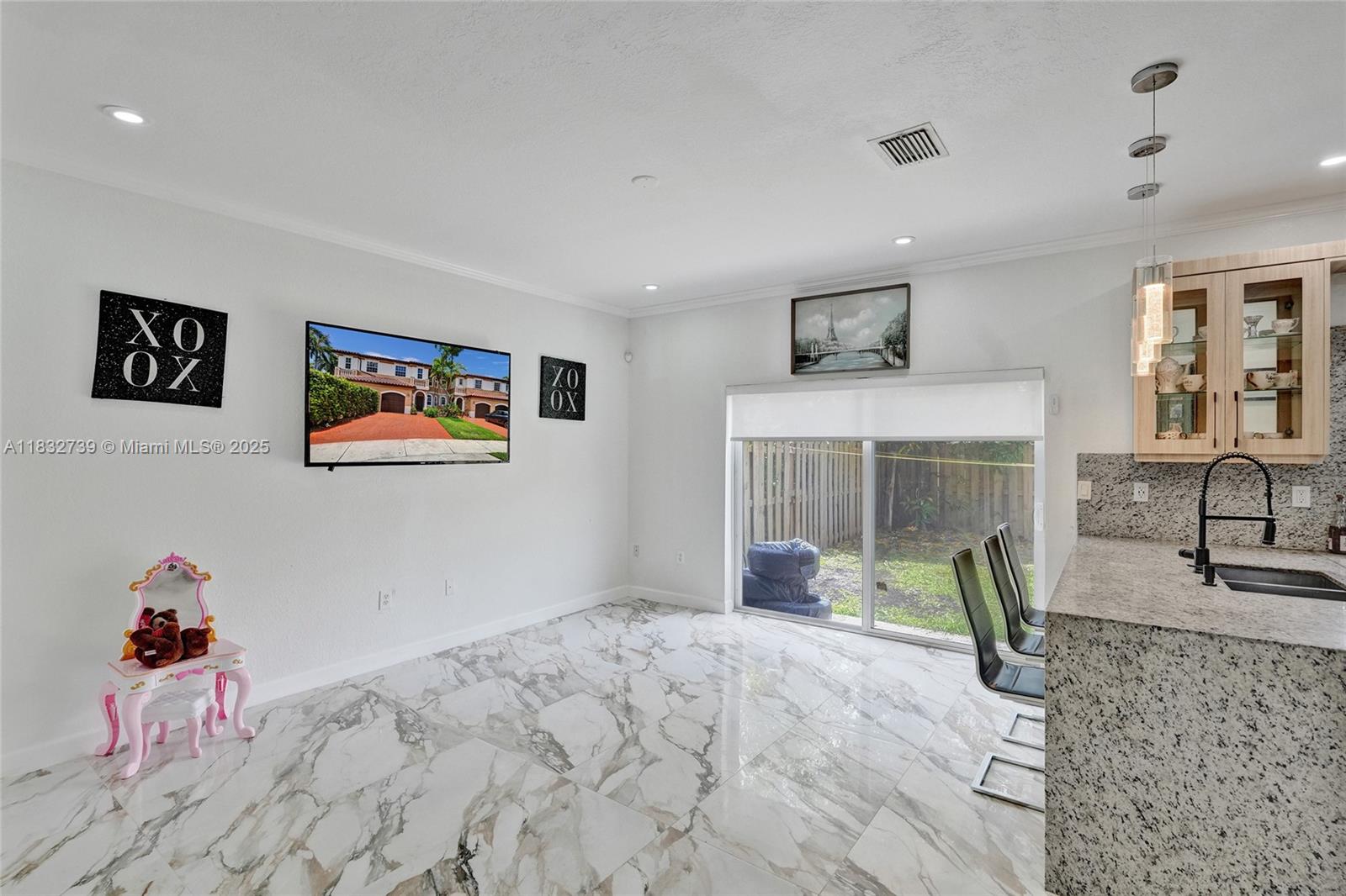Amazing 4BR, 2.5BA townhome with many upgrades including all impact doors and windows in the 24-hour manned-gates security of Bellagio at Vizcaya. The living room is perfect for entertaining, Separate formal dining room and adjacent family room offers plenty of room for the whole family. All bedrooms are upstairs including a HUGE master with a double vanity and separate shower and roman tub. There is a fenced in backyard, Full size washer/dryer, and one car garage right across the street from the sparkling community pool and clubhouse. Great community great location and great schools nearby!