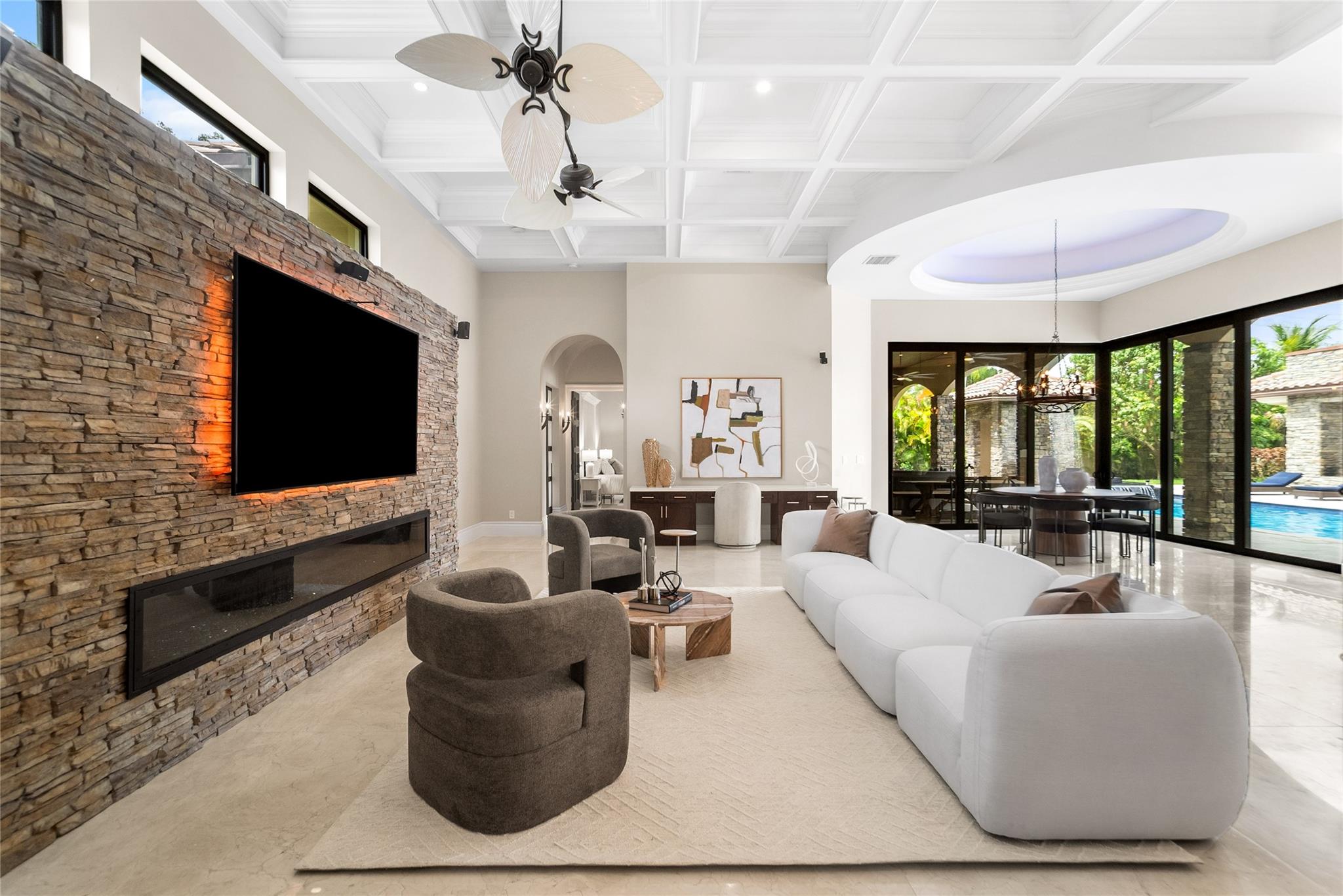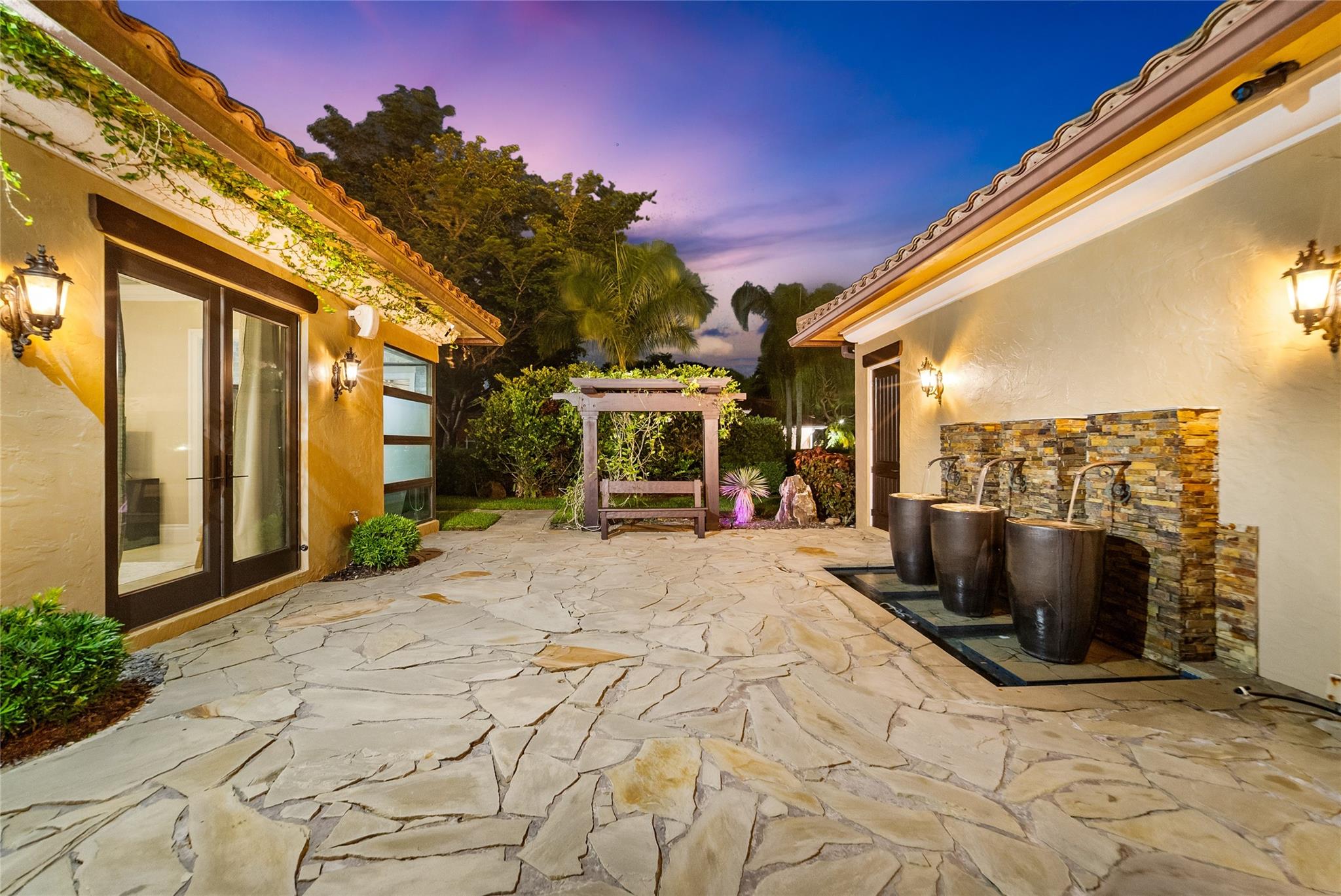Imported Italian Stone Driveway & Porte Cochere Greets You To This 2016 Custom Smart Home w/7,100 SqFt Mediterranean Mansion w/5 Bedrooms, 5 Baths, 2 Half Baths + Gym + Gameroom + Office, Wine Cellar & Backlit Stone Counter Bar & Outdoor Resort w/5 Fire Features & 5 Waterfalls Surrounding An Outdoor Kitchen & Woodfired Oven, Exterior Living & Dining w/Wall Fountains. Private Guest House w/Full Kitchen & Living Room & Ensuite Bath w/Generator. Soaring Coffered Ceilings & Mediterranean Wooden Arches Guide You Throughout The Home. Impact Windows & Doors Where Every Room Has A Pool & Courtyard View Or Water Feature. All Beds Have Ensuite Baths w/Backlit Counters, 6-Car Garage w/A/C & Hydraulic Lift For Car Collectors. Meticulous Landscaping w/Fruit Trees All On 1 Acre! Guard Gated Community.