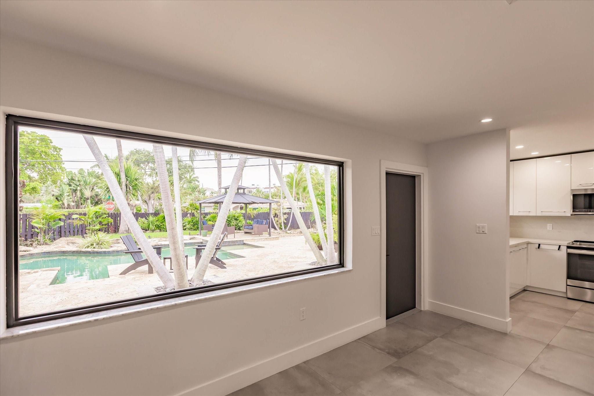 Beautiful pool home in sought after Coral Ridge. Recently updated. Quality Porcelanosa flooring throughout including the garage. Fully fenced private backyard, renovated kitchen with 10 foot quartz center island and combined living area. Full size 2-car garage. Outside shower. Large impact windows and doors bring the lush landscaping in. Top rated private and public schools (including Bayview Elementary).
