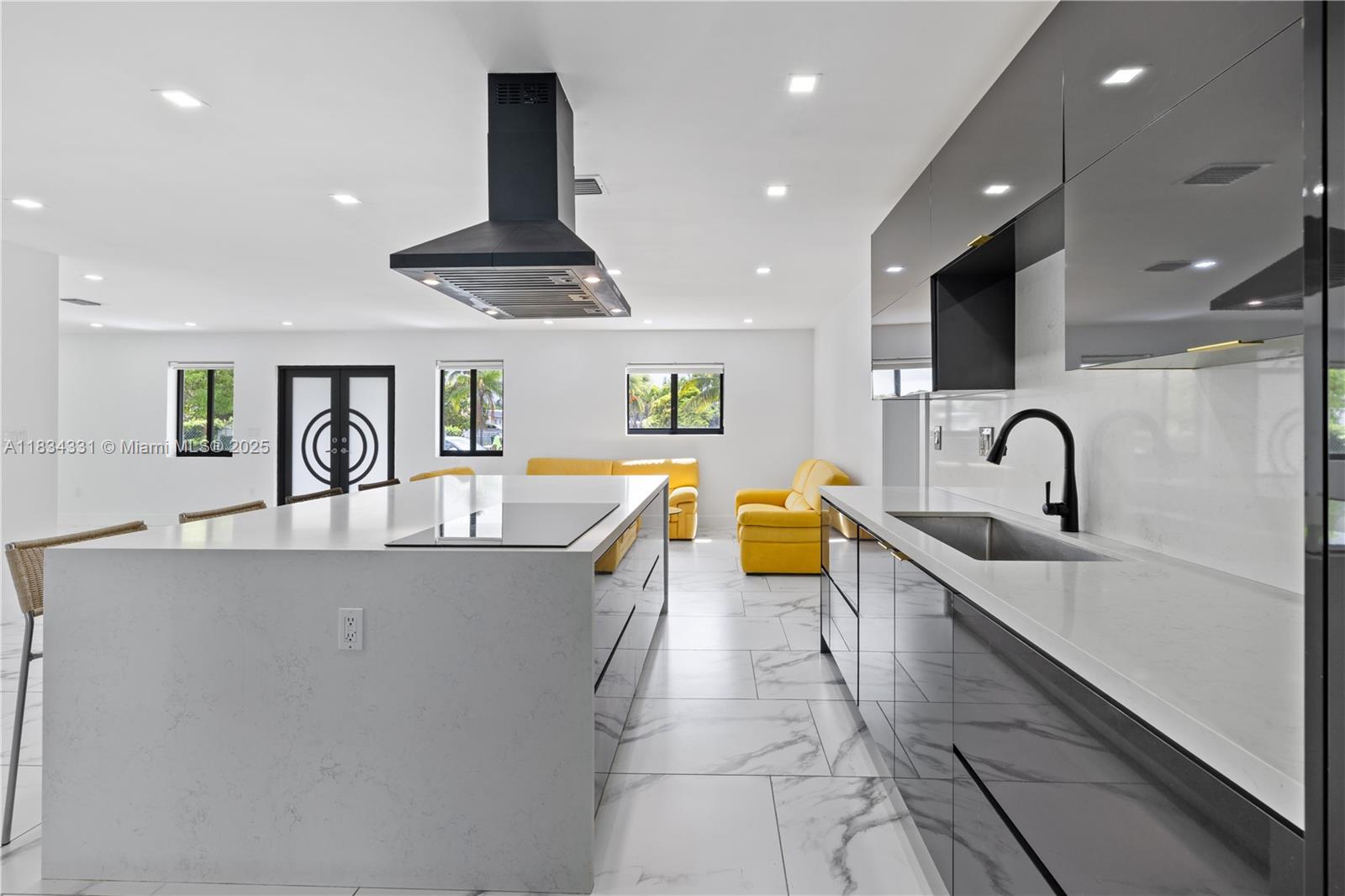 NEW CONSTRUCTION. 4-BR, 3.5-bath LUXURY - COMPLETE GUT RENOVATION WITH FINEST MATERIALS; EVERTHING NEW; NOT LIVED IN SINCE CONSTRUCTION COMPLETE; UNDER ROOF ACTUAL SQ. FT 2,841 s.f.; A/C SQ. FT. 2,320 Sq. Ft. Renowned architect Archcube Design. ALL NEW PLUMBING (no cast iron to replace), ALL NEW ELECTRIC; ALL NEW HVAC, HURRICANE WINDOWS/DOORS; two new high-efficiency AC systems; MASSIVE CHEF KITCHEN W/ HUGE ISLAND; CUSTOM MADE ITALIAN-STYLE CABINETS. MASSIVE MASTER BR SUITE; Ensuite Bathrooms; Elegant porcelain floors inside and natural slate outside, HUGE COVERED & TILED PATIO 344 S.F. (enclosable with permit); NATURAL SLATE WALKWAY; fenced yard. NO HOA. At $355.60 per s.f. for NEW NEW QUALITY construction, THIS PROPERTY IS A STEAL FOR NEW CONSTRUCTION