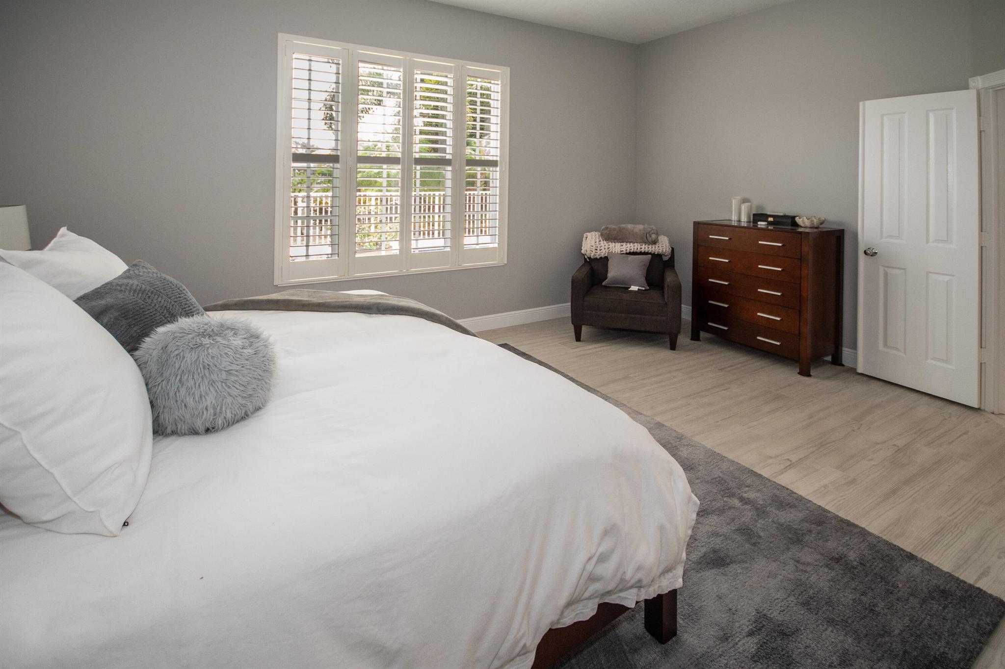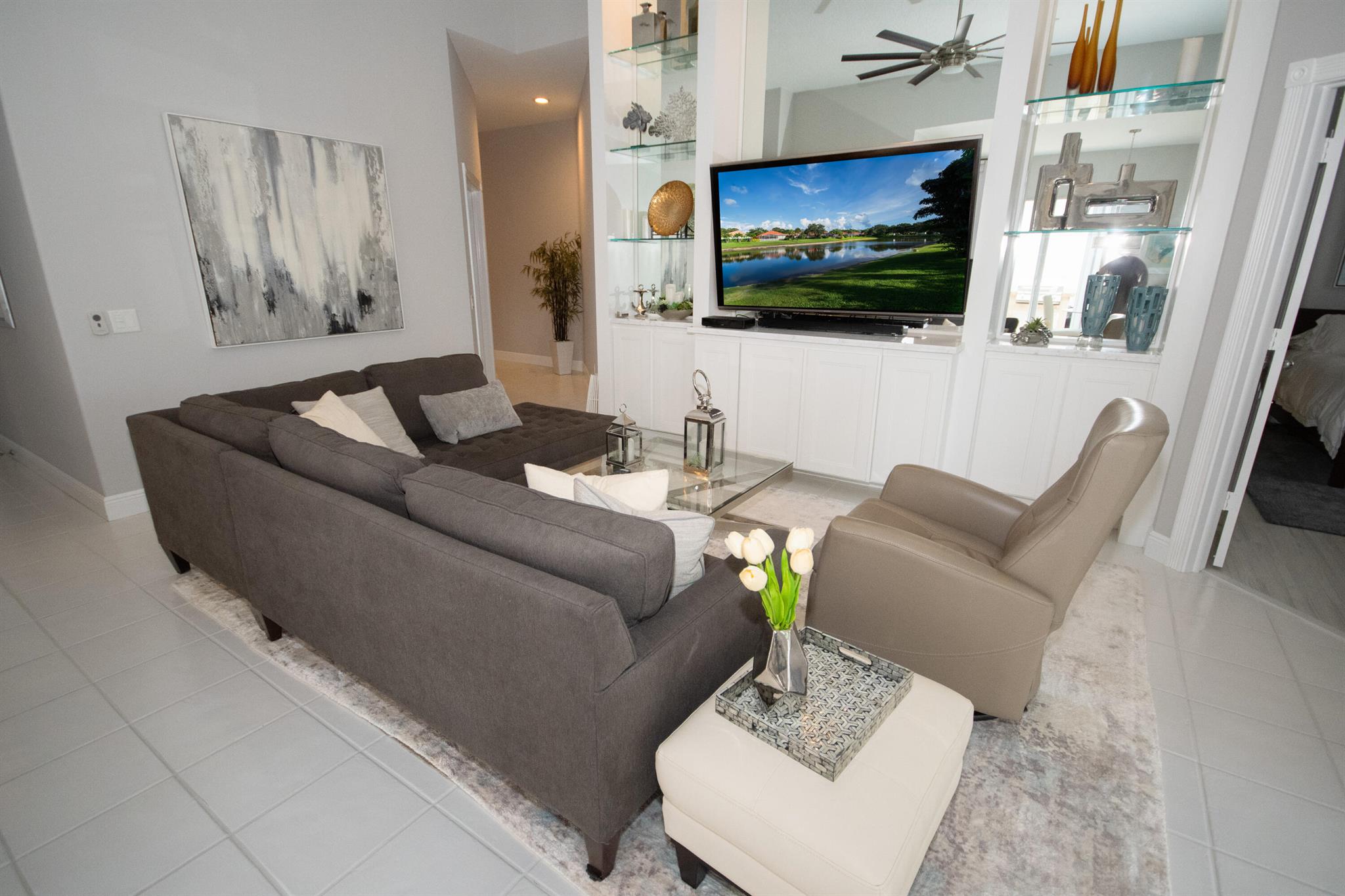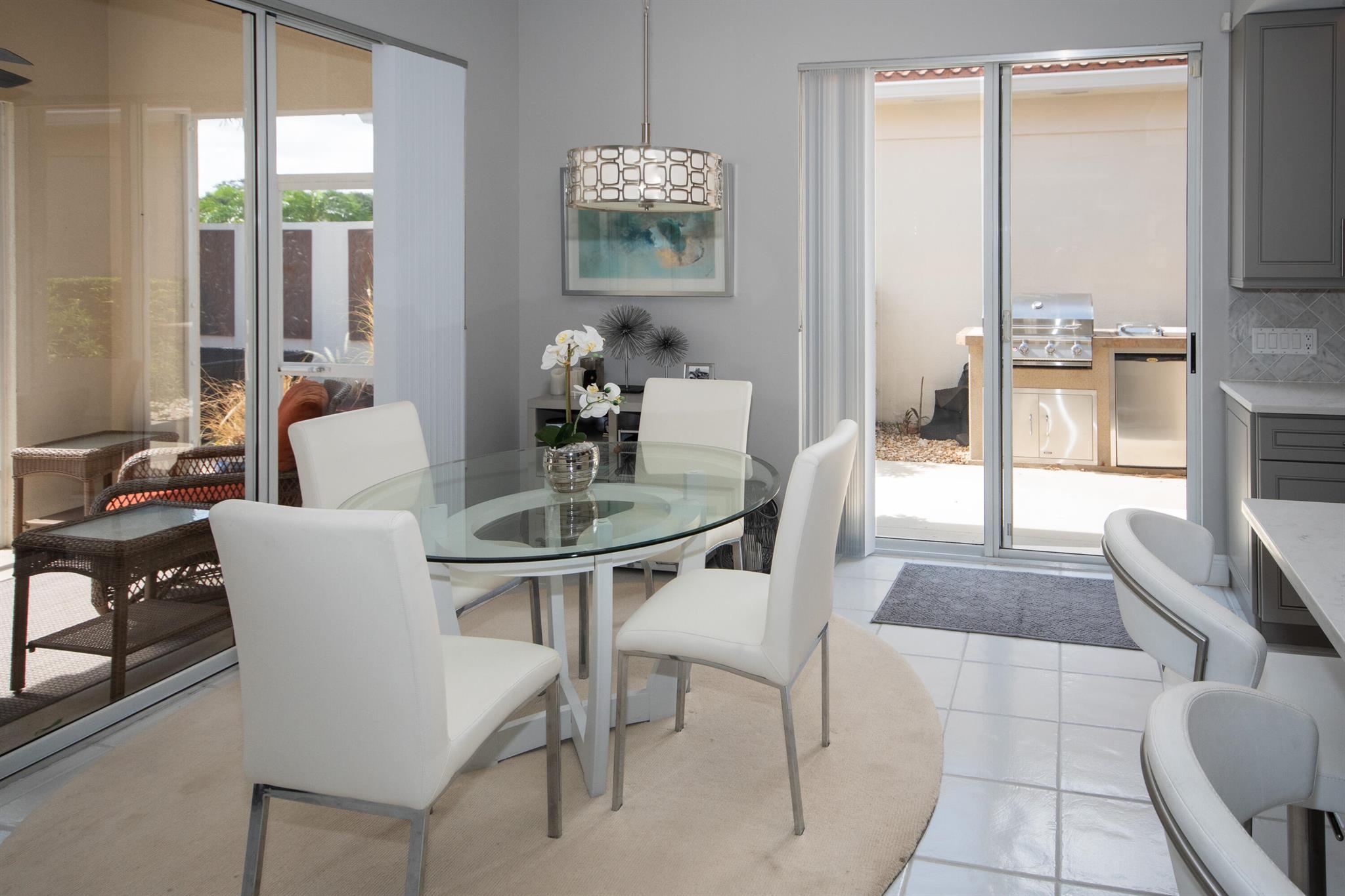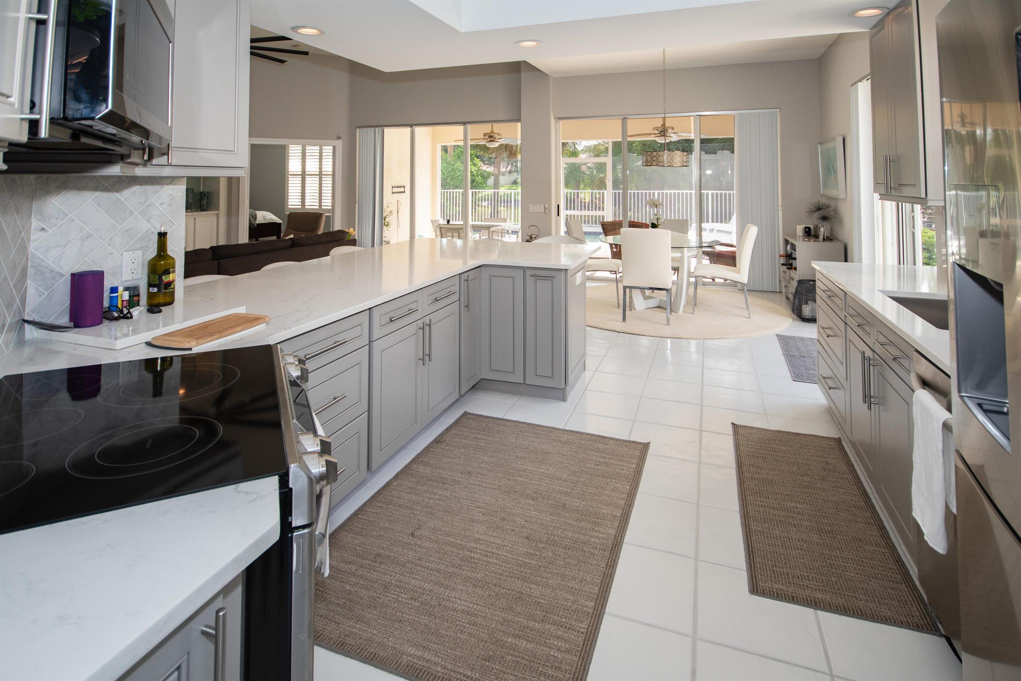 Charming & Private Lakefront Pool Home with extended Patio & deck area, Remote Sun-Shade Awning, lovely covered & screened Patio area & Lush Landscaping. Updated custom kitchen offering an entire suite of SS Appliances, a Pantry w/pullouts, a large L-shape bar counter topped with a sea of luscious quartz countertops & a window over the large SS sink. U'll also enjoy the convenient sliding door just off kitchen with side patio & outdoor grilling station. Open Concept living & dining area, Soaring Ceilings & NO POPCORN throughout. New flooring, Plantation Shutters, Murphy Bed, Most Popular, Divosta Built Solid Model: 3 bed/3bath/Plus Bonus Flex Rm/oversized 2 car garage/Laundry Rm with full size W&D, 6-Bays of 42'' Cabinets & Large Utility sink.GR8 Entertaining spaces inside & out. A MUST C