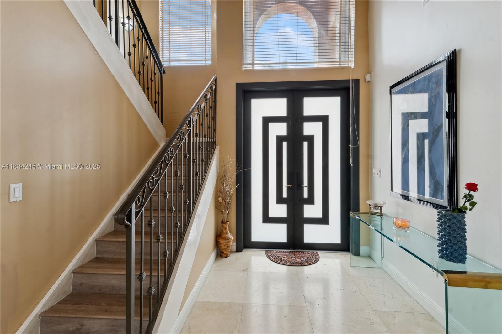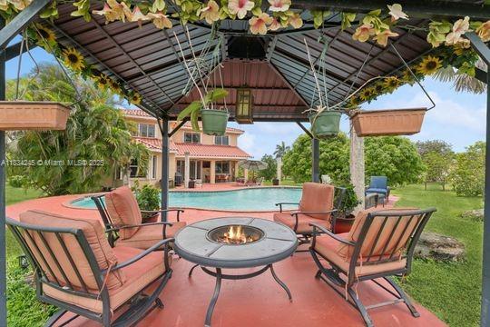 Beautiful Mediterranean Estate! Featuring a 2 story, 5 Bedroom, 3.5 Bath on a 54,885 Sq Ft Lot.Entering the arched doorway, you encounter the high ceilings, spacious living & dining area. Second floor has plenty of closets, laundry, 3 bedrooms & the Principle Suite. The Main Suite has a surround sound system, walk in closet & a very large ensuite. Downstairs is the kitchen with a large peninsula leading to the family with open view of the pool. The pool area is perfect for entertaining with it's spacious courtyard, a cozy pergola & a perfect view of the tennis court. The outside oasis awaits you with majestic trees throughout including avocado, mango, lime, key lime, lechi, nispero, palm, ceiba, grapefruit, & limoncello from rome. Come make this your forever farm home.