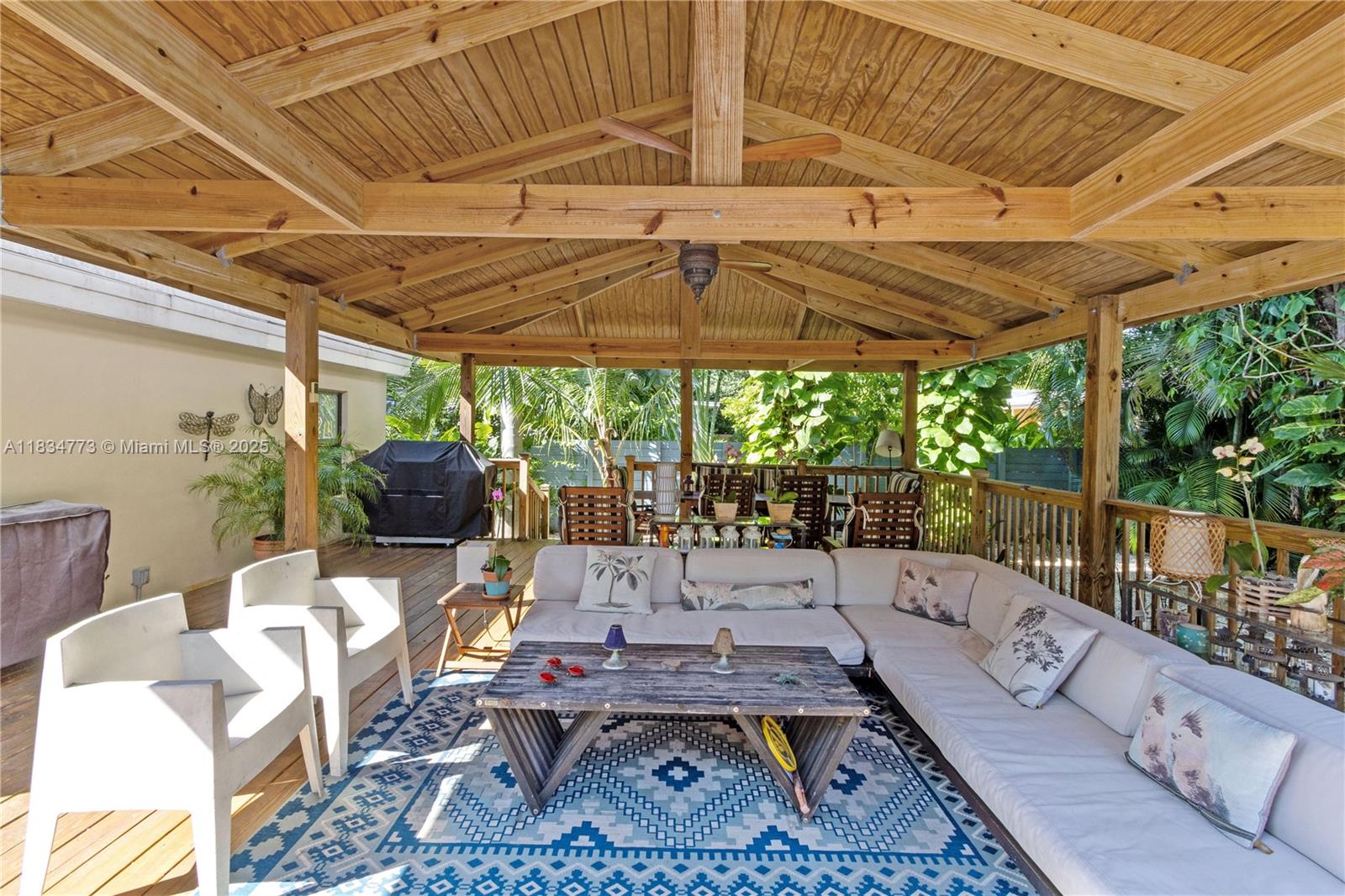 Unique resort style 3BD/3BA pool home in trending village of El portal with an oversized 10,700 sqft lot. Recently renovated form top to bottom it offers: open concept living/dinning and kitchen with great island and wine cooler, 3 bedrooms with wooden vaulted ceilings and fans, very ample bathrooms, walking closets and tons of storage space, aluminum roof, impact windows, wood floors, solar panels, water purifying system for the whole house and bathed in beautiful natural light. This is a dream house to entertain. The outdoor space, a true oasis, offers a state of the art oversized 760 sqft crafted pergola with vaulted ceilings and fans, pool, outdoor shower with hot/cold water, and a fabulous mature lush garden. Prepare to fall in love with this home!