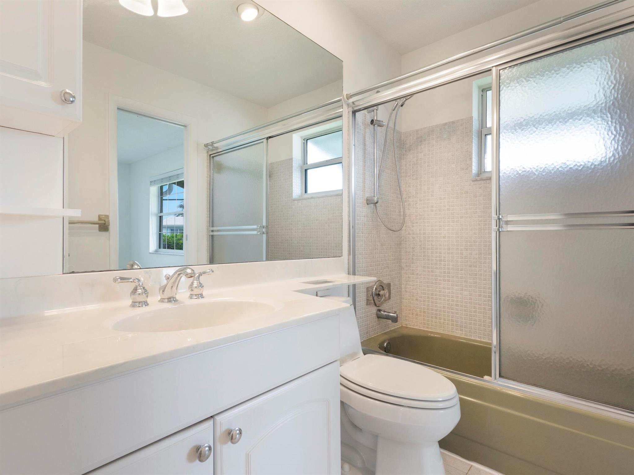 Location! Beautiful Regis Model home on a large corner lot in a very quiet area of Leisureville. (No heavy thru traffic) Immaculate condition with a new back patio and patio roof in 2019. Custom kitchen in warm tones, tile floors and wood tone laminate in bedrooms. Great closet space. Double wide driveway. 3 heated pools, 3 clubhouses, and FREE 18 hole par 3 golf!!