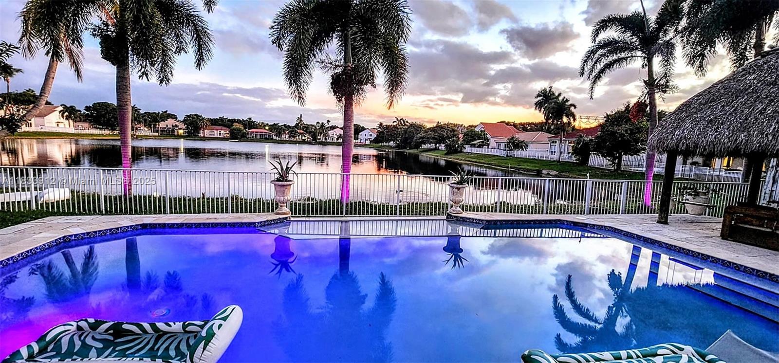 Highly Sought After Willow Model !!! With The Most Spectacular Wide & Deep Lake View! Resort Style Infinity Pool, Situated On a Prestigious Lake Front Lot, With Unobstructed Views, In The Exclusive Guard Gated Banyan Oakridge Community, Home Has Been Completely Redesigned With Exquisite Taste, 5 Bedrooms, 3.5 Bathrooms, Plus Additional Room, Can be a Good Size 6th Bedroom! Featuring Jerusalem Stone Flooring, French Doors, Hi Impact Glass, New Roof 2024, Tiki Hut W Electric, Extra Wide Infinity Style Pool,W Sundeck And Much More. Amenities Include Excellent Tennis Courts, Basketball Court, Tot Lot, All Within Very Close Proximity To Many House Of Worship, I95,595, Fl. Turnpike, Airport, Seaport, Hard Rock Casino, Downtown Hollywood, And The Beaches.