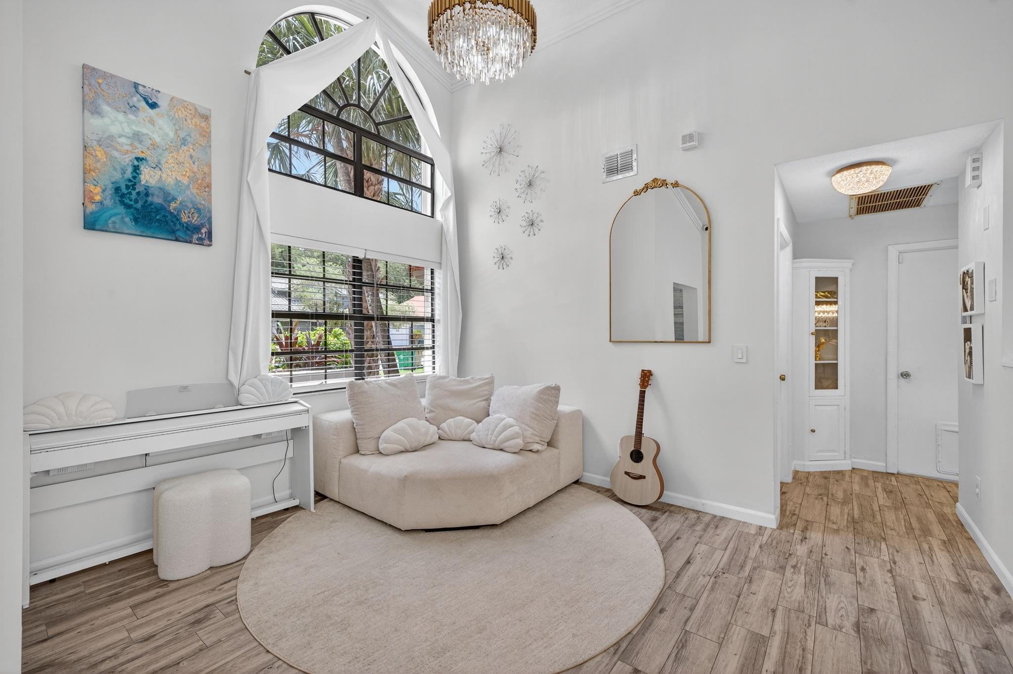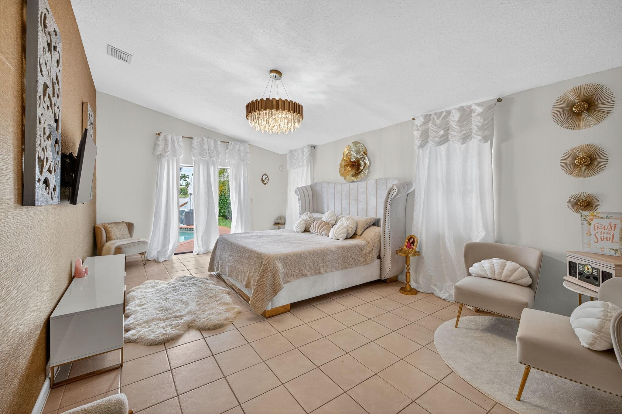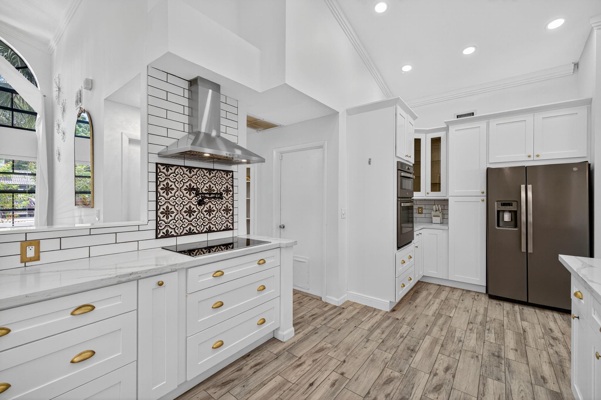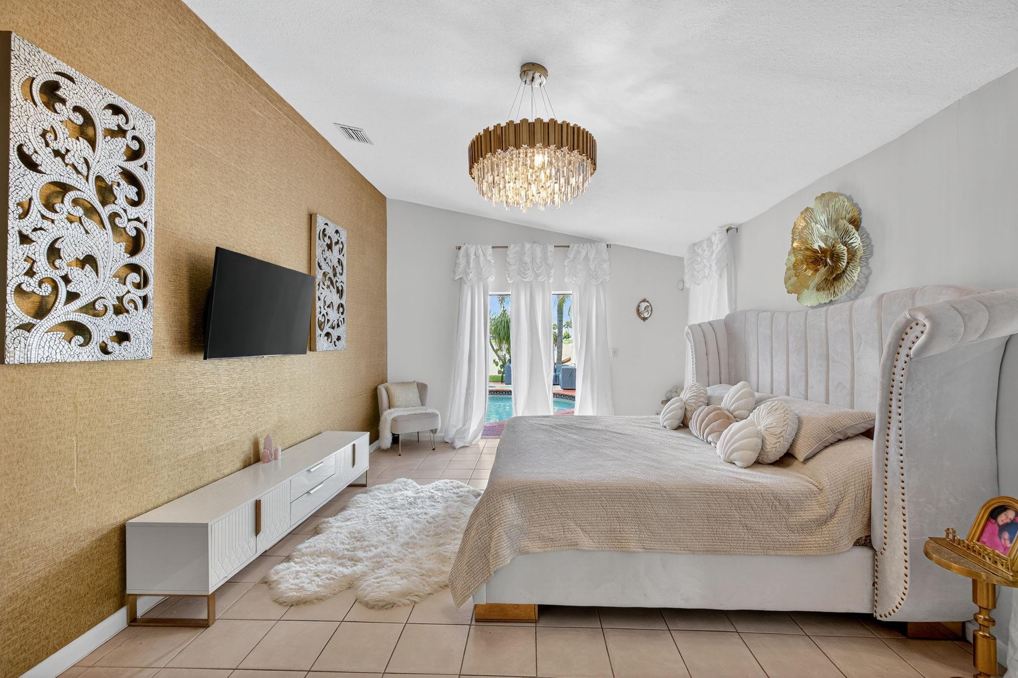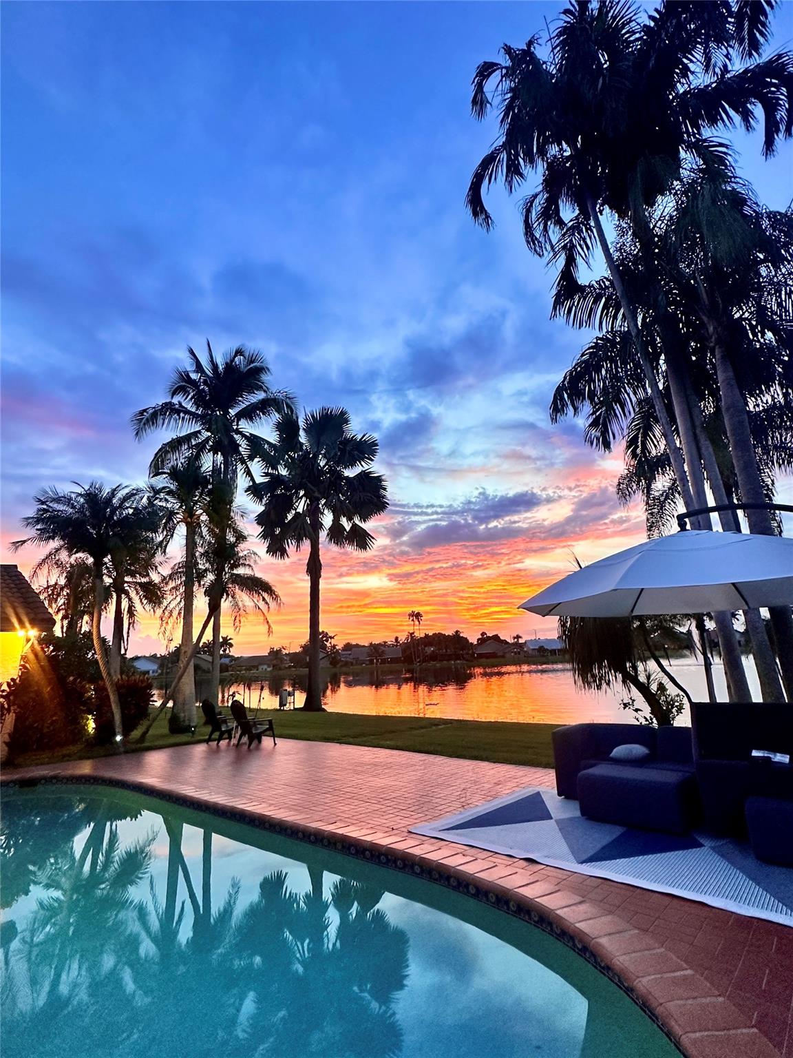 Desirable OAK KNOLL ESTATES! Lakeside living at its finest in this stunning 4 BR, 2 BA, 2-car garage split BR pool home, perfectly positioned for breathtaking sunset views over the water. Thoughtfully designed with elegance & comfort, it features a newly renovated all-white chef's kitchen with high-end appliances, custom cabinetry & gleaming countertops. Soaring 15 ft ceilings & modern LED lighting create an airy, sophisticated ambiance. 25k in real crystal lighting. The open concept flows to an outdoor oasis—sparkling pool & serene lakefront setting. Whether entertaining or unwinding, every space offers beauty, tranquility & refined detail. Roof 2008, AC 2014,new washer/dryer & water heater.